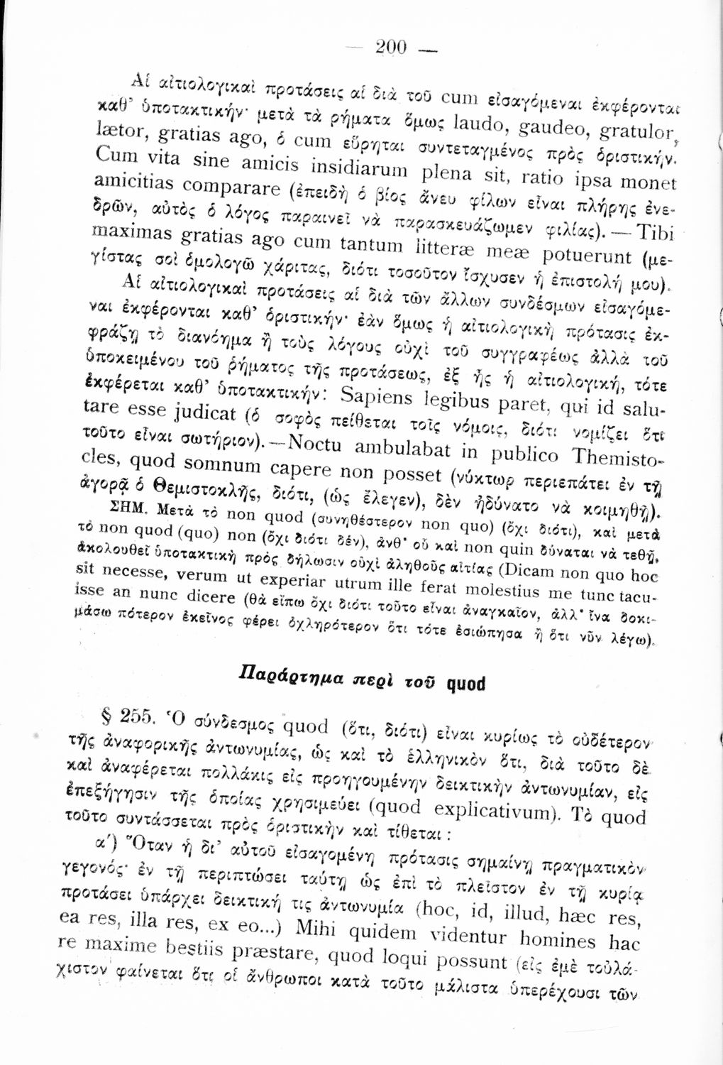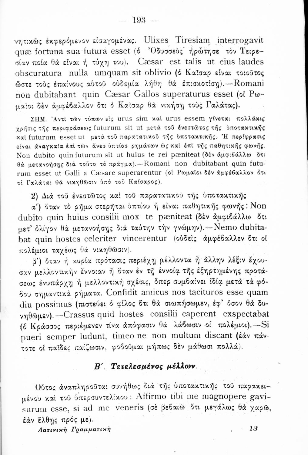 Σχολικό εγχειρίδιο Λατινικών Α΄, Β΄, Γ' Γυμνασίου που περιλαμβάνει γραμματική και συντακτικό και είναι χωρισμένο σε φθογγολογικό, τυπολογικό και ετυμολογικό μέρος.