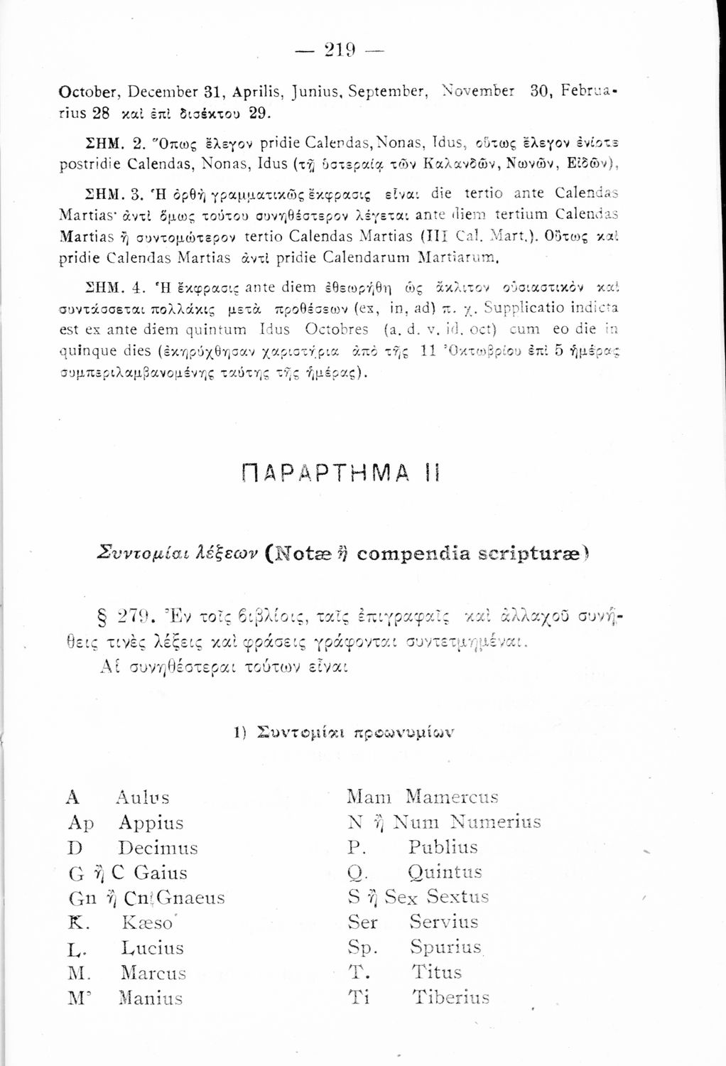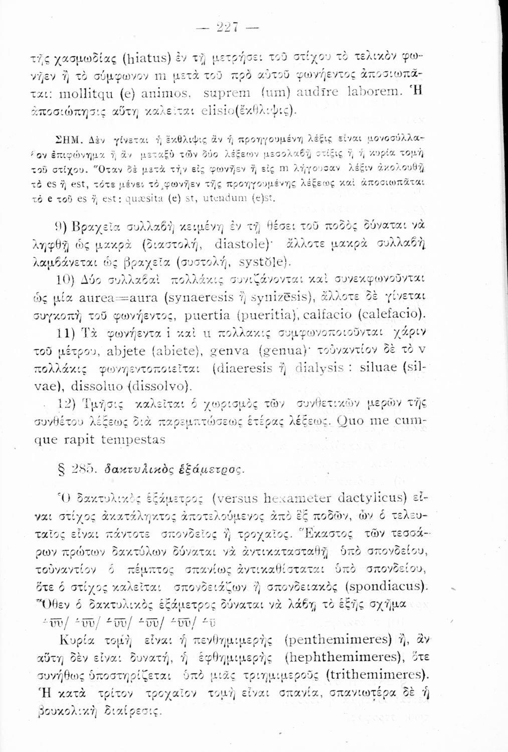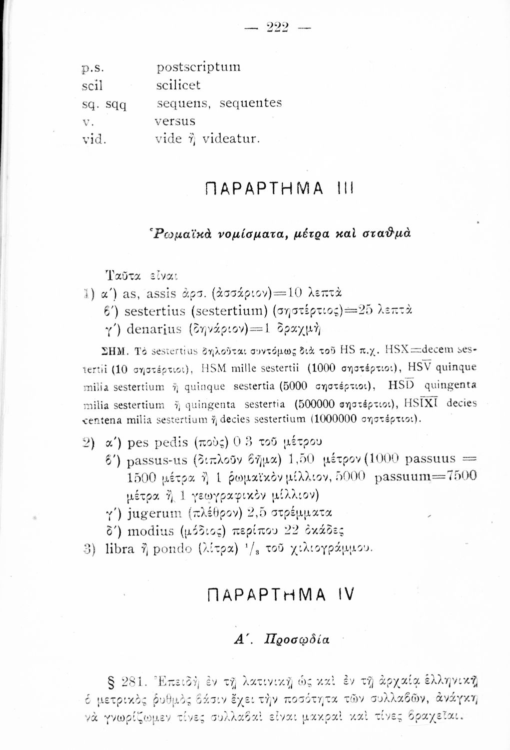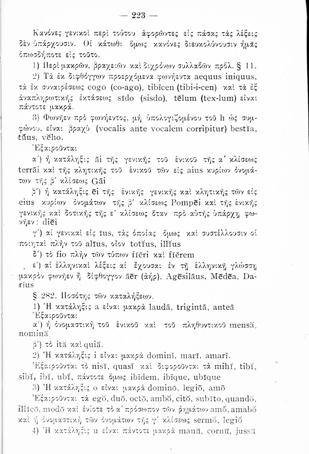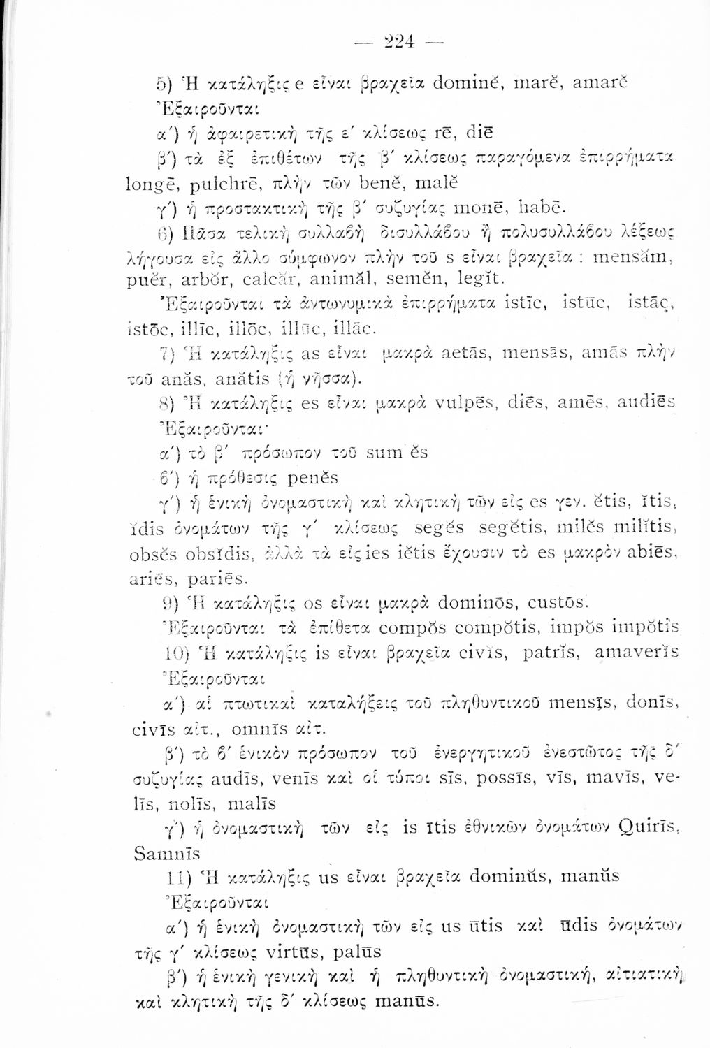 Σχολικό εγχειρίδιο Λατινικών που περιλαμβάνει τη γραμματική της λατινικής και είναι χωρισμένο στο τεχνολογικό, το τυπολογικό και το ετυμολογικό μέρος.