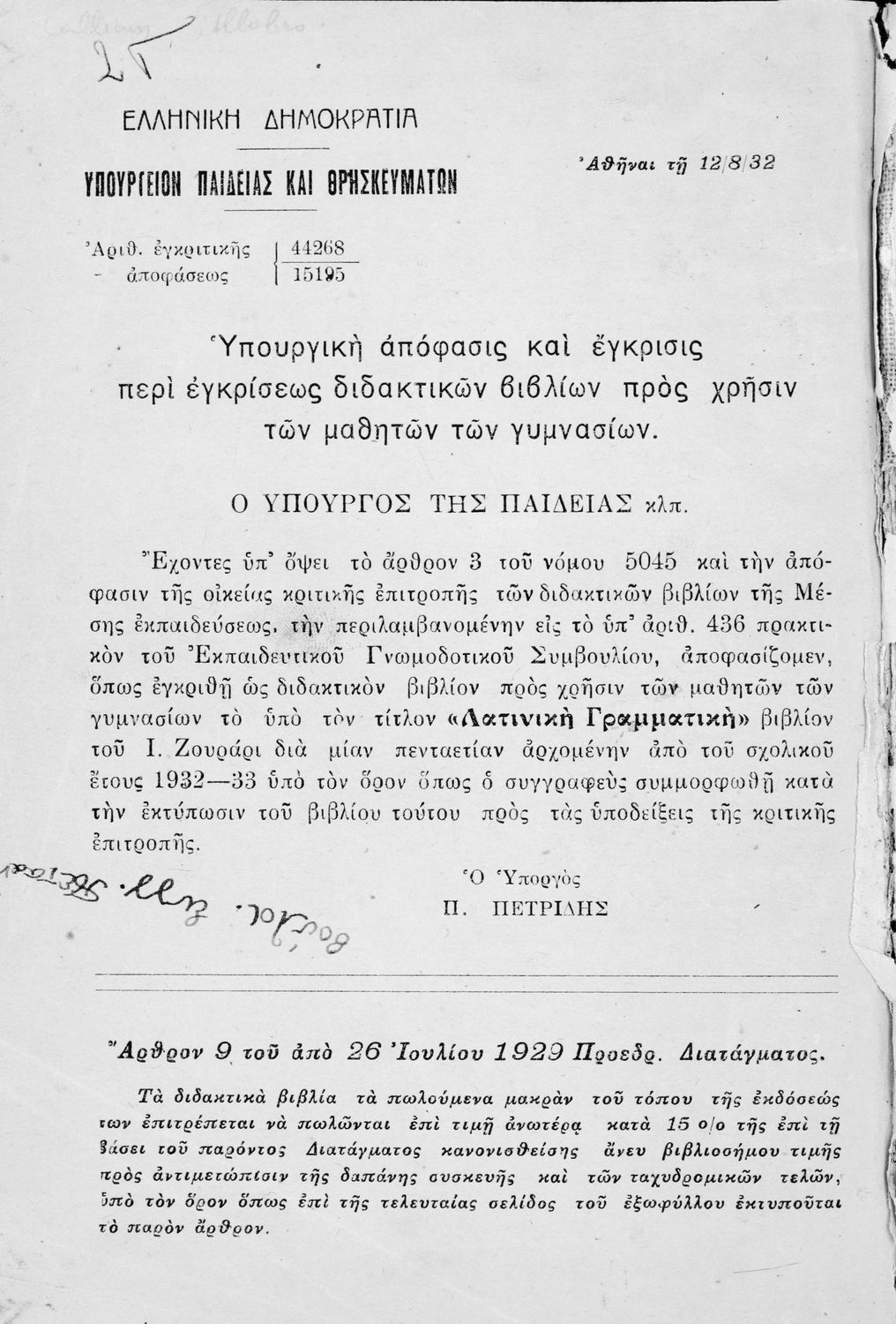 Υπουργική απόφαση / Σύμβαση: 44268/12-8-1932