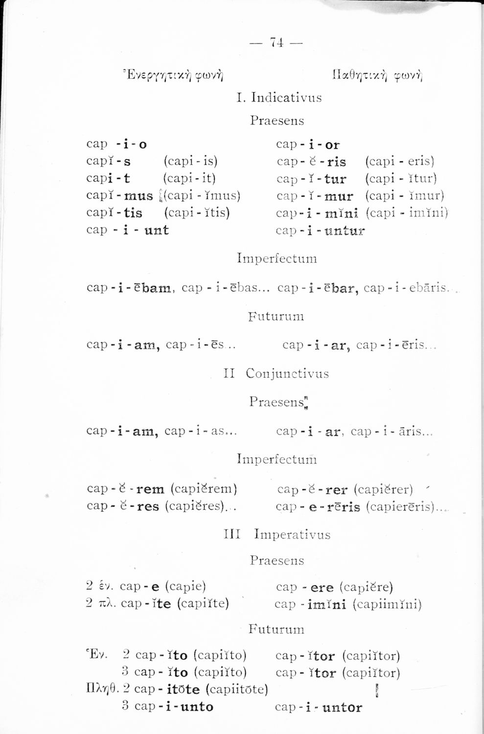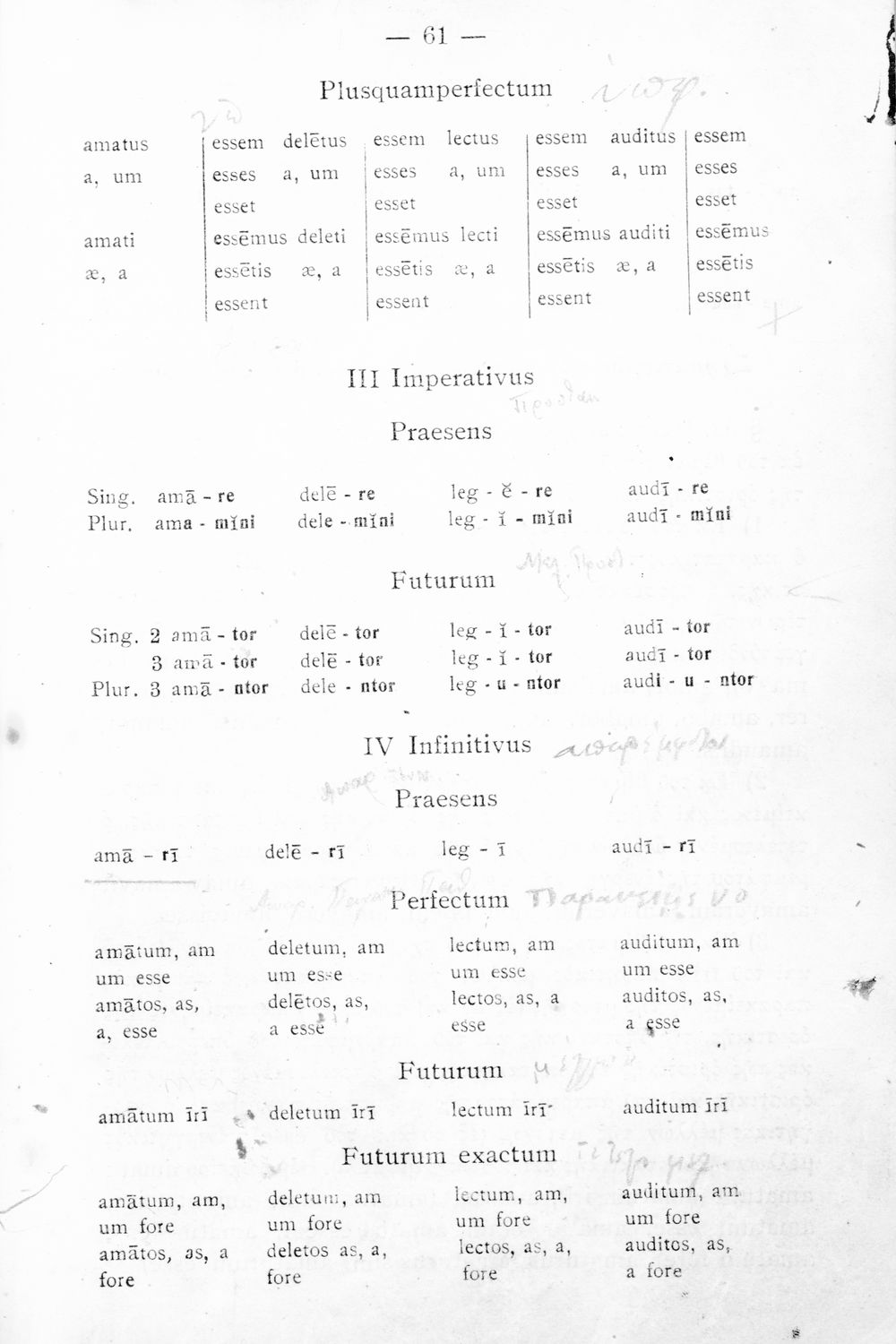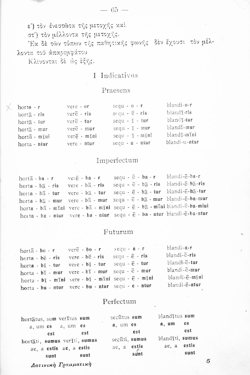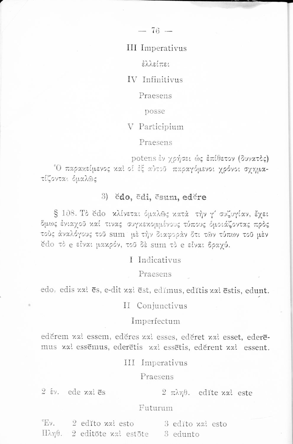 Σχολικό εγχειρίδιο Λατινικών που περιλαμβάνει τη γραμματική της λατινικής και είναι χωρισμένο στο τεχνολογικό, το τυπολογικό και το ετυμολογικό μέρος.