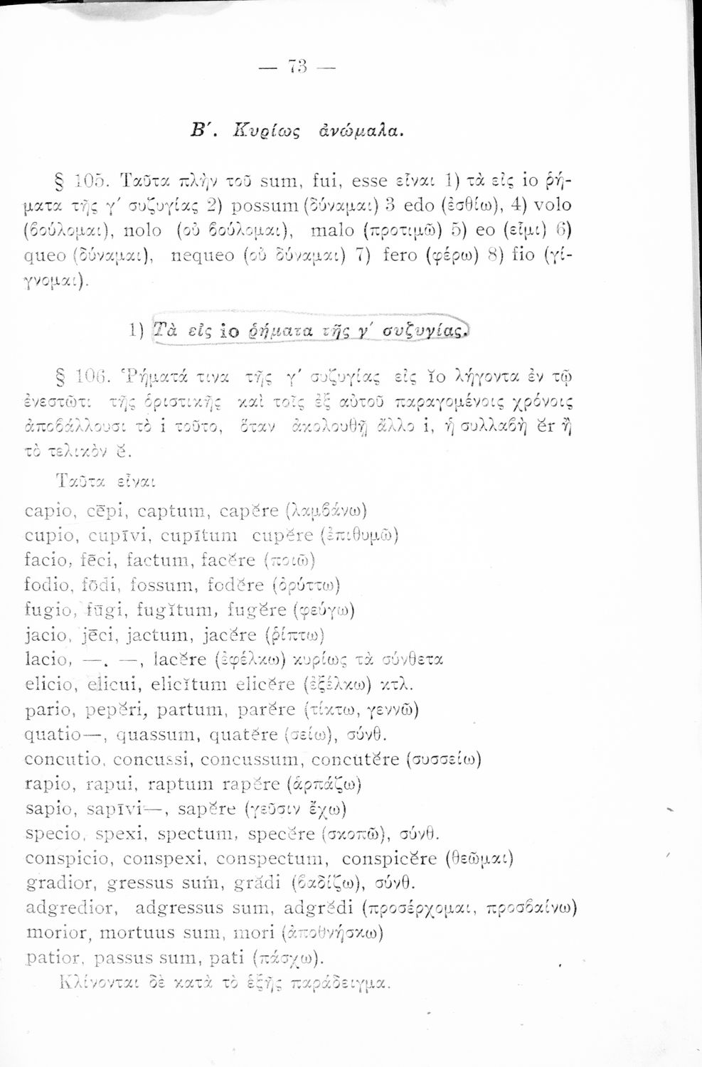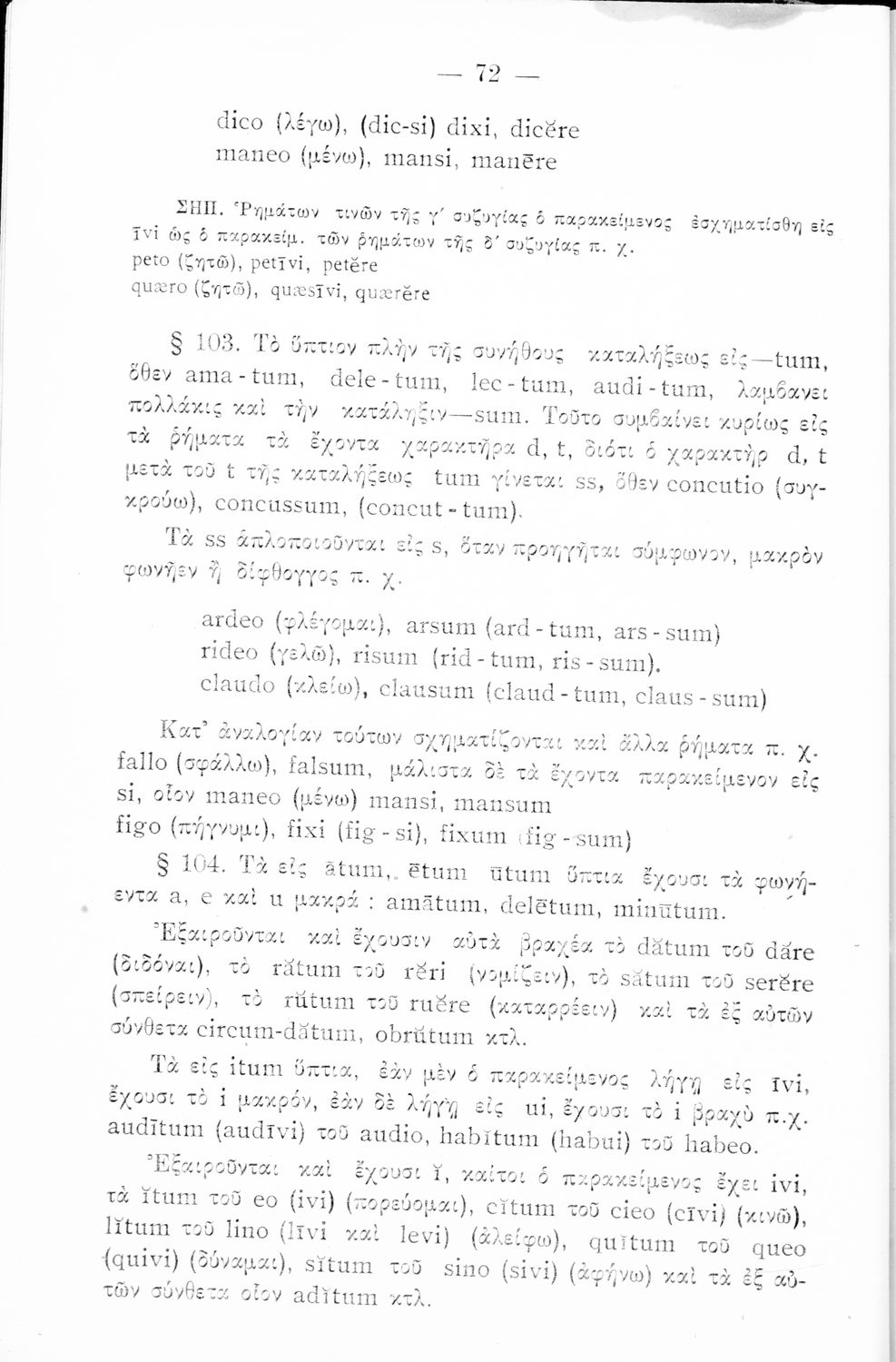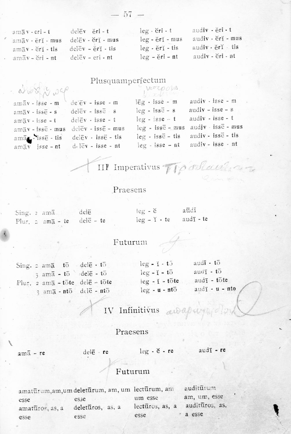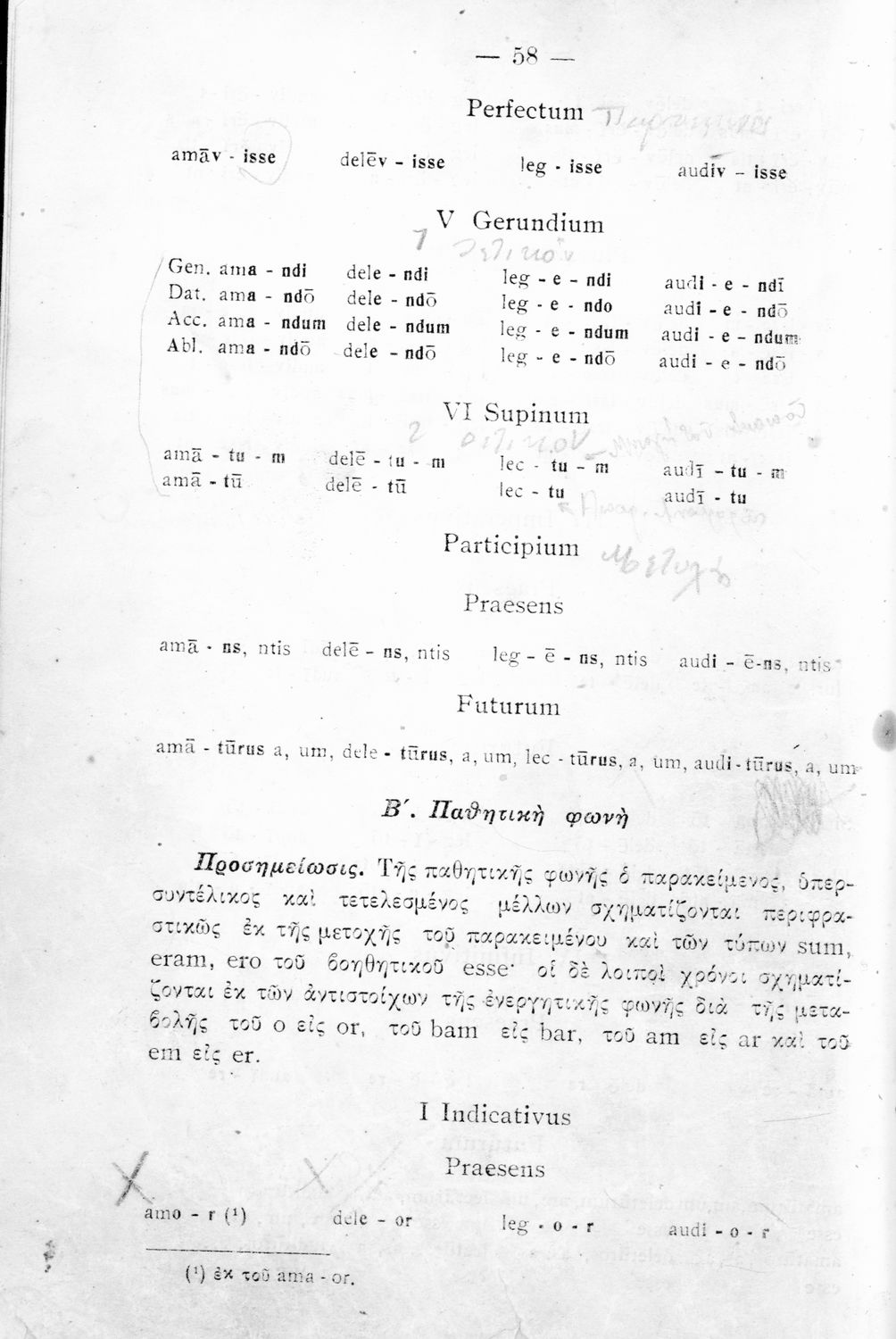 Σχολικό εγχειρίδιο Λατινικών που περιλαμβάνει τη γραμματική της λατινικής και είναι χωρισμένο στο τεχνολογικό, το τυπολογικό και το ετυμολογικό μέρος.