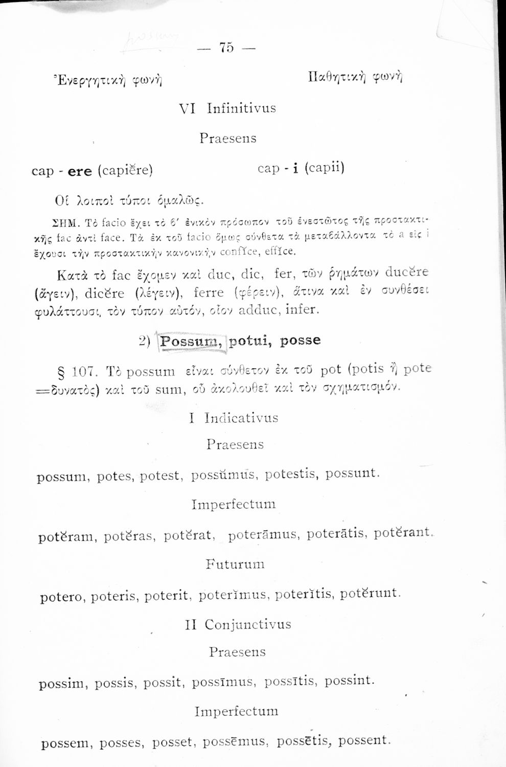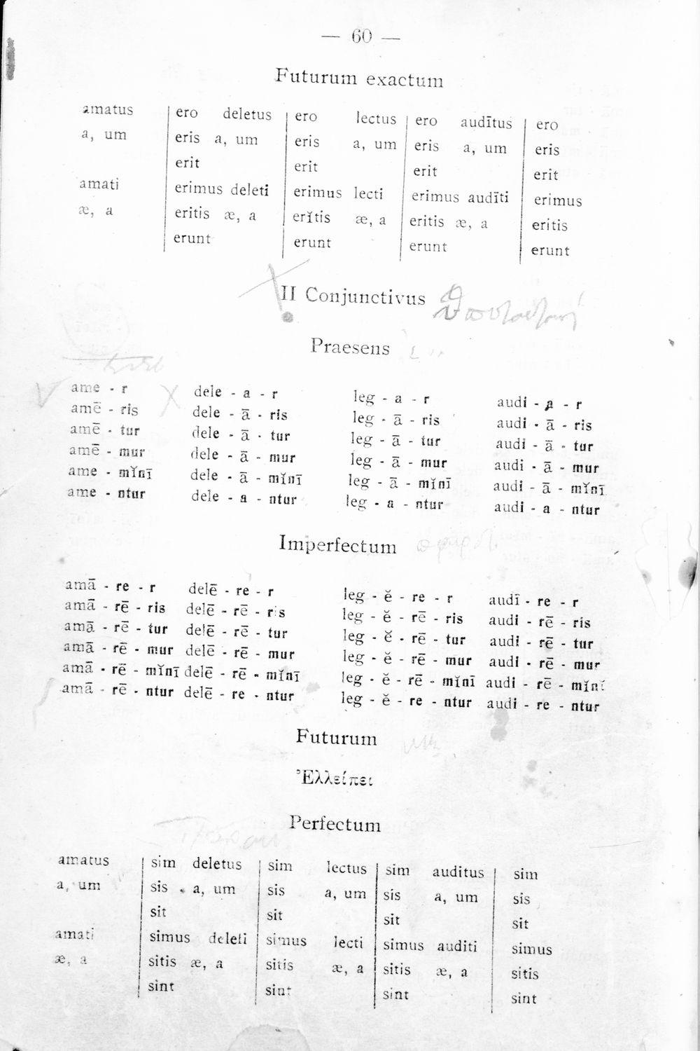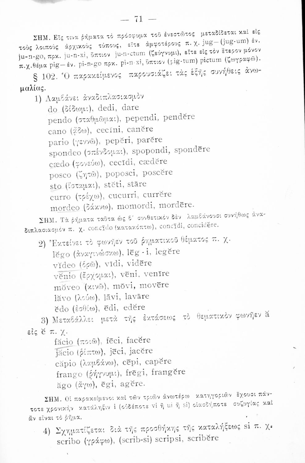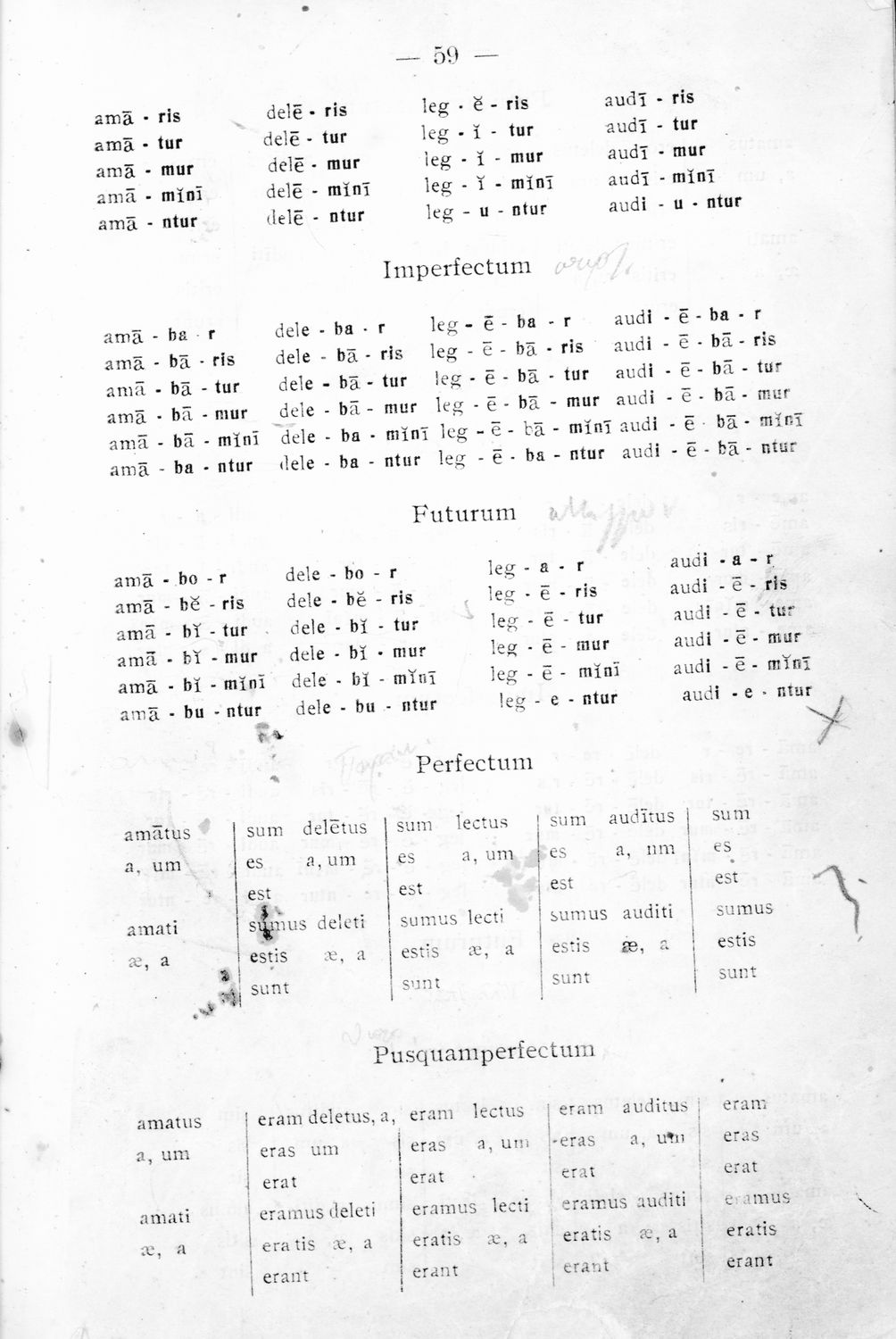 Σχολικό εγχειρίδιο Λατινικών που περιλαμβάνει τη γραμματική της λατινικής και είναι χωρισμένο στο τεχνολογικό, το τυπολογικό και το ετυμολογικό μέρος.