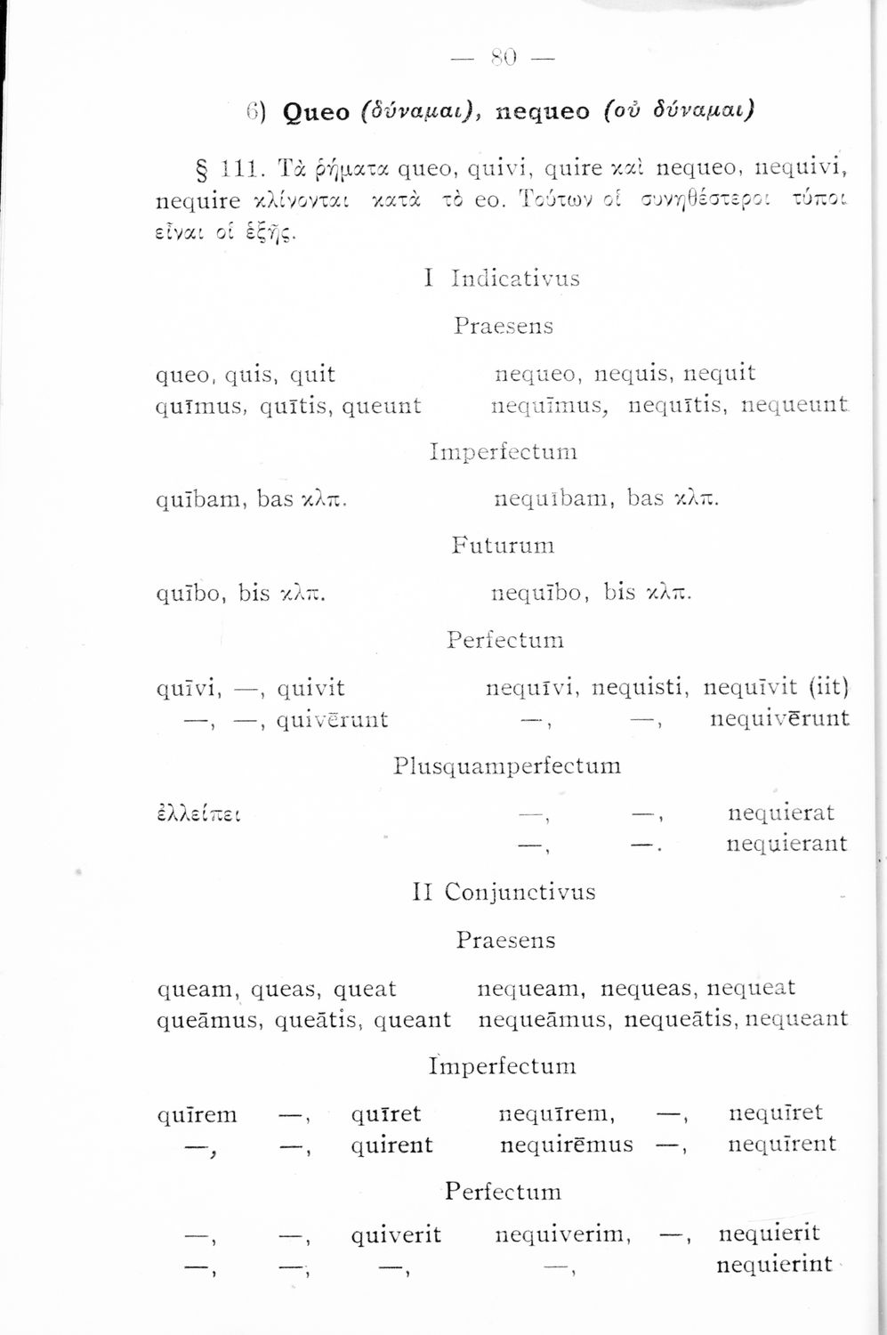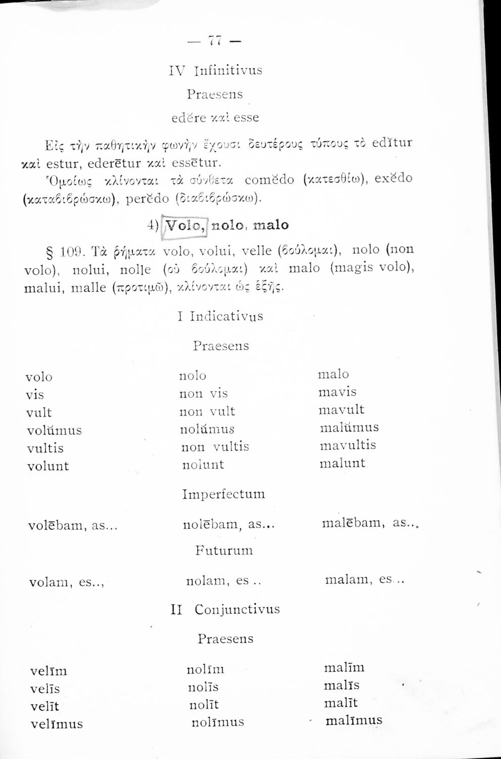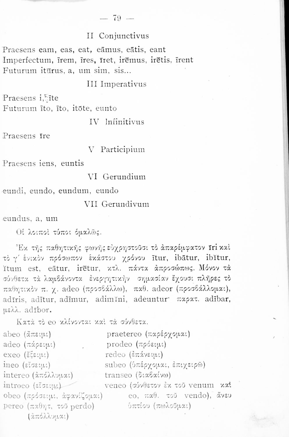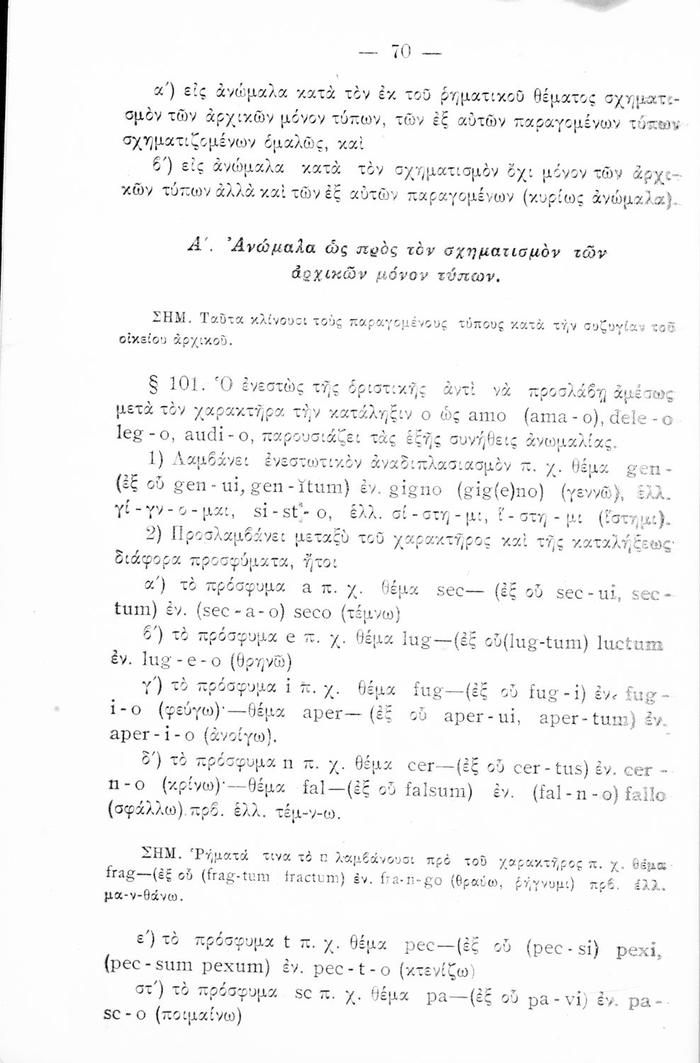 Σχολικό εγχειρίδιο Λατινικών που περιλαμβάνει τη γραμματική της λατινικής και είναι χωρισμένο στο τεχνολογικό, το τυπολογικό και το ετυμολογικό μέρος.