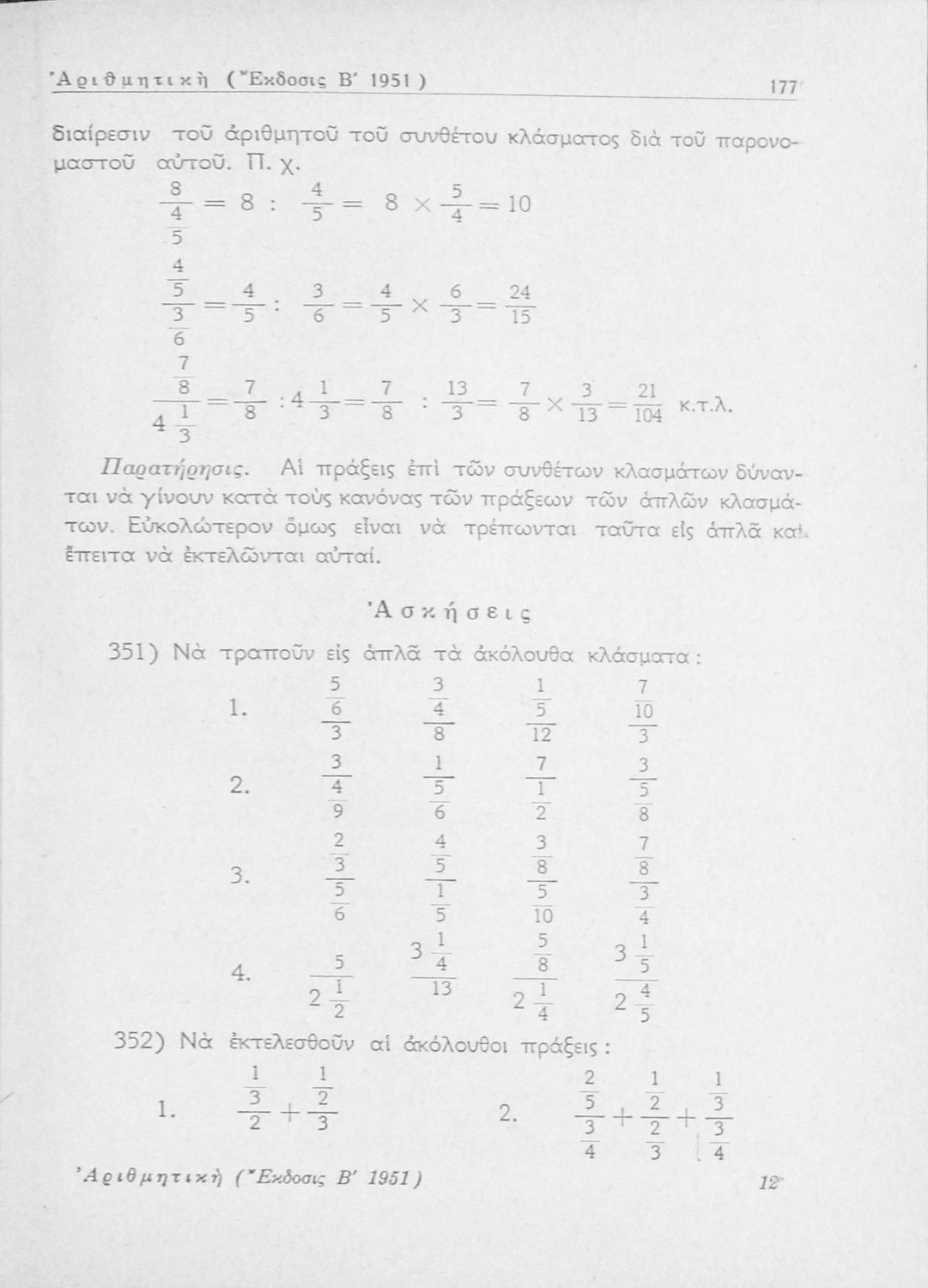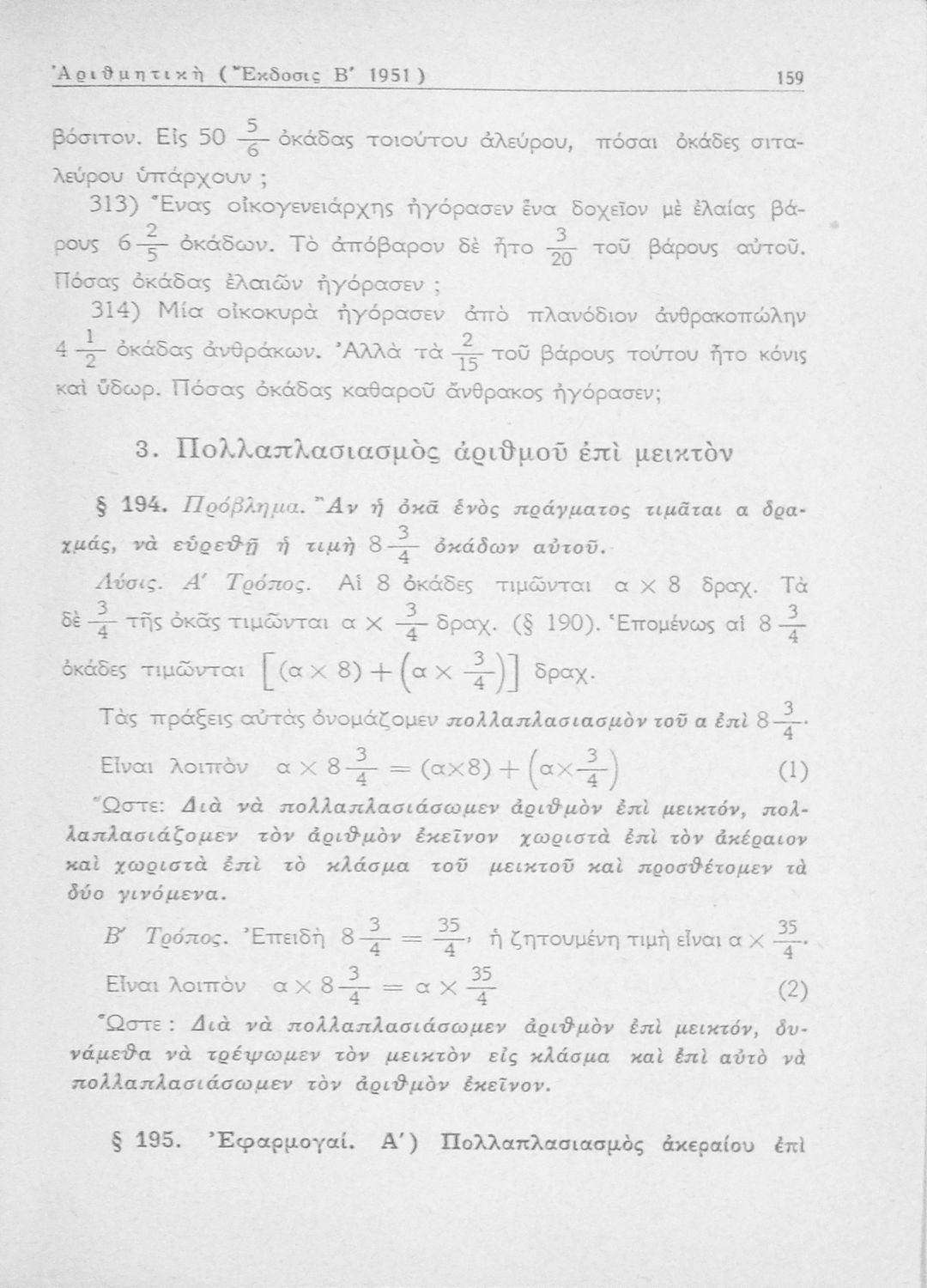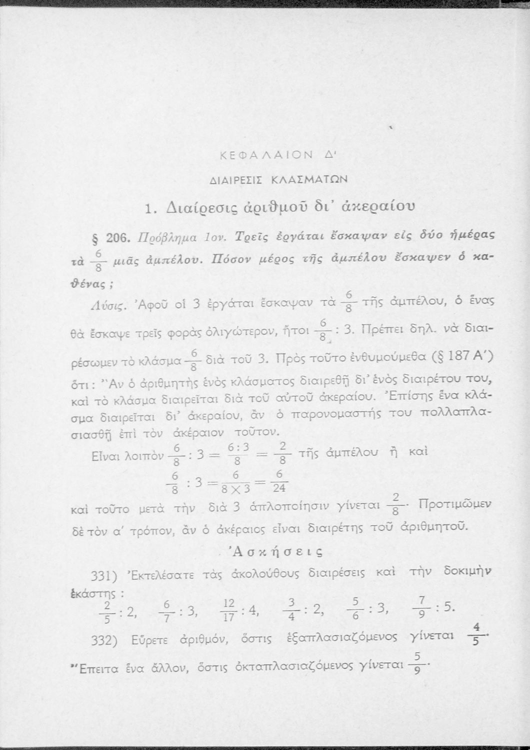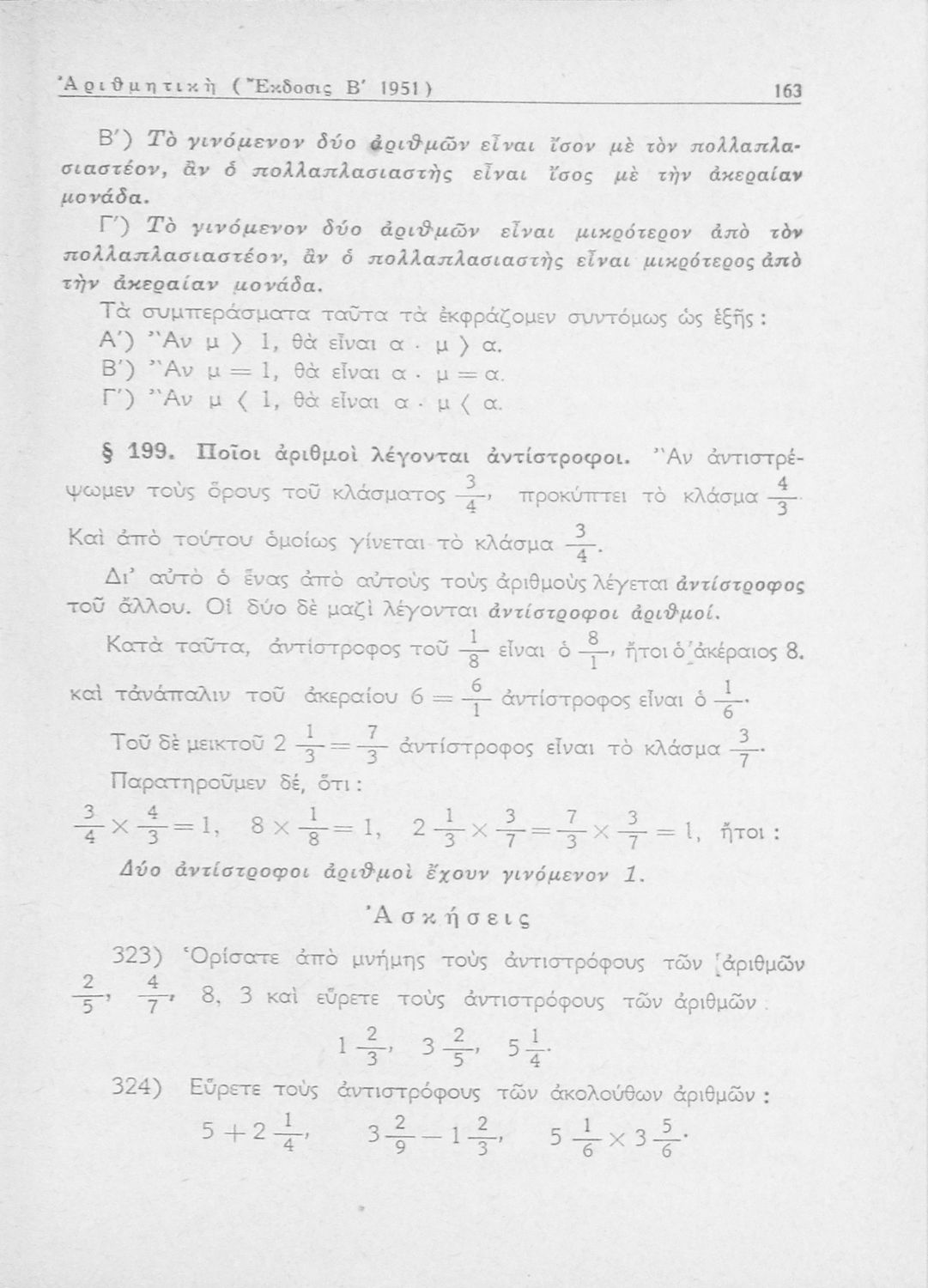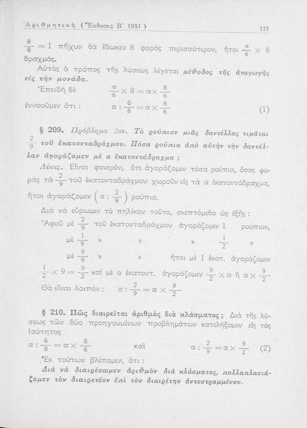 Σχολικό εγχειρίδιο Αριθμητικής Γυμνασίου που εστιάζει στις αριθμητικές πράξεις, τα κλάσματα και τις μεθόδους και είναι χωρισμένο σε θεωρία και ασκήσεις με έντονο επιχειρηματικό προσανατολισμό. Περιλαμβάνει στοιχεία Θεωρητικής Αριθμητικής.