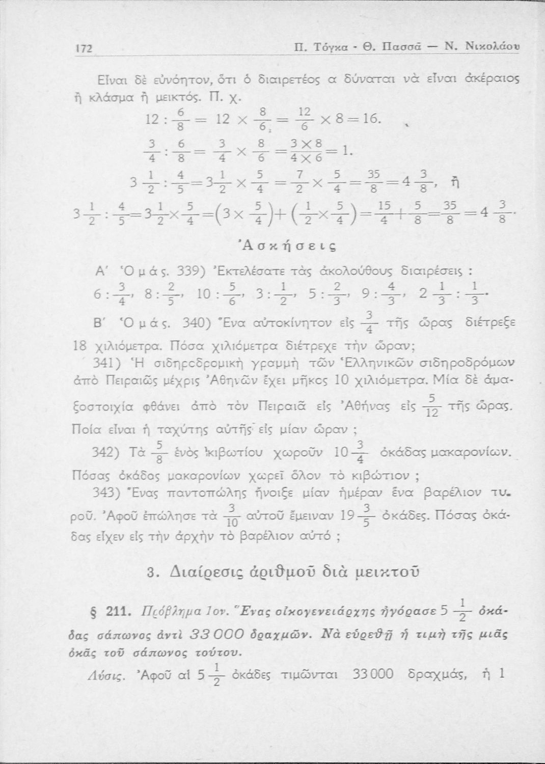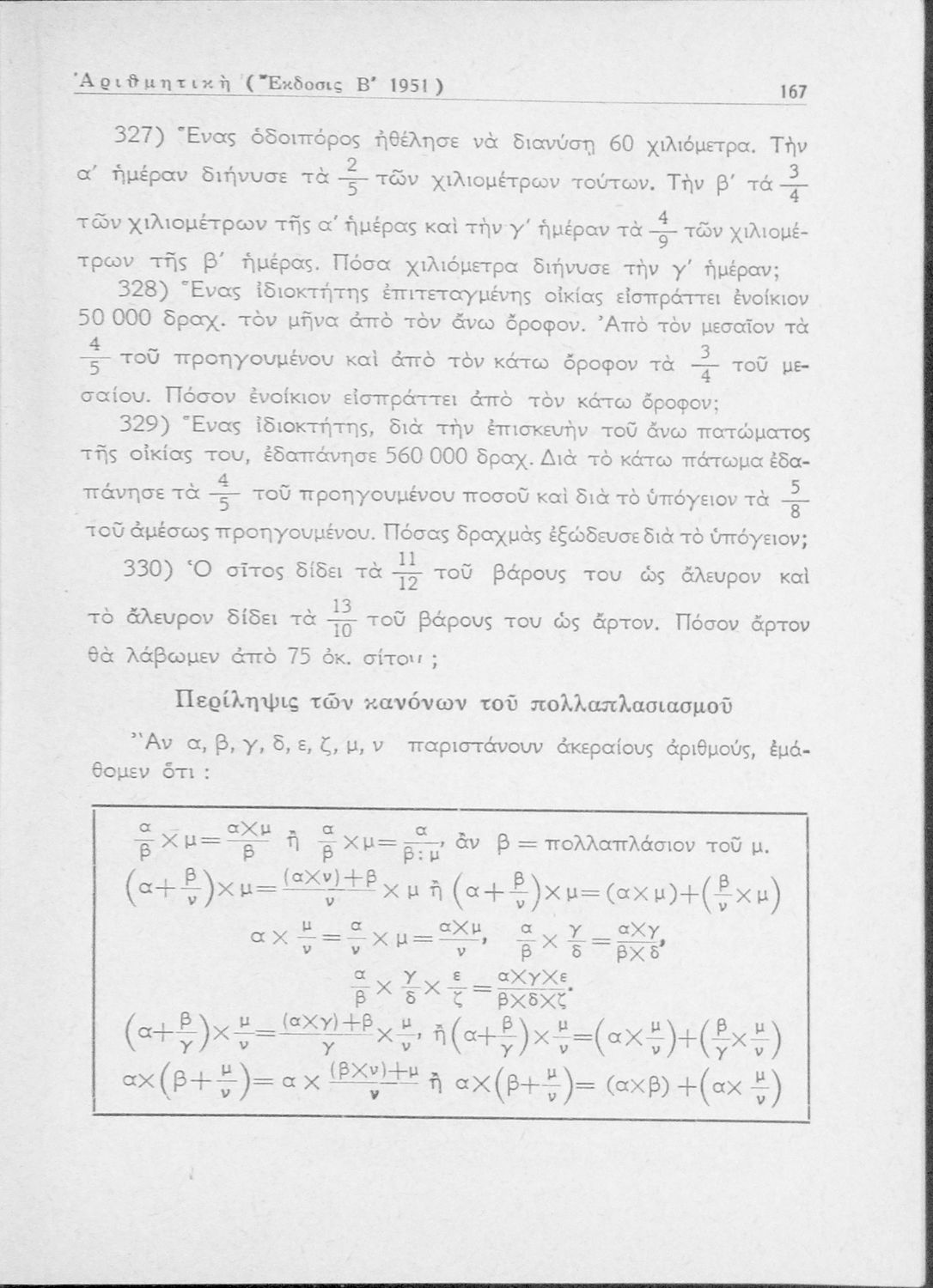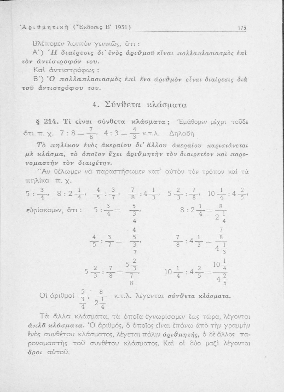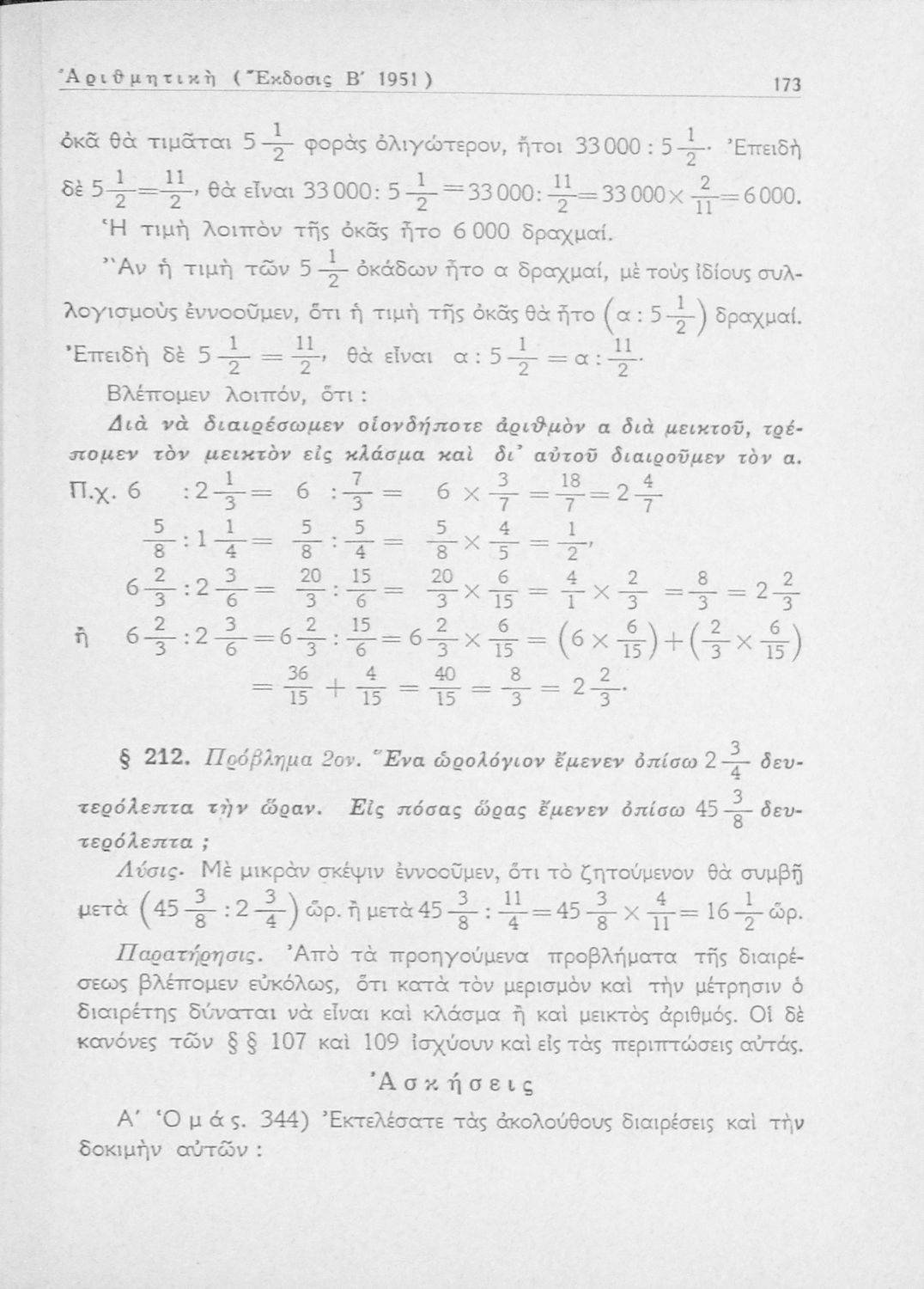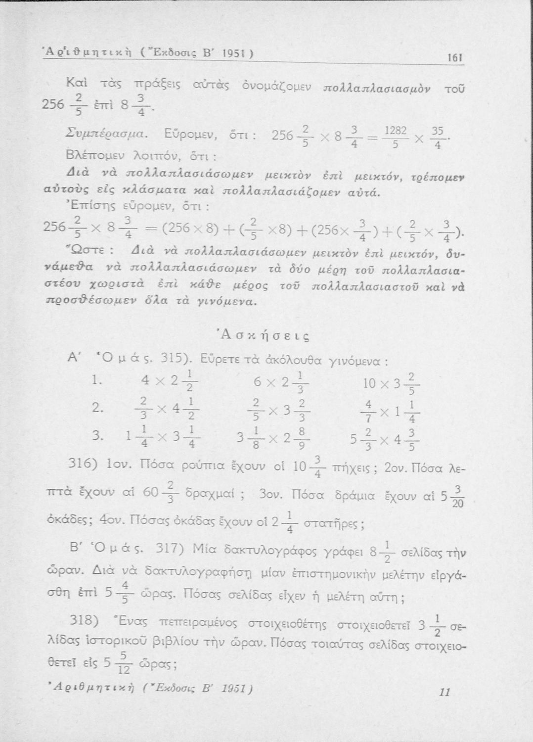 Σχολικό εγχειρίδιο Αριθμητικής Γυμνασίου που εστιάζει στις αριθμητικές πράξεις, τα κλάσματα και τις μεθόδους και είναι χωρισμένο σε θεωρία και ασκήσεις με έντονο επιχειρηματικό προσανατολισμό. Περιλαμβάνει στοιχεία Θεωρητικής Αριθμητικής.