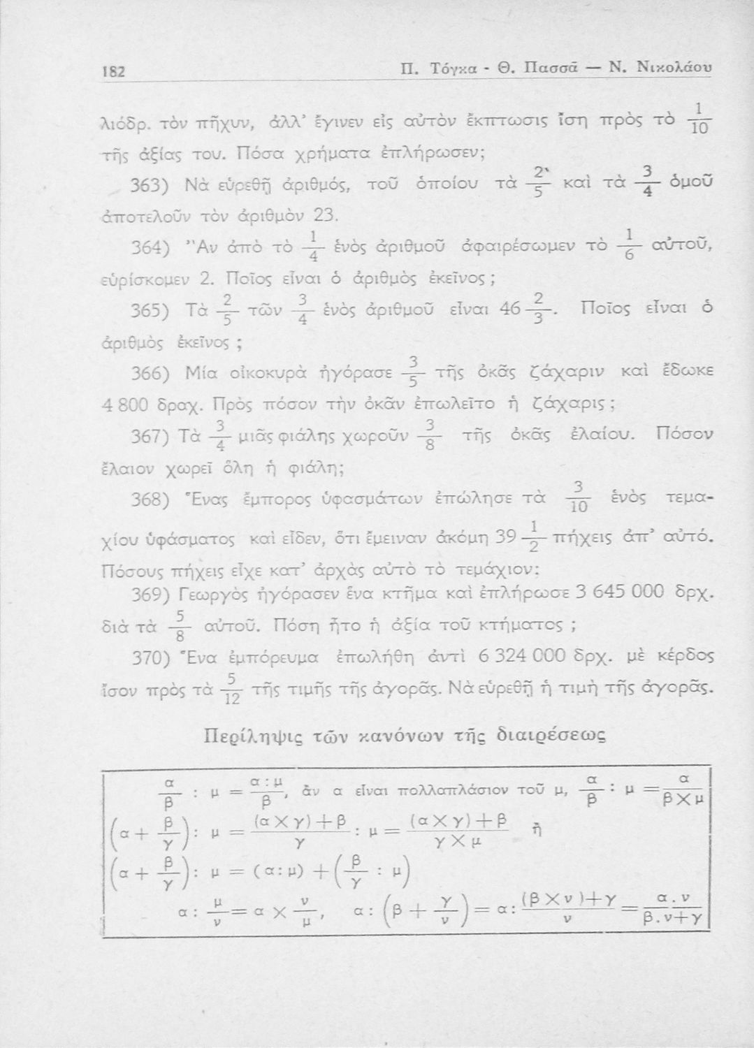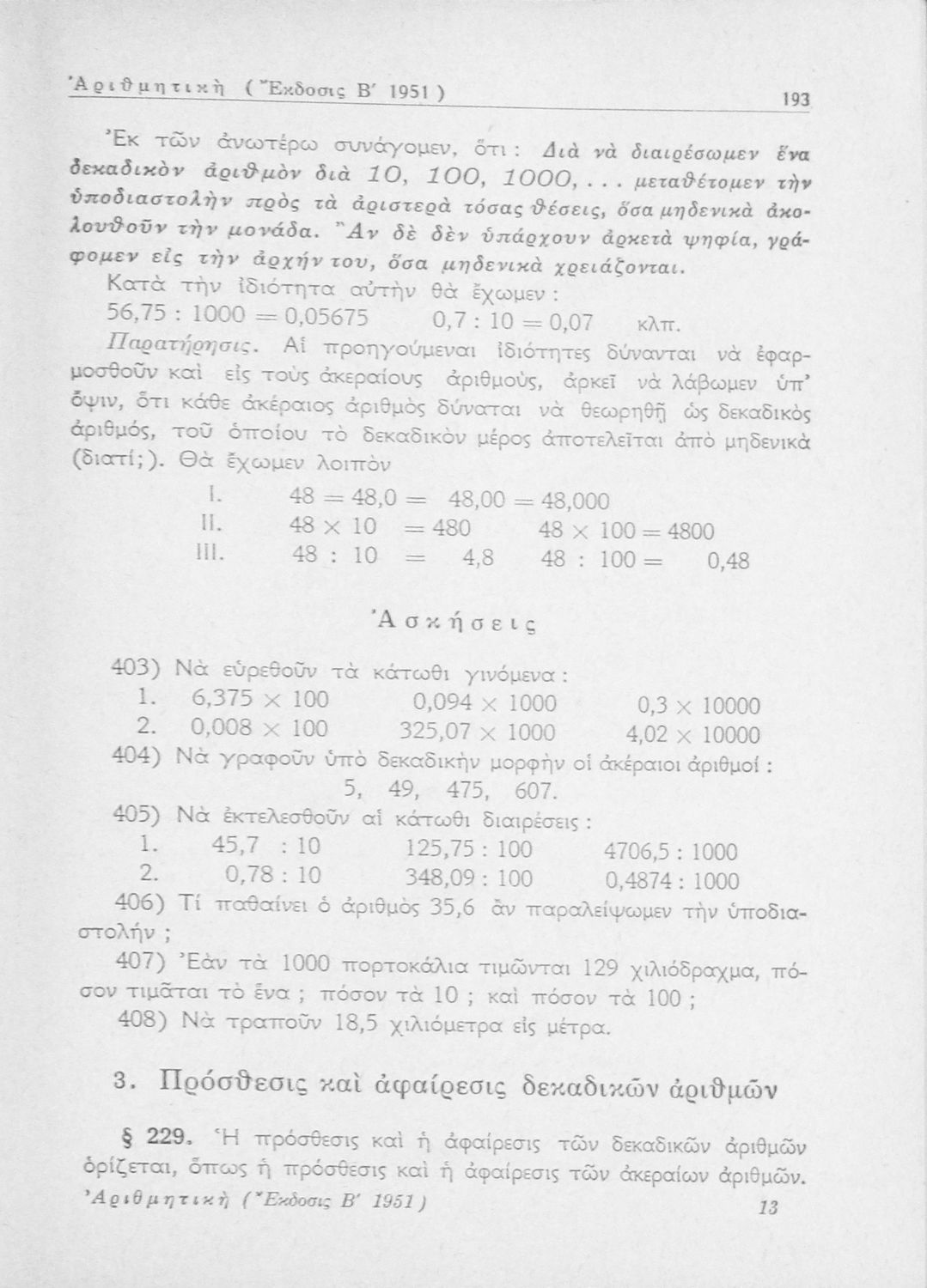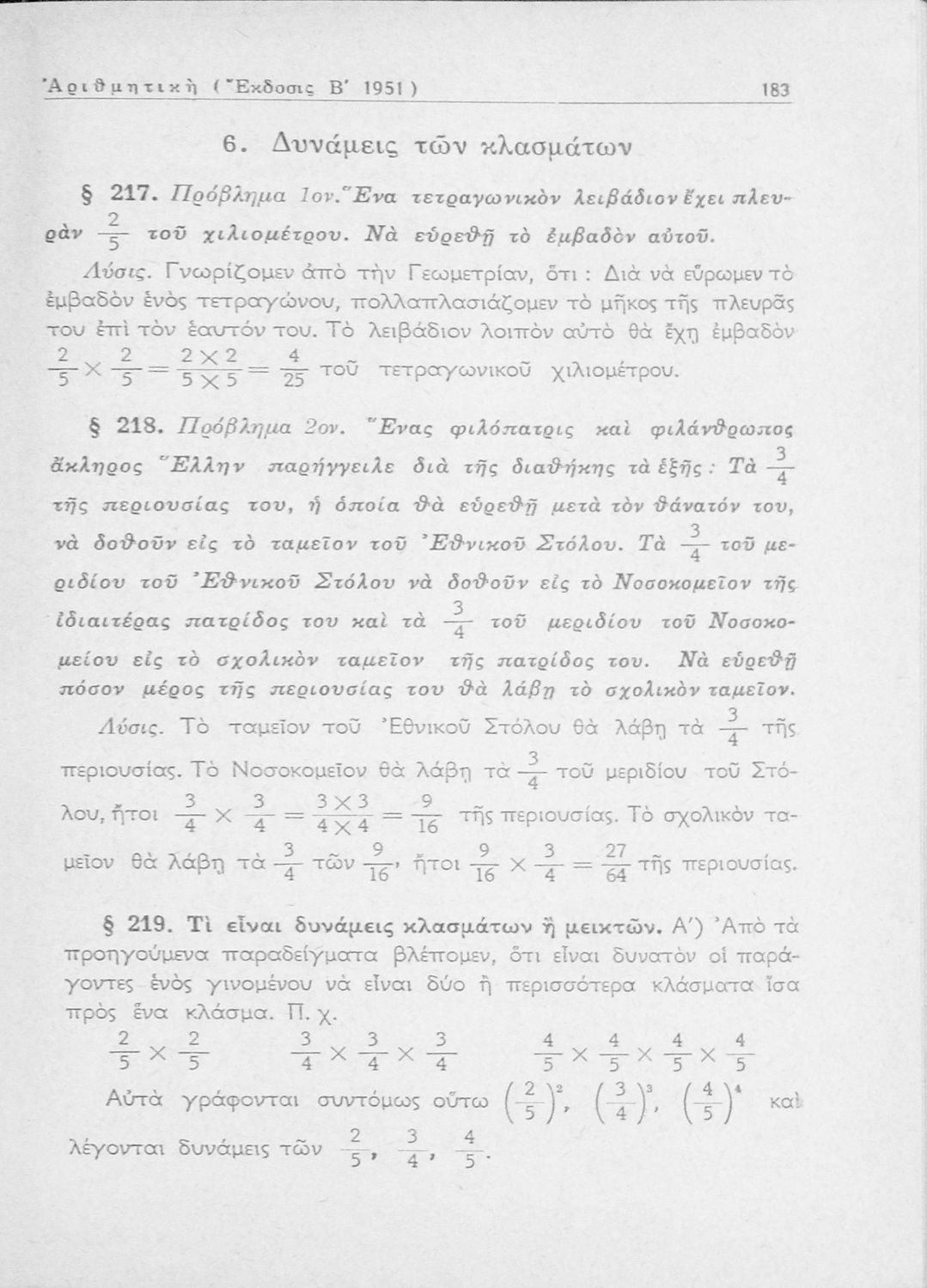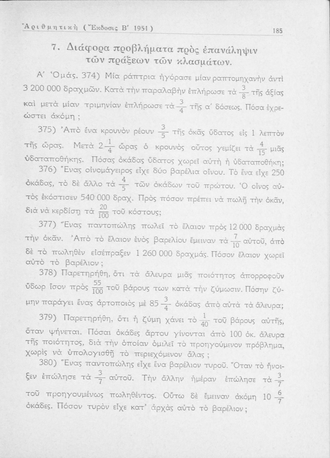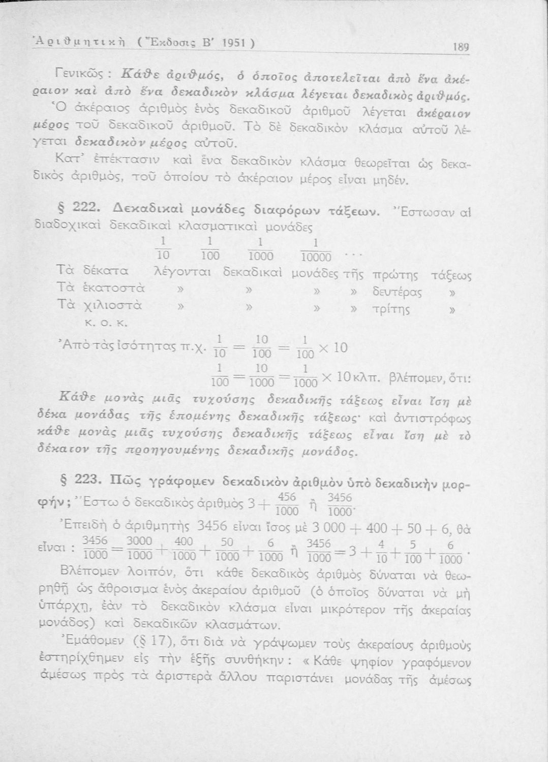 Σχολικό εγχειρίδιο Αριθμητικής Γυμνασίου που εστιάζει στις αριθμητικές πράξεις, τα κλάσματα και τις μεθόδους και είναι χωρισμένο σε θεωρία και ασκήσεις με έντονο επιχειρηματικό προσανατολισμό. Περιλαμβάνει στοιχεία Θεωρητικής Αριθμητικής.