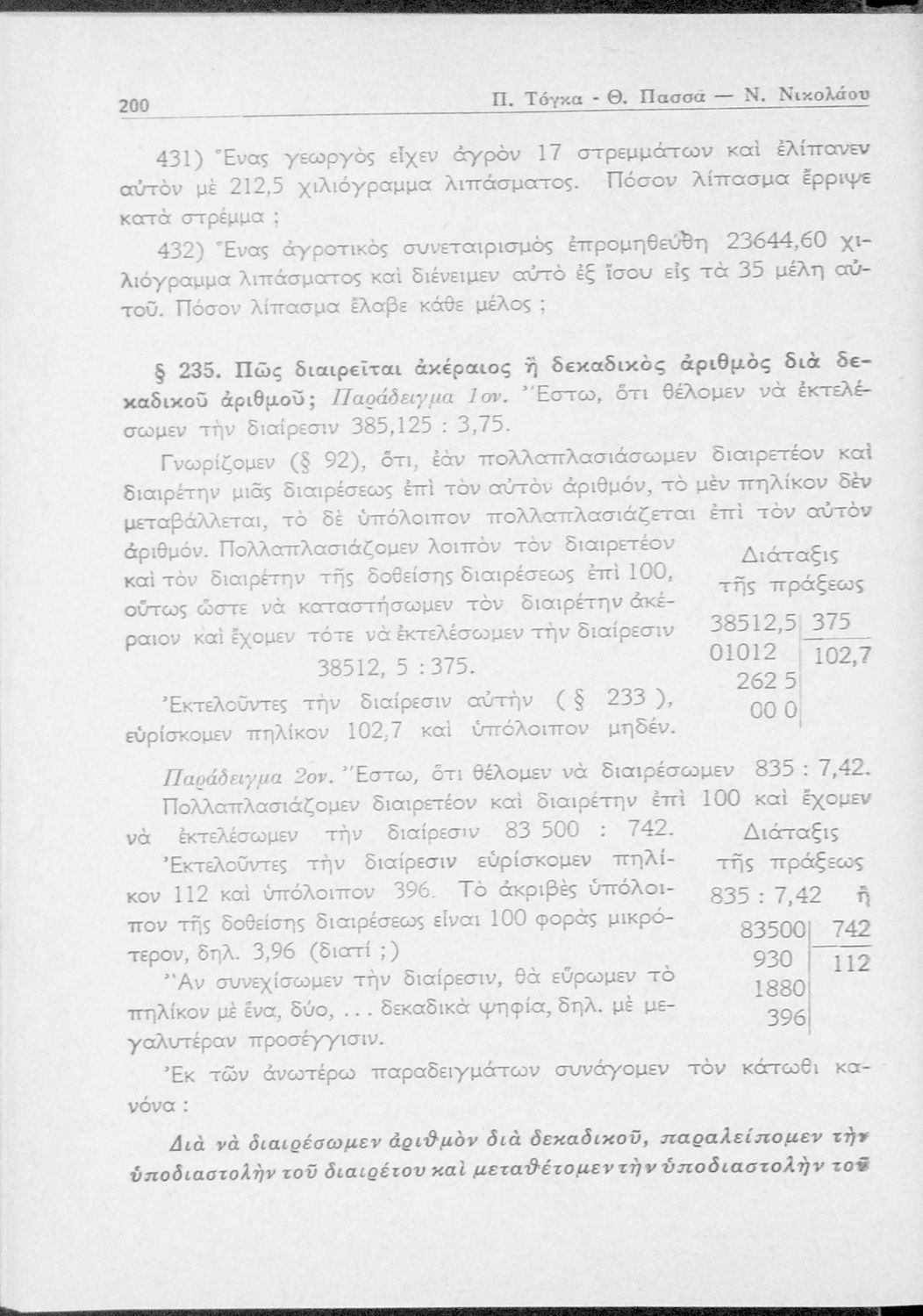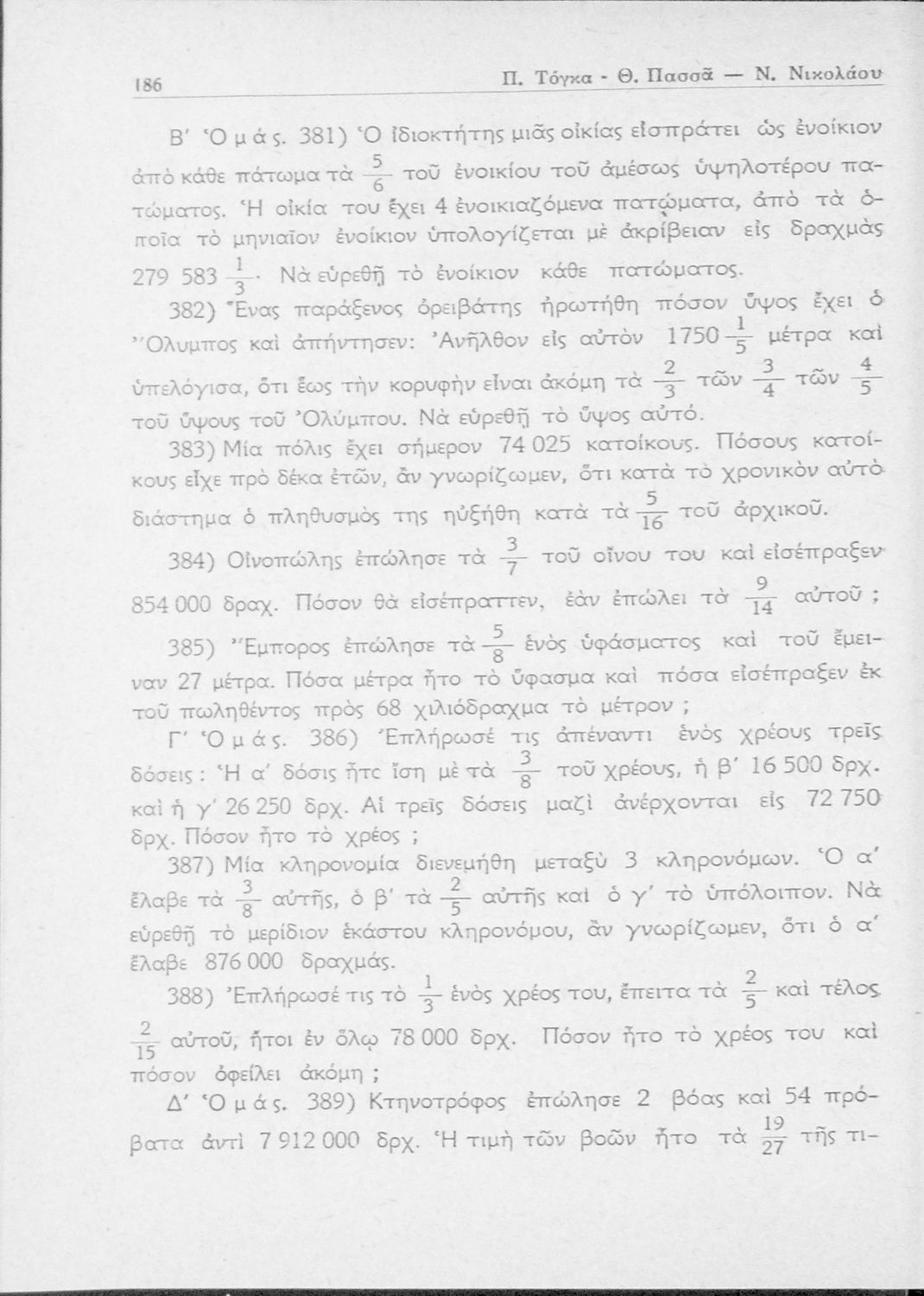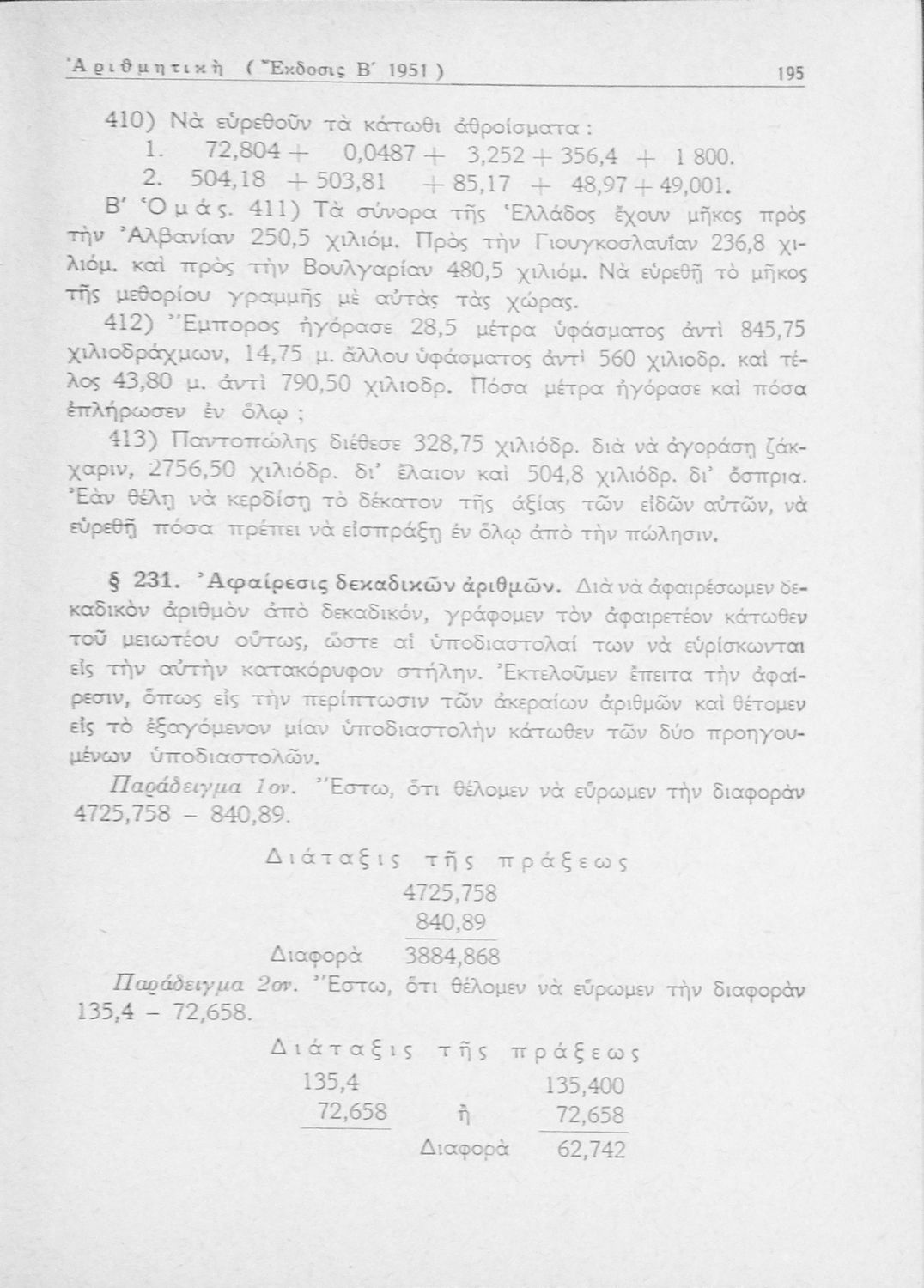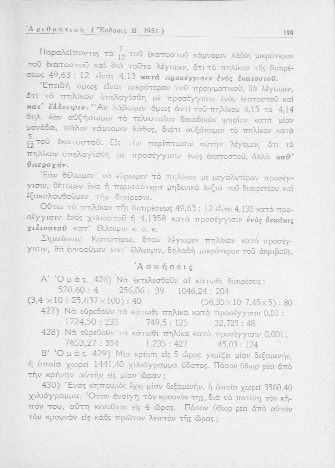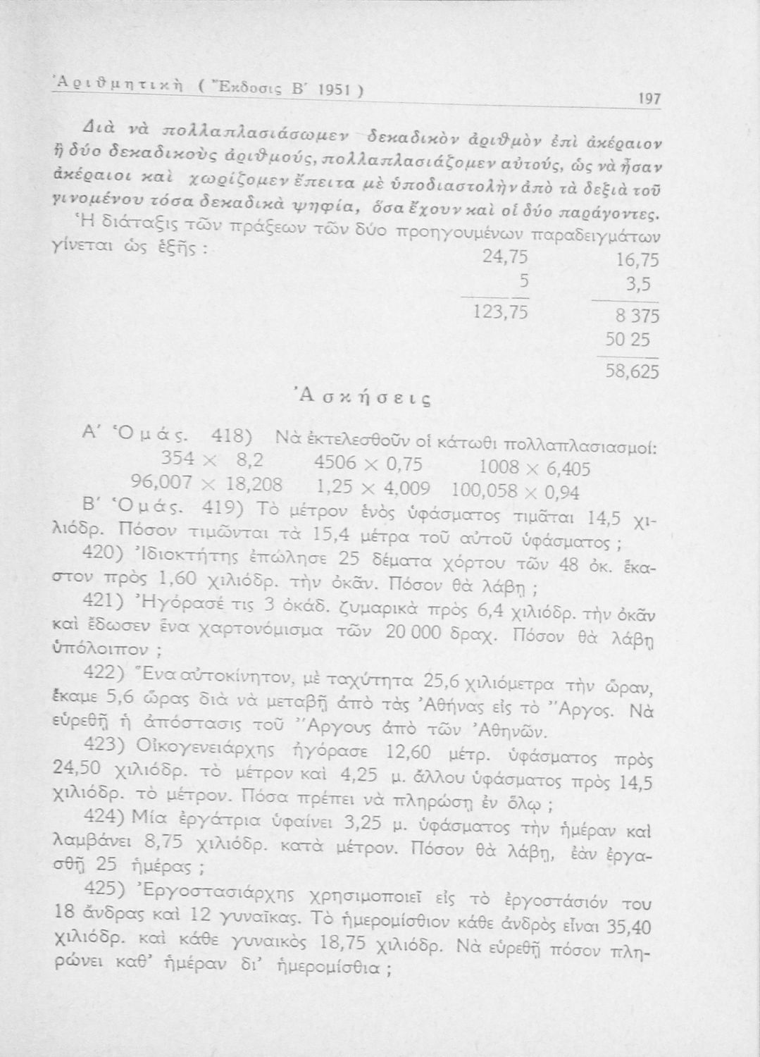 Σχολικό εγχειρίδιο Αριθμητικής Γυμνασίου που εστιάζει στις αριθμητικές πράξεις, τα κλάσματα και τις μεθόδους και είναι χωρισμένο σε θεωρία και ασκήσεις με έντονο επιχειρηματικό προσανατολισμό. Περιλαμβάνει στοιχεία Θεωρητικής Αριθμητικής.