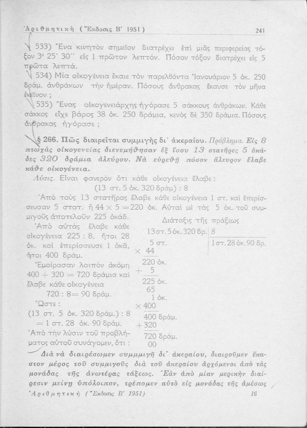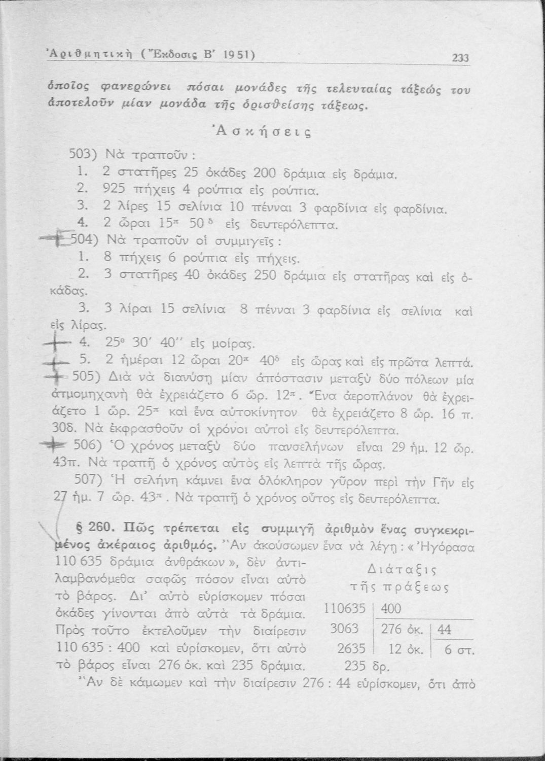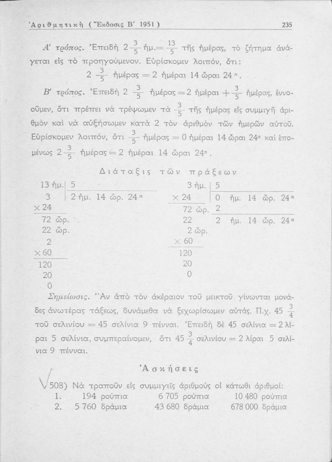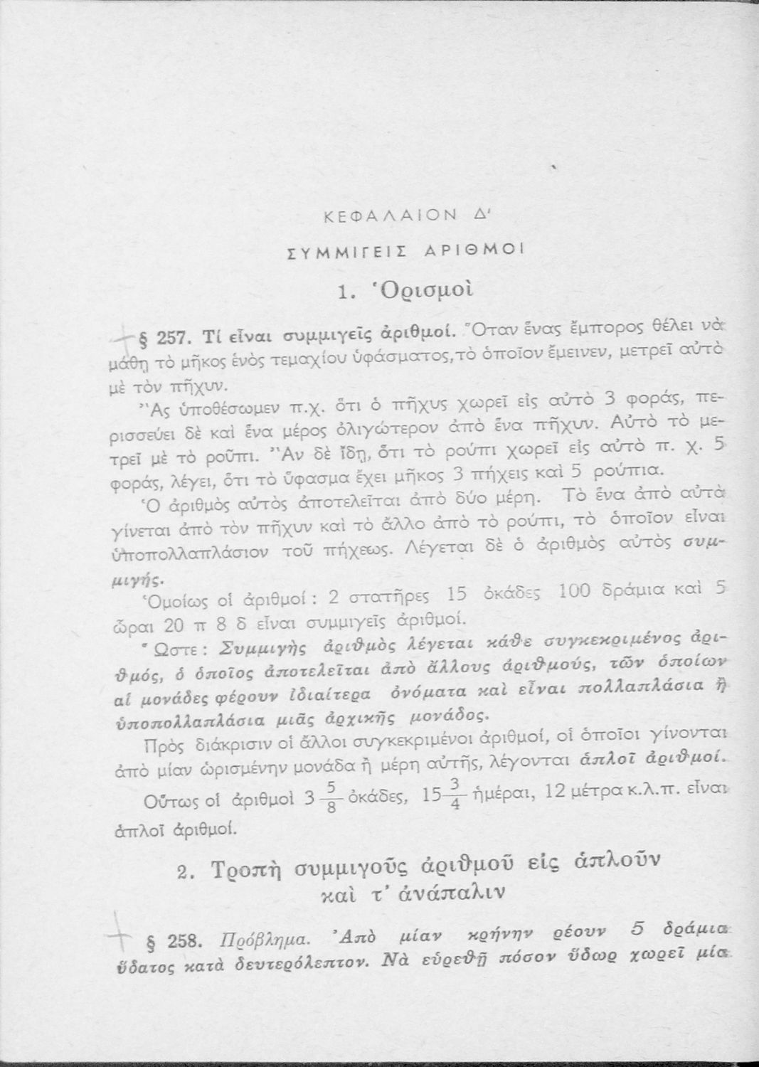 Σχολικό εγχειρίδιο Αριθμητικής Γυμνασίου που εστιάζει στις αριθμητικές πράξεις, τα κλάσματα και τις μεθόδους και είναι χωρισμένο σε θεωρία και ασκήσεις με έντονο επιχειρηματικό προσανατολισμό. Περιλαμβάνει στοιχεία Θεωρητικής Αριθμητικής.