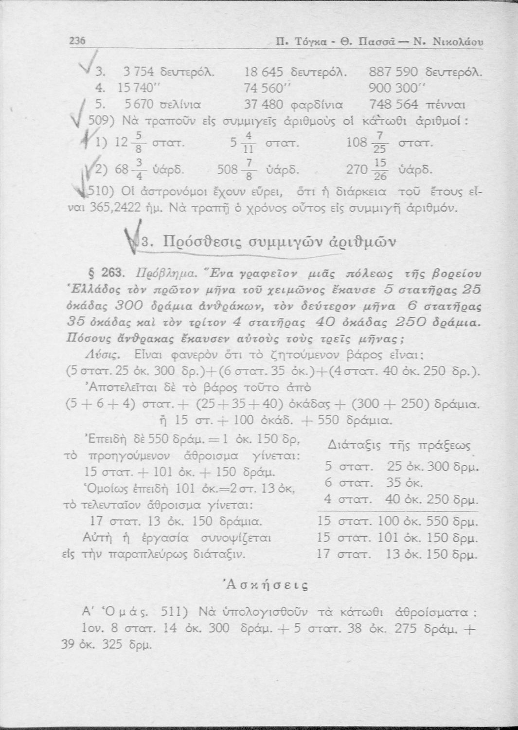 LDR 01243 2200205 4500 035 ## _a01-45264 040 ## _aΙνστιτούτο Εκπαιδευτικής Πολιτικής 041 ## _ael 100 ## _aΠ. Τόγκας _aΘ. Πασσάς _aΝ. Νικολάου 110 ## _a45264 245 0# _aΑριθμητική δια τας κατωτέρας τάξεις των Γυμνασίων 250 ## _a2η Έκδοση 260 ## _aΑθήνα _bΟργανισμός Εκδόσεως Σχολικών Βιβλίων _c1951 300 ## _a375 _c20 520 ## _aΣχολικό εγχειρίδιο Αριθμητικής Γυμνασίου που εστιάζει στις αριθμητικές πράξεις, τα κλάσματα και τις μεθόδους και είναι χωρισμένο σε θεωρία και ασκήσεις με έντονο επιχειρηματικό προσανατολισμό. Περιλαμβάνει στοιχεία Θεωρητικής Αριθμητικής. 521 ## _aΓυμνάσιο 522 ## _aΕλλάδα 546 ## _aΑπλή καθαρεύουσα 563 ## _aΣκληρό Εξώφυλλο 650 #4 _aΑριθμητικές πράξεις _aΚλάσματα _aΜέθοδοι _aΤόκος