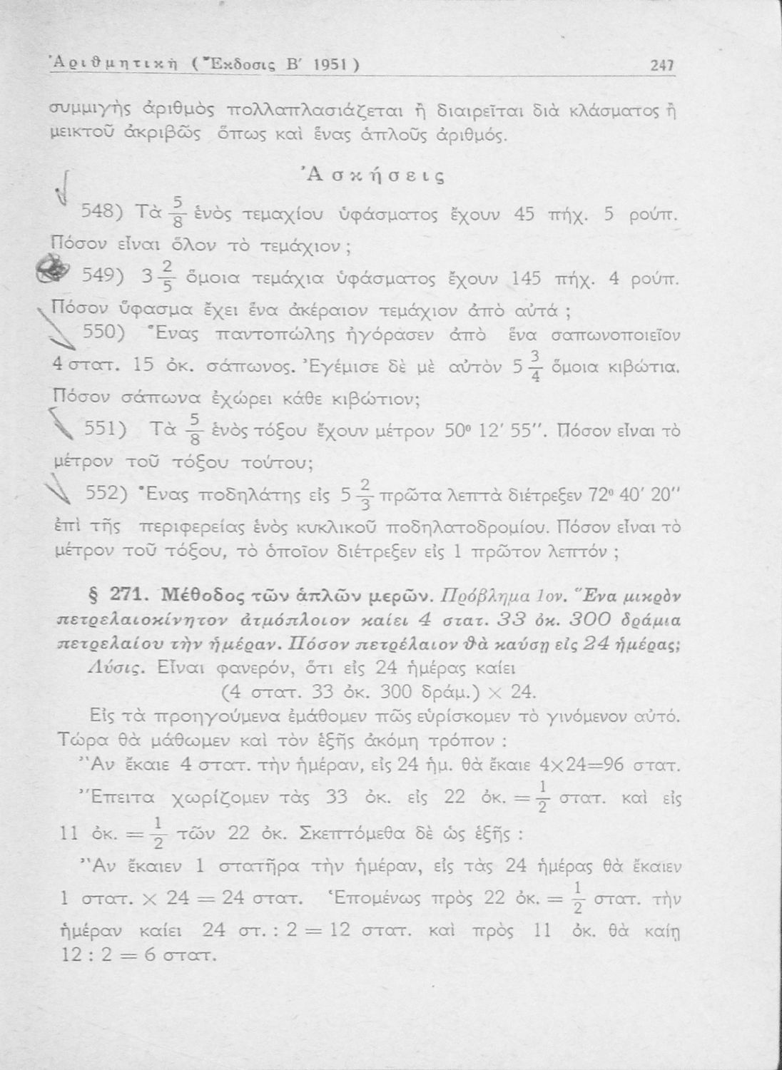 Σχολικό εγχειρίδιο Αριθμητικής Γυμνασίου που εστιάζει στις αριθμητικές πράξεις, τα κλάσματα και τις μεθόδους και είναι χωρισμένο σε θεωρία και ασκήσεις με έντονο επιχειρηματικό προσανατολισμό. Περιλαμβάνει στοιχεία Θεωρητικής Αριθμητικής.