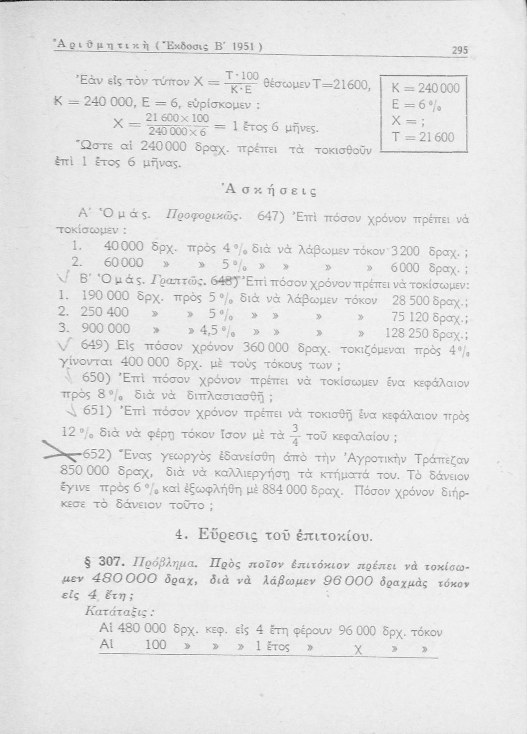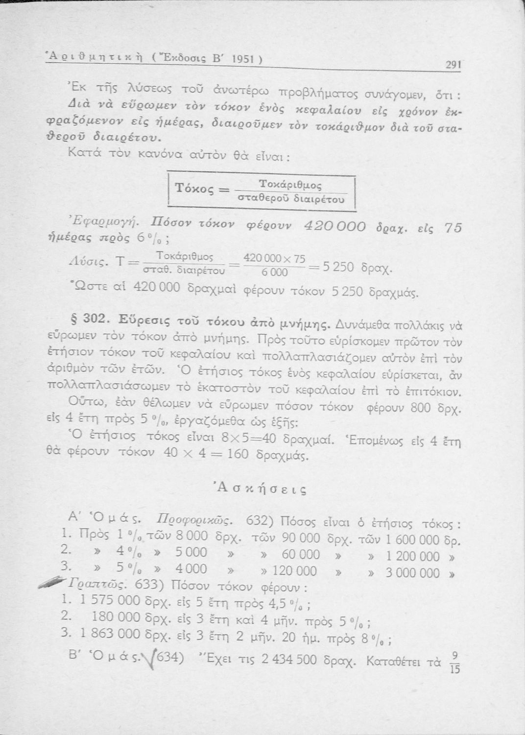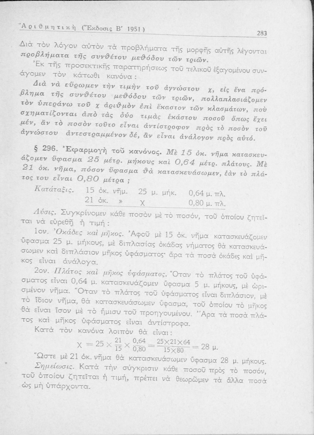 Σχολικό εγχειρίδιο Αριθμητικής Γυμνασίου που εστιάζει στις αριθμητικές πράξεις, τα κλάσματα και τις μεθόδους και είναι χωρισμένο σε θεωρία και ασκήσεις με έντονο επιχειρηματικό προσανατολισμό. Περιλαμβάνει στοιχεία Θεωρητικής Αριθμητικής.