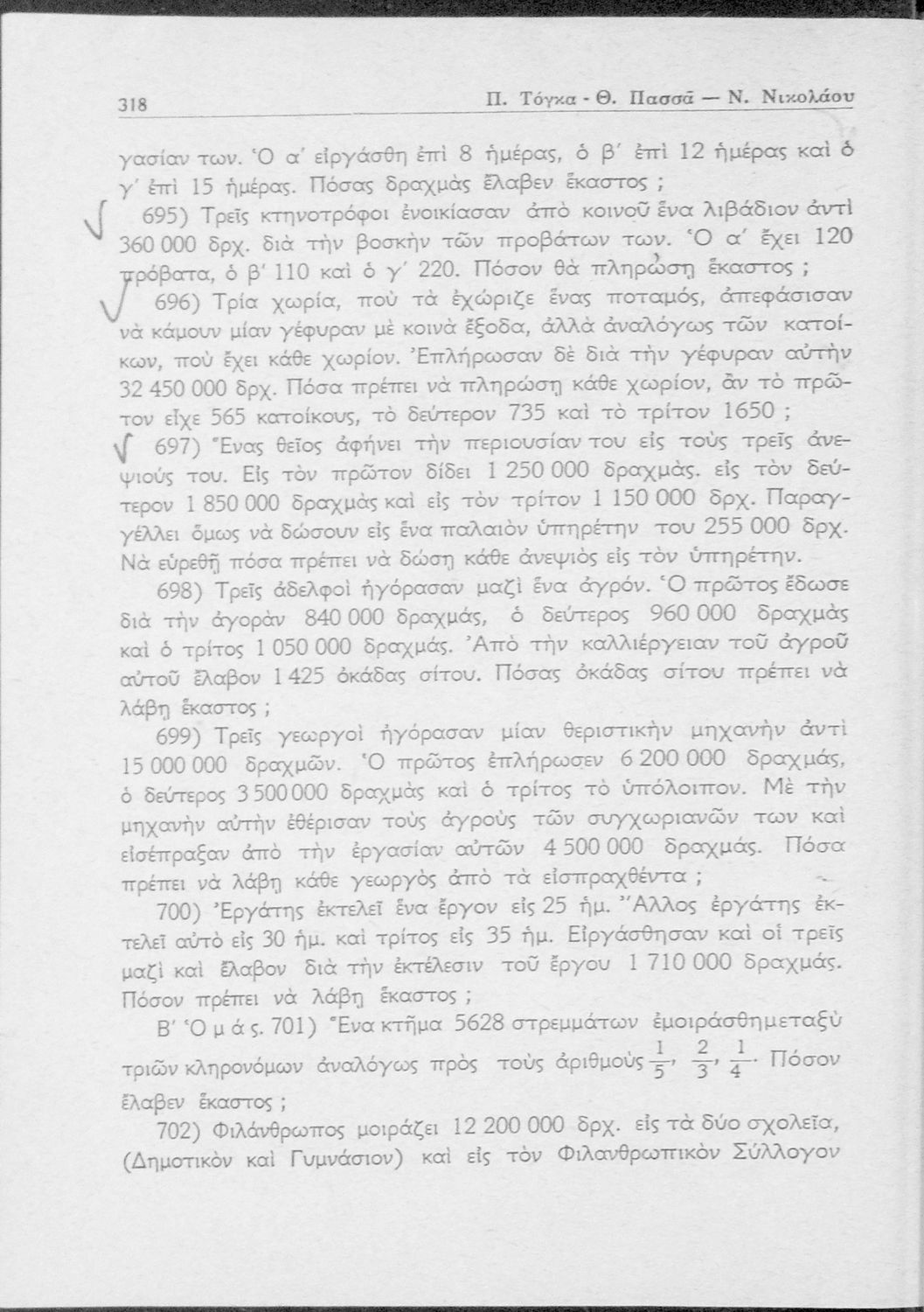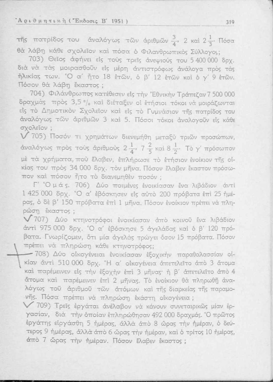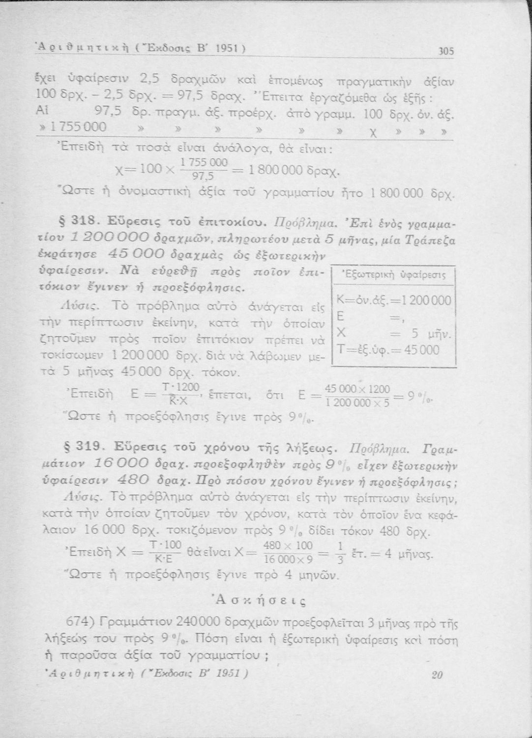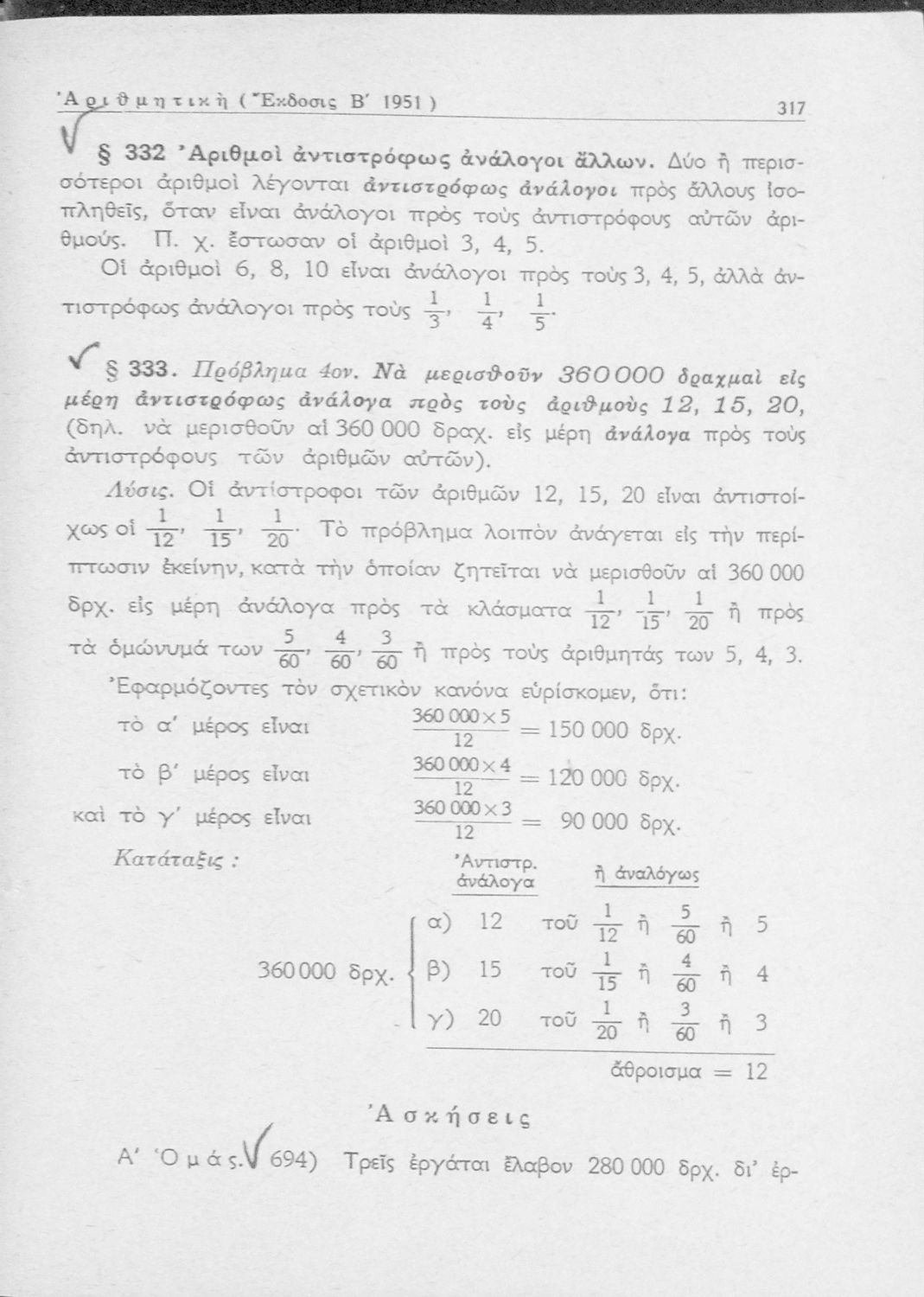 Σχολικό εγχειρίδιο Αριθμητικής Γυμνασίου που εστιάζει στις αριθμητικές πράξεις, τα κλάσματα και τις μεθόδους και είναι χωρισμένο σε θεωρία και ασκήσεις με έντονο επιχειρηματικό προσανατολισμό. Περιλαμβάνει στοιχεία Θεωρητικής Αριθμητικής.