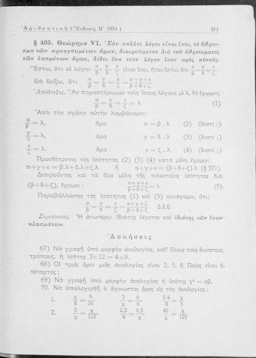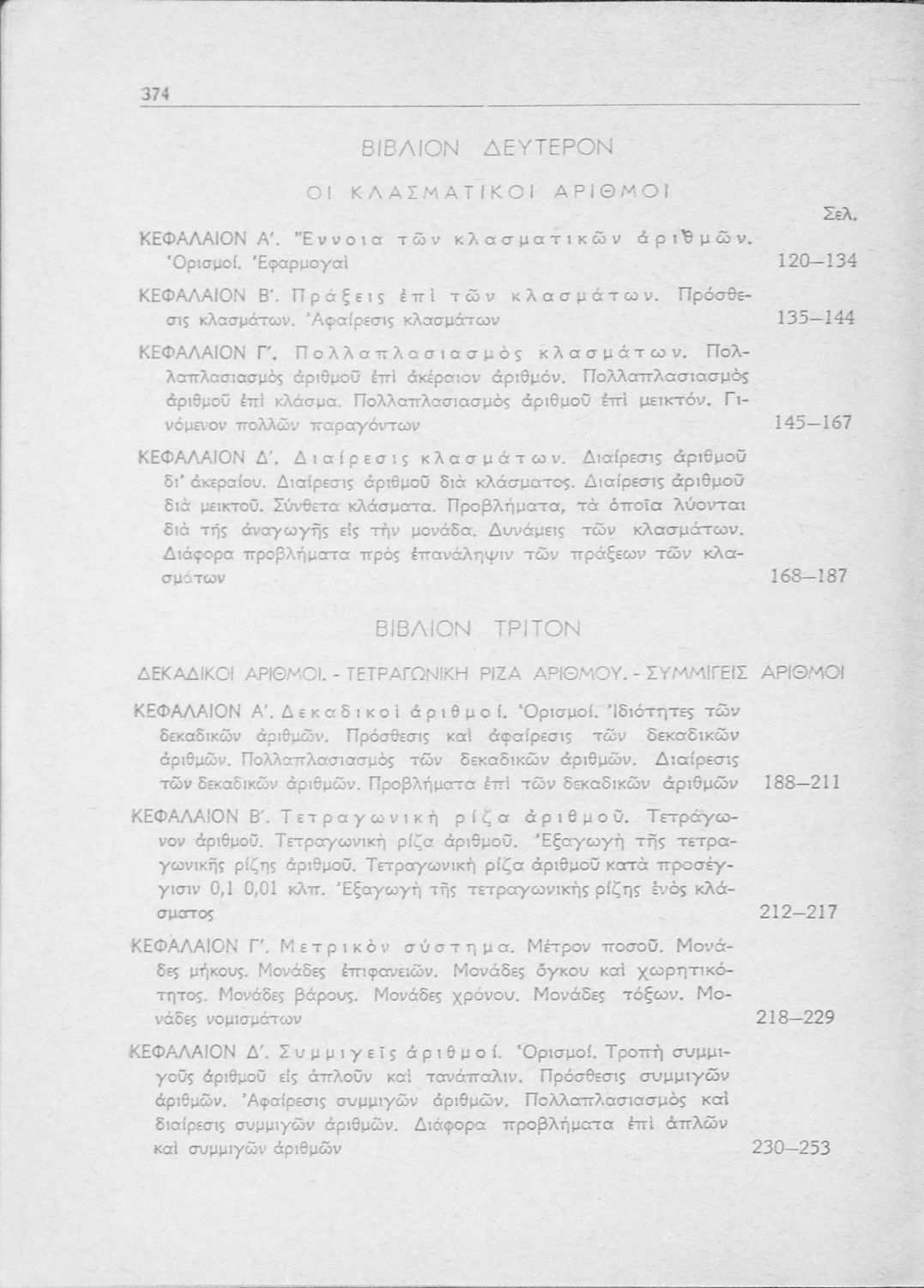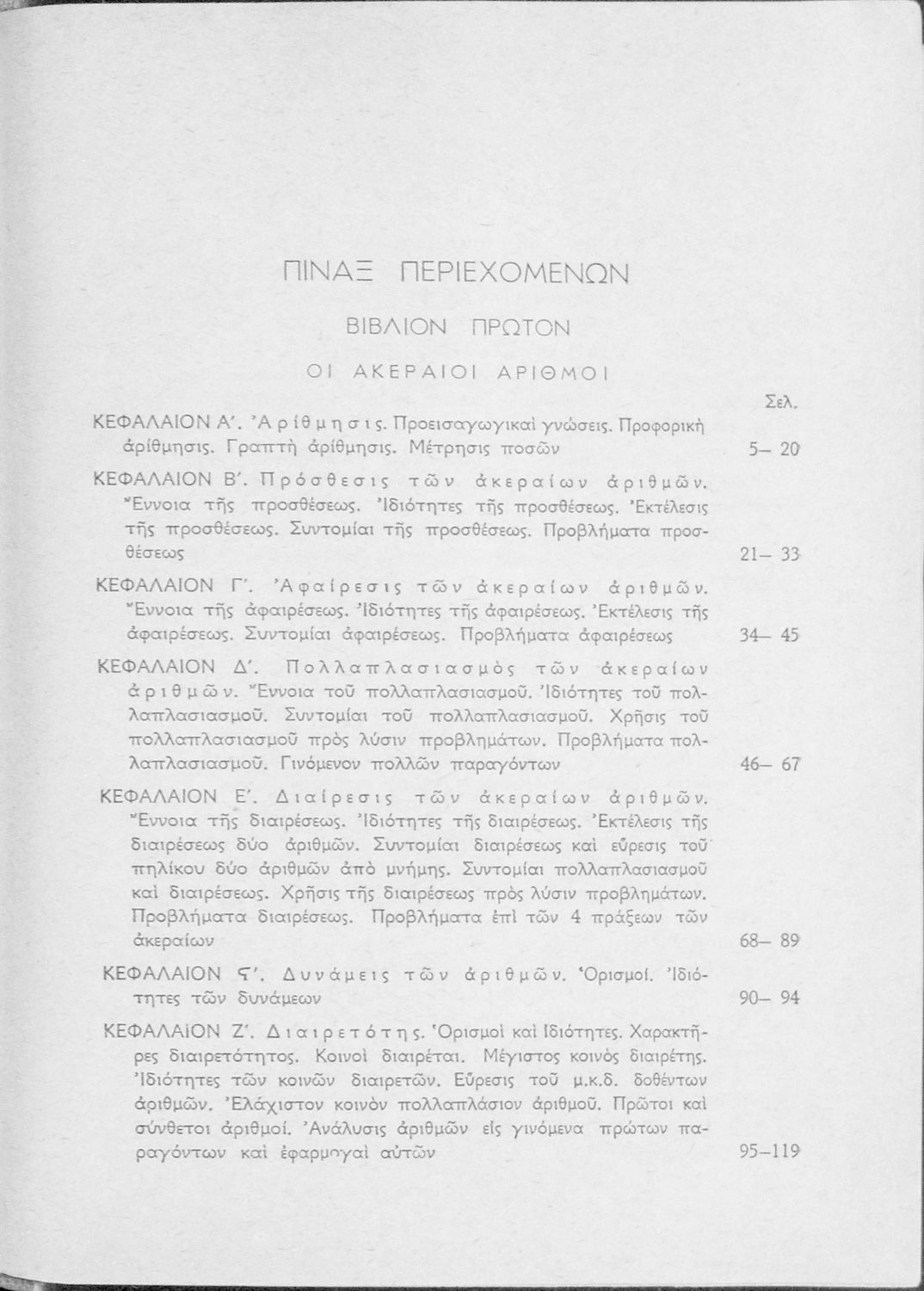 Σχολικό εγχειρίδιο Αριθμητικής Γυμνασίου που εστιάζει στις αριθμητικές πράξεις, τα κλάσματα και τις μεθόδους και είναι χωρισμένο σε θεωρία και ασκήσεις με έντονο επιχειρηματικό προσανατολισμό. Περιλαμβάνει στοιχεία Θεωρητικής Αριθμητικής.