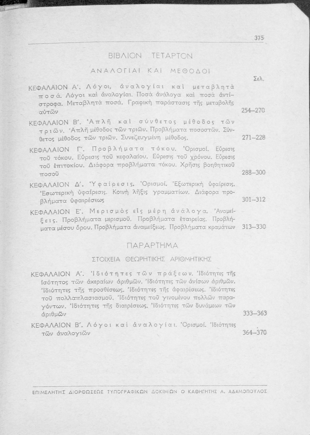 Σχολικό εγχειρίδιο Αριθμητικής για τα Ημιγυμνάσια και Γυμνάσια χωρισμένο σε θεωρία και ασκήσεις. Περιλαμβάνει και στοιχεία λογιστικής και καταστιχογραφίας. Ο συγγραφέας ήταν καθηγητής στο Πανεπιστήμιο Αθηνών.