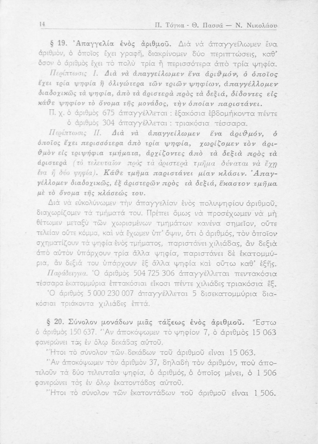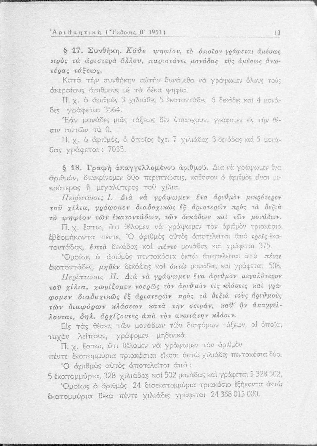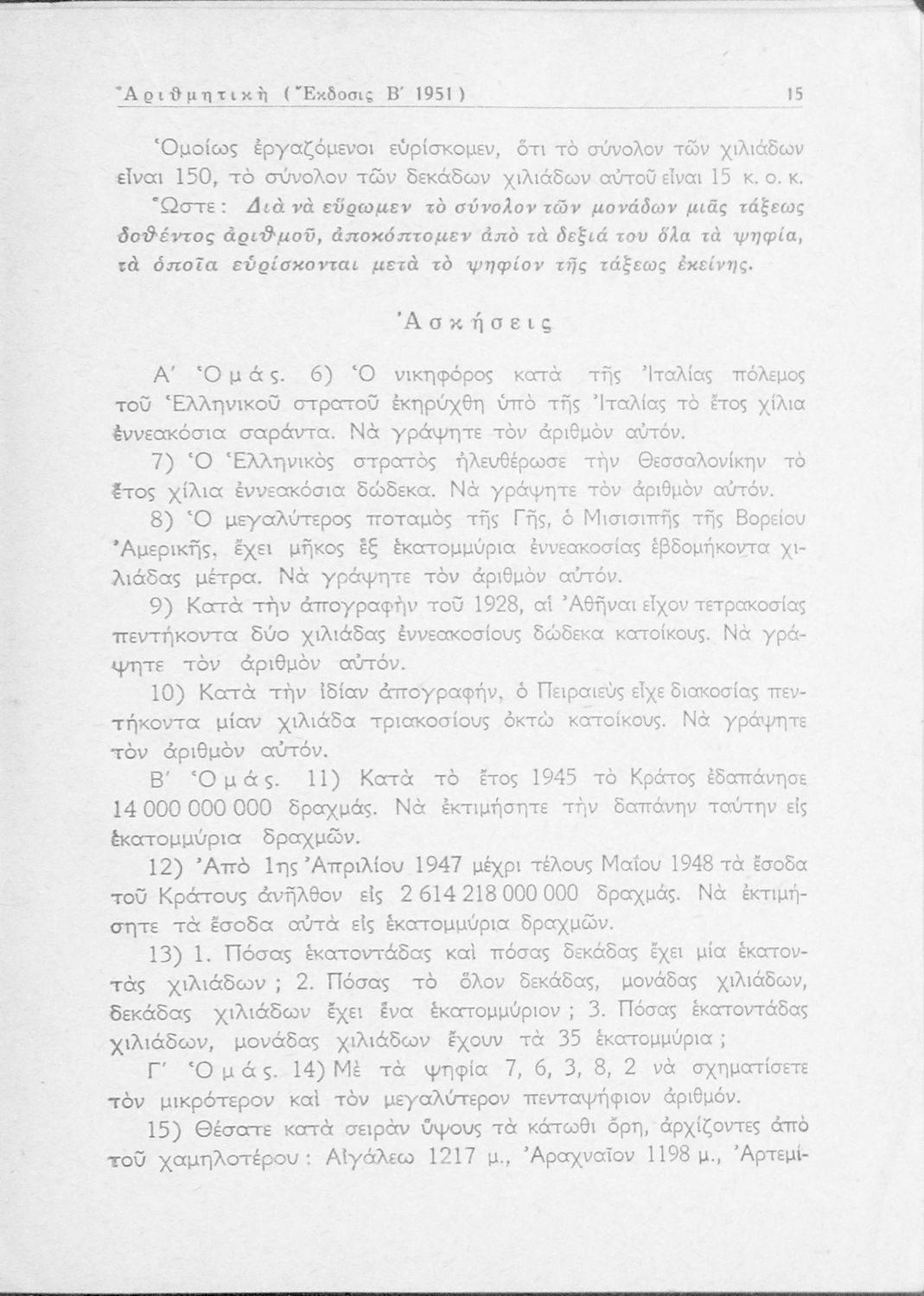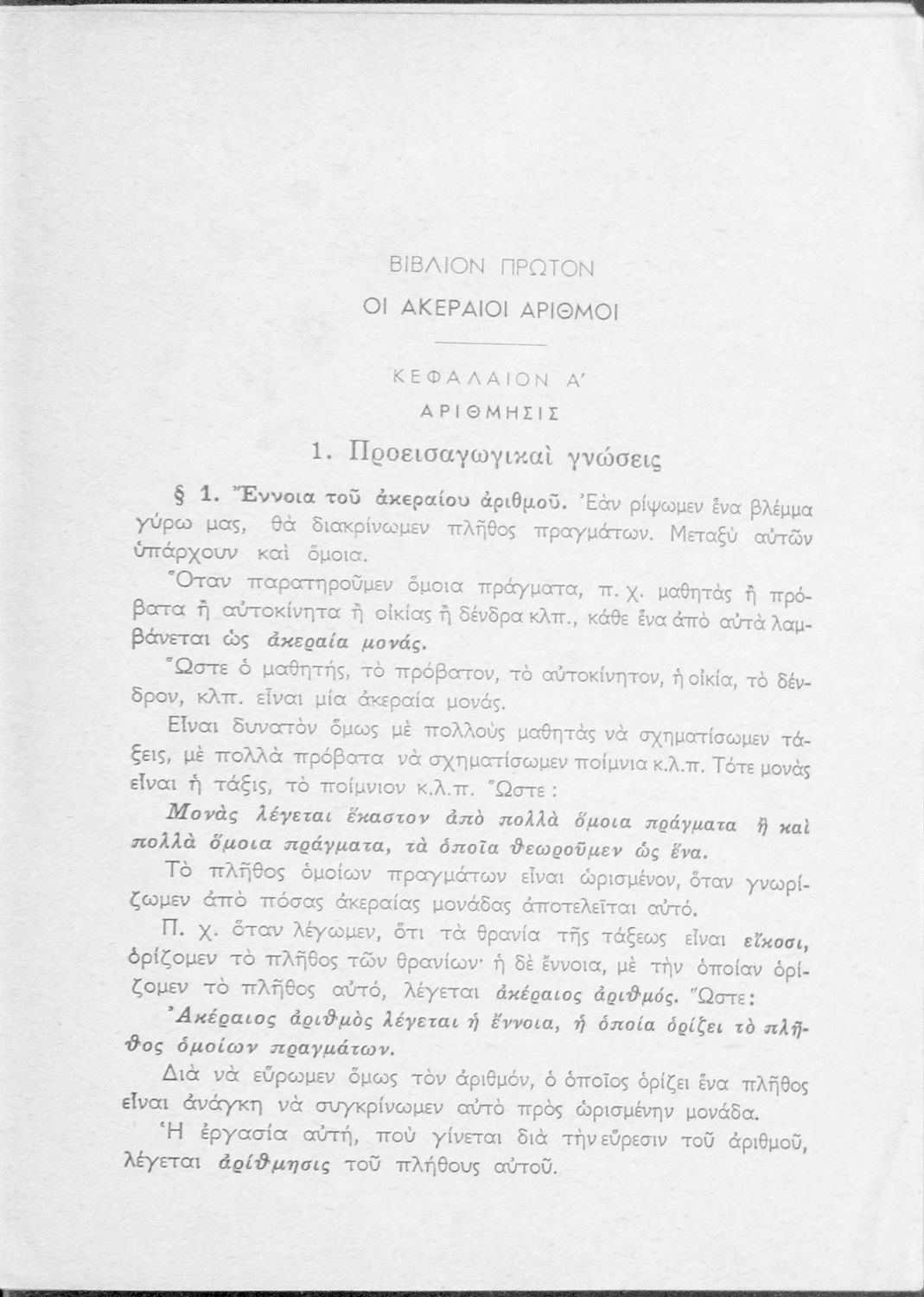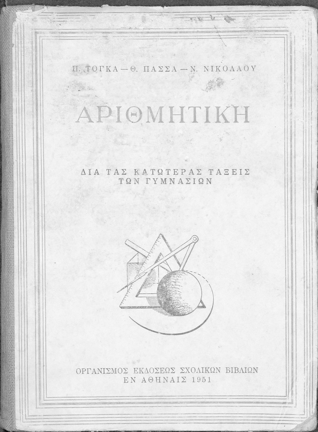 Σχολικό εγχειρίδιο Αριθμητικής Γυμνασίου που εστιάζει στις αριθμητικές πράξεις, τα κλάσματα και τις μεθόδους και είναι χωρισμένο σε θεωρία και ασκήσεις με έντονο επιχειρηματικό προσανατολισμό. Περιλαμβάνει στοιχεία Θεωρητικής Αριθμητικής.