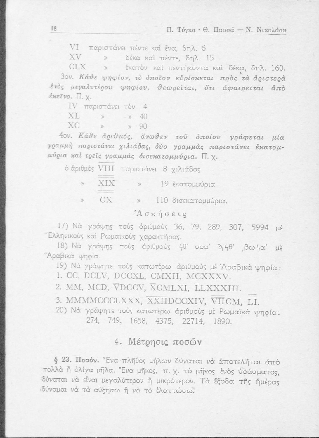 LDR 01243 2200205 4500 035 ## _a01-45264 040 ## _aΙνστιτούτο Εκπαιδευτικής Πολιτικής 041 ## _ael 100 ## _aΠ. Τόγκας _aΘ. Πασσάς _aΝ. Νικολάου 110 ## _a45264 245 0# _aΑριθμητική δια τας κατωτέρας τάξεις των Γυμνασίων 250 ## _a2η Έκδοση 260 ## _aΑθήνα _bΟργανισμός Εκδόσεως Σχολικών Βιβλίων _c1951 300 ## _a375 _c20 520 ## _aΣχολικό εγχειρίδιο Αριθμητικής Γυμνασίου που εστιάζει στις αριθμητικές πράξεις, τα κλάσματα και τις μεθόδους και είναι χωρισμένο σε θεωρία και ασκήσεις με έντονο επιχειρηματικό προσανατολισμό. Περιλαμβάνει στοιχεία Θεωρητικής Αριθμητικής. 521 ## _aΓυμνάσιο 522 ## _aΕλλάδα 546 ## _aΑπλή καθαρεύουσα 563 ## _aΣκληρό Εξώφυλλο 650 #4 _aΑριθμητικές πράξεις _aΚλάσματα _aΜέθοδοι _aΤόκος
