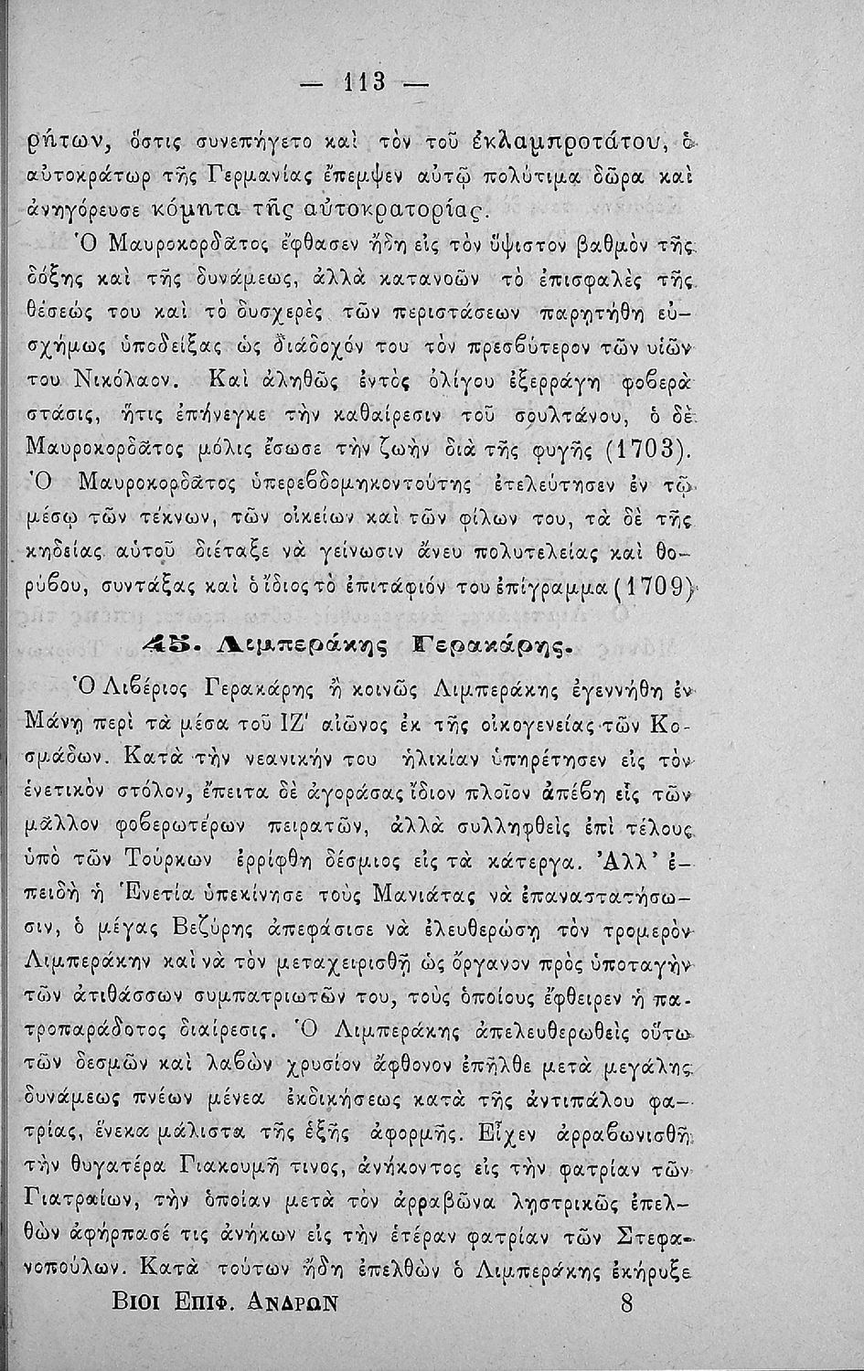 Τίτλος: Βίοι επιφανών ανδρών της Ρώμης, του Βυζαντίου και του δουλεύσαντος ελληνικού έθνους μετά πολλών εικόνων προς χρήσιν των μαθητών της Β΄ τάξεως των Ελληνικών Σχολείων.