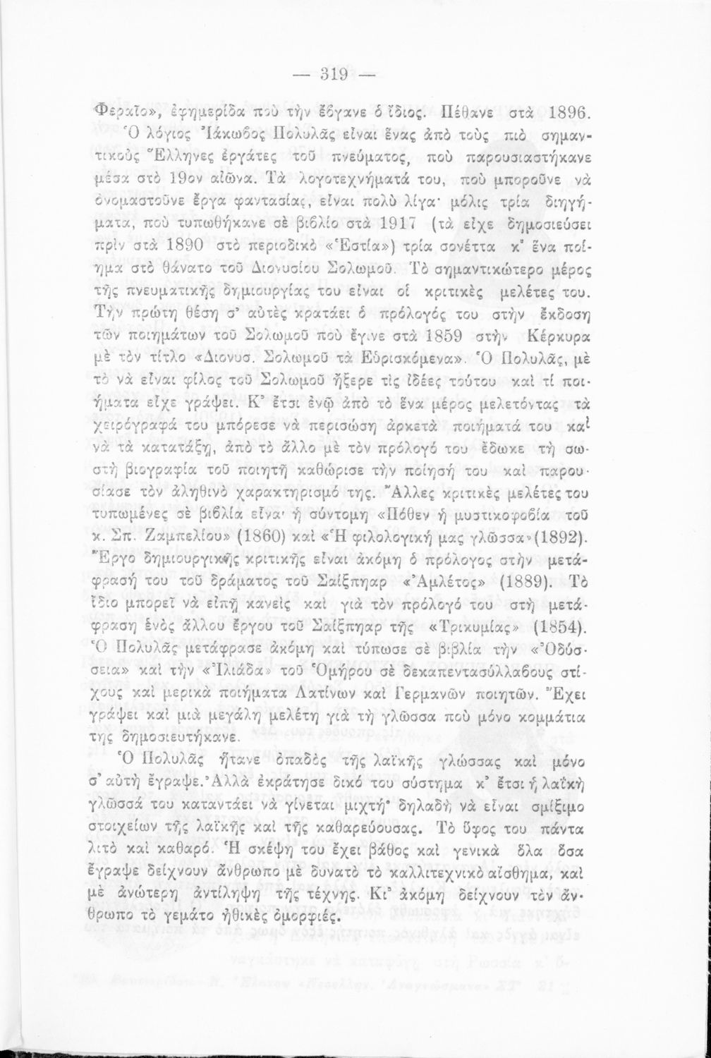 Σχετιζόμενοι όροι:  Παπαντωνίου, Πολέμης, Παλαμάς, Βηλαράς