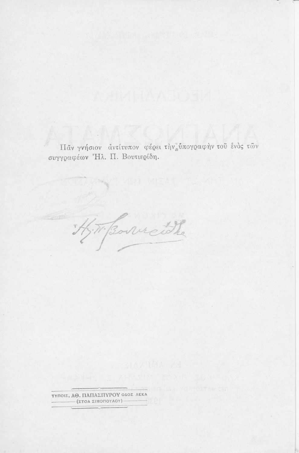Σχετιζόμενοι όροι:  Παπαντωνίου, Πολέμης, Παλαμάς, Βηλαράς