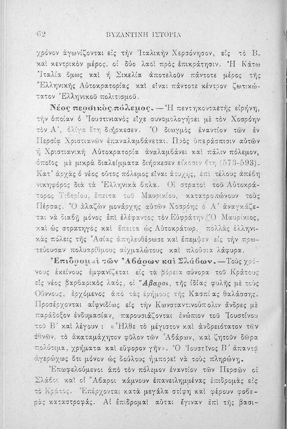 Σχολικό εγχειρίδιο Ιστορίας Γ΄ Γυμνασίου που καλύπτει την περίοδο της Βυζαντινής Αυτοκρατορίας και αποσκοπεί στην ανάδειξη του εθνικού εκπολιτιστικού έργου του Βυζάντιο και στην καλλιέργεια της εθνικής συνείδησης στις νεότερες γενιές. Ο συγγραφέας ήταν Καθηγητής Πανεπιστημίου.