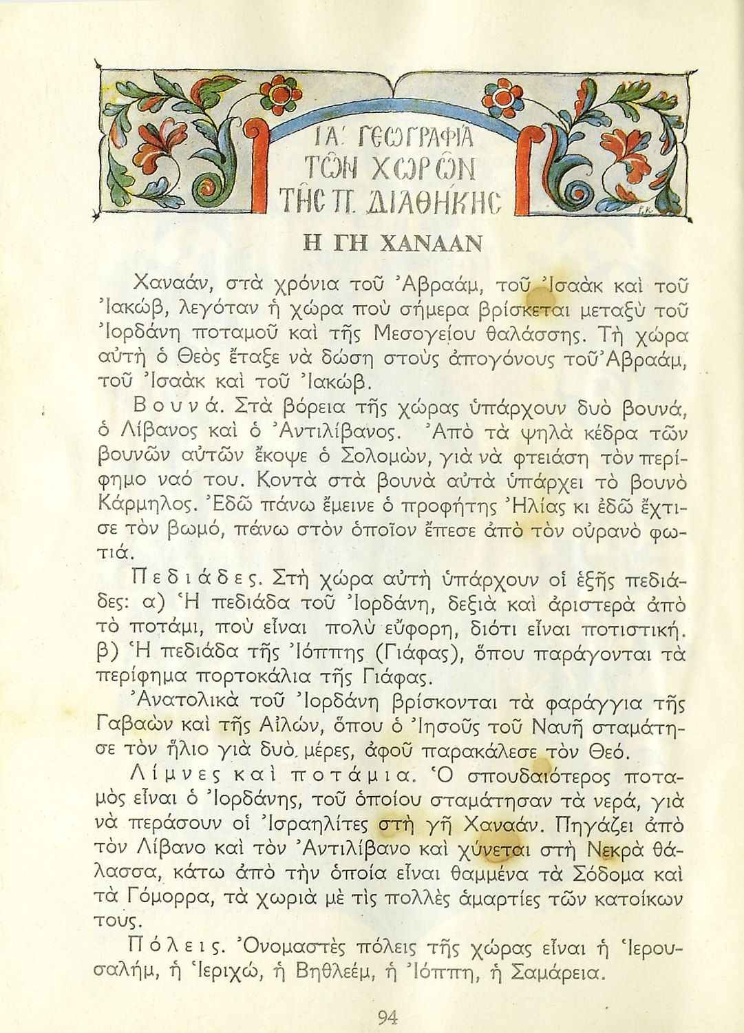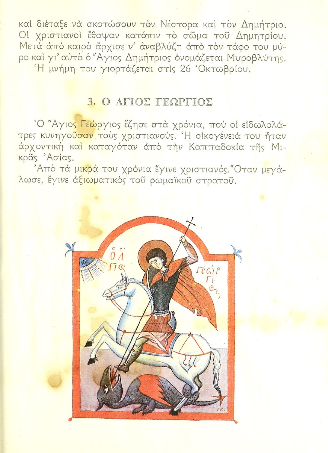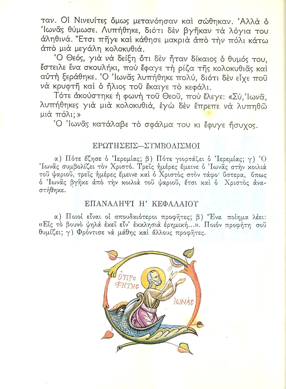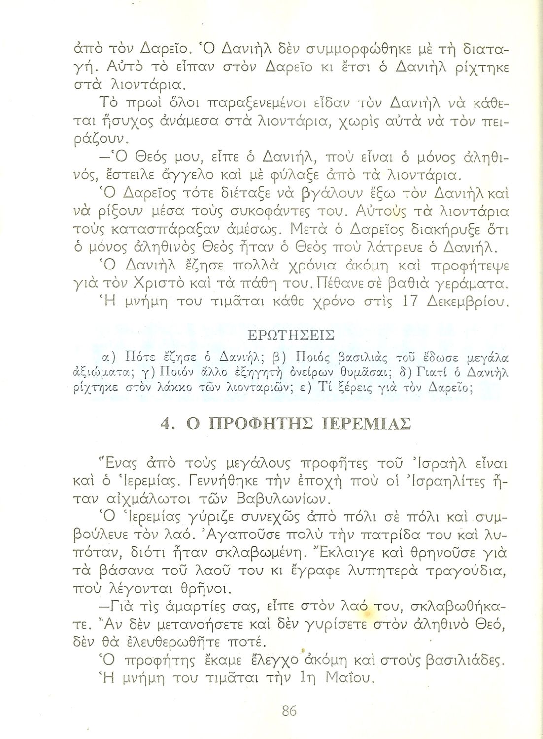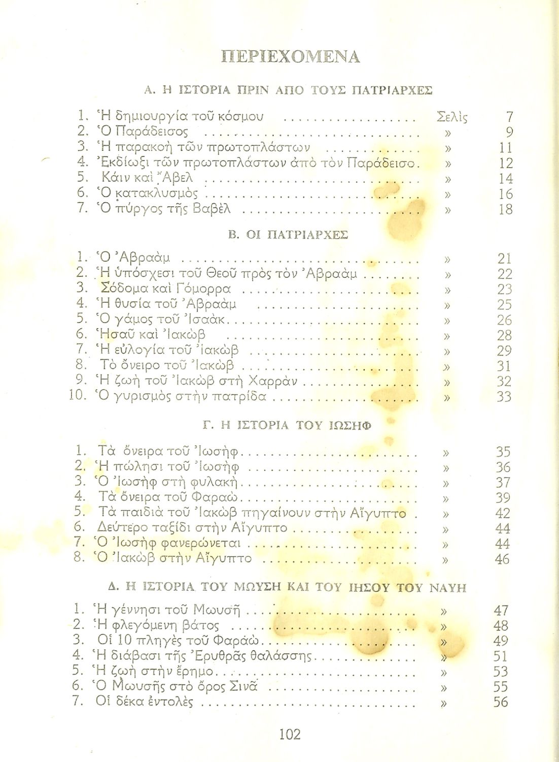 Σχολικό εγχειρίδιο Θρησκευτικών για τους μαθητές της Γ' Δημοτικού. Ενώ το βιβλίο αναφέρεται σε θέματα Παλαιάς Διαθήκης στο τέλος έχει γιορτές αγίων που έχουν σχέση με την ιστορία της Εκκλησίας.