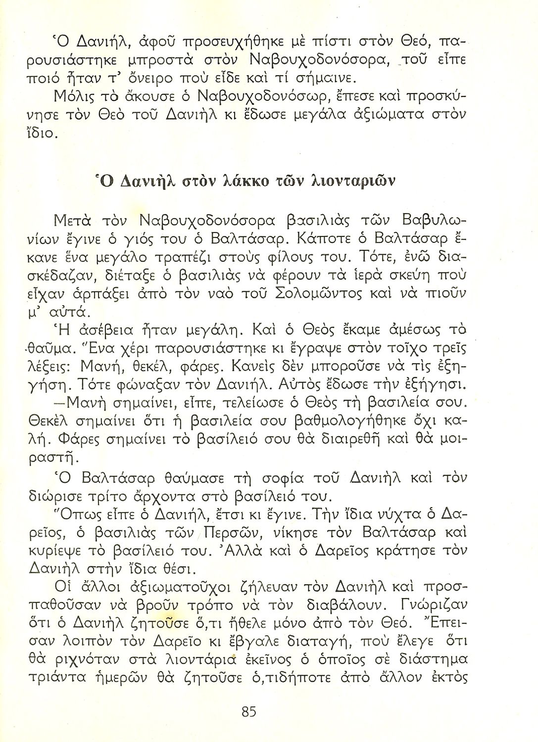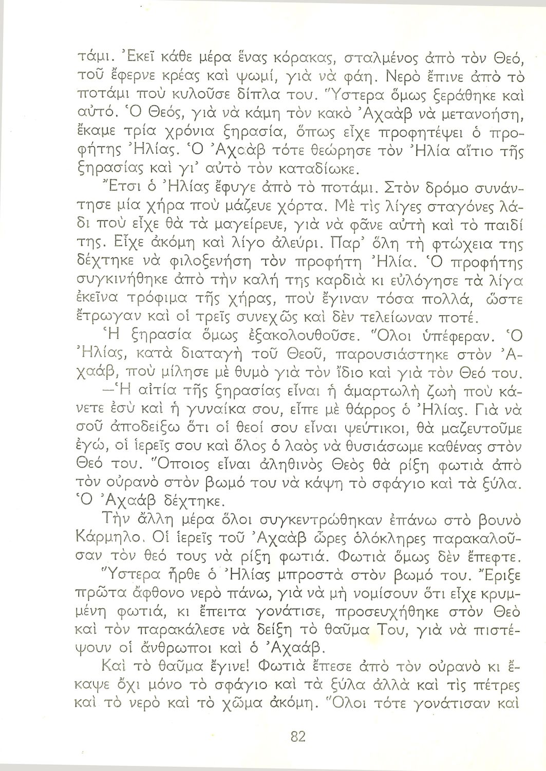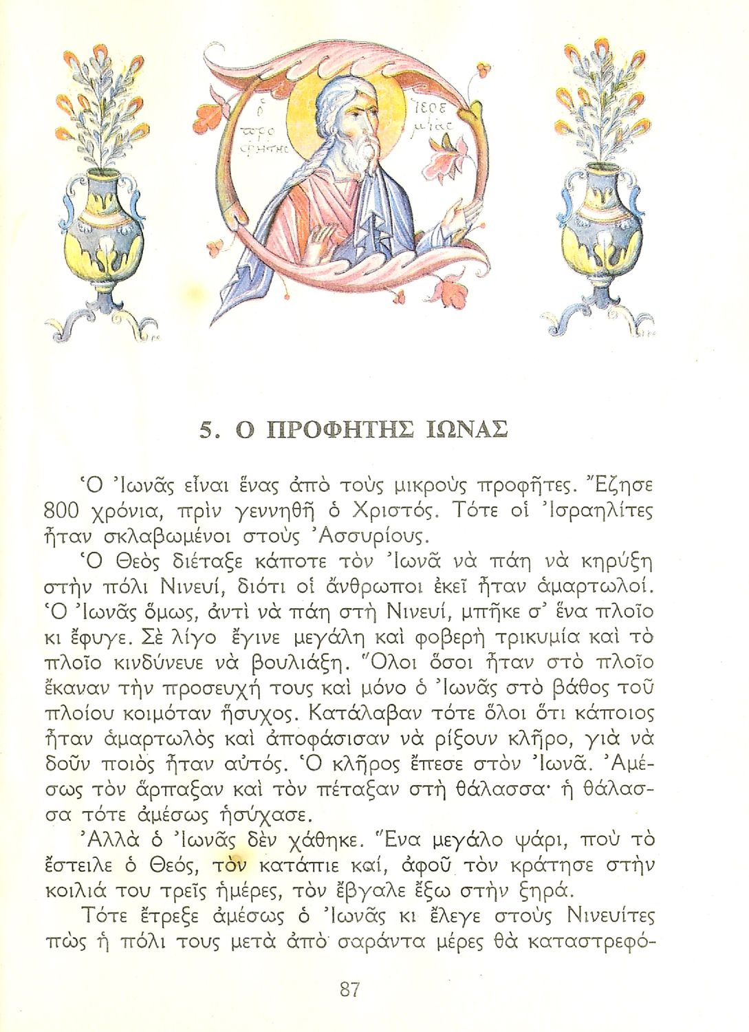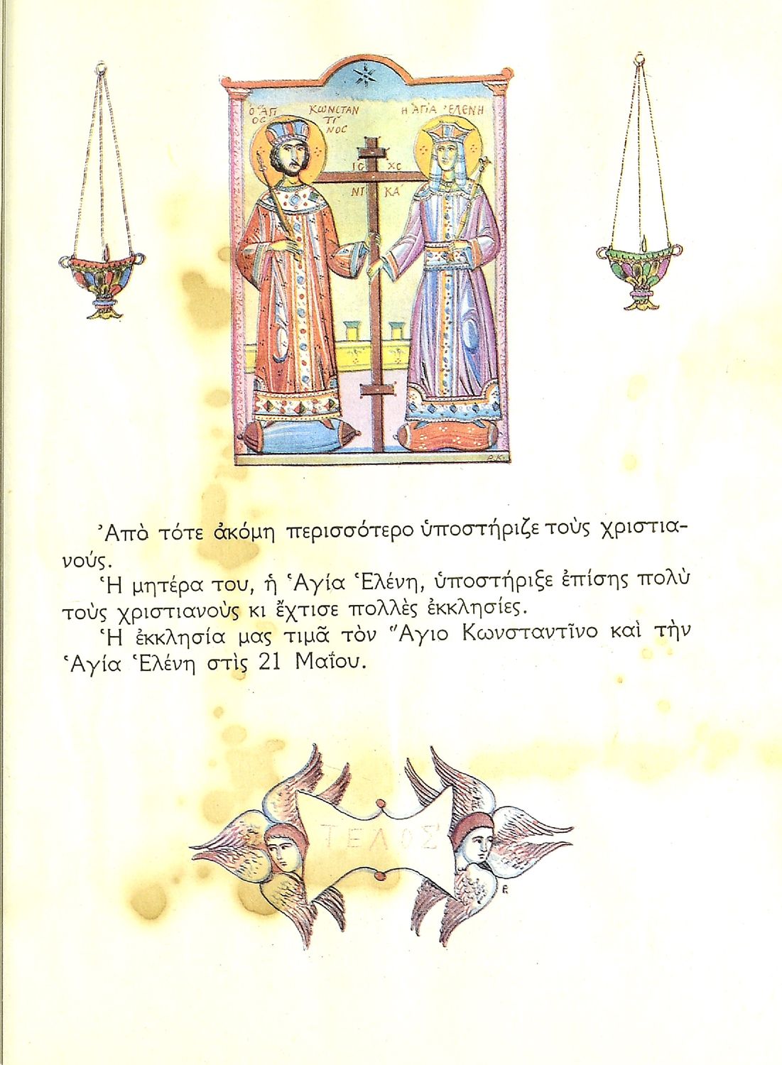 Σχολικό εγχειρίδιο Θρησκευτικών για τους μαθητές της Γ' Δημοτικού. Ενώ το βιβλίο αναφέρεται σε θέματα Παλαιάς Διαθήκης στο τέλος έχει γιορτές αγίων που έχουν σχέση με την ιστορία της Εκκλησίας.