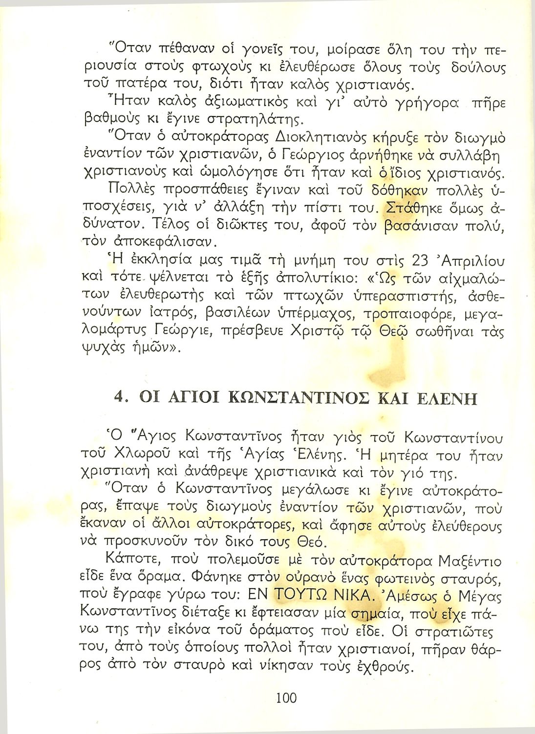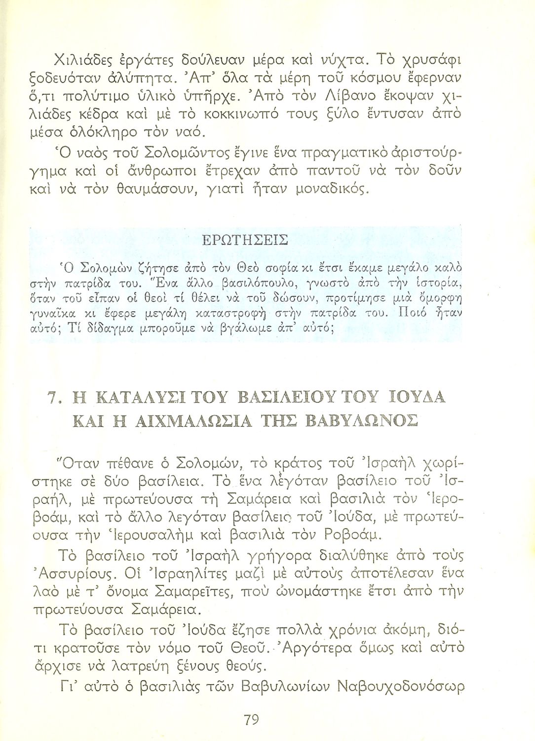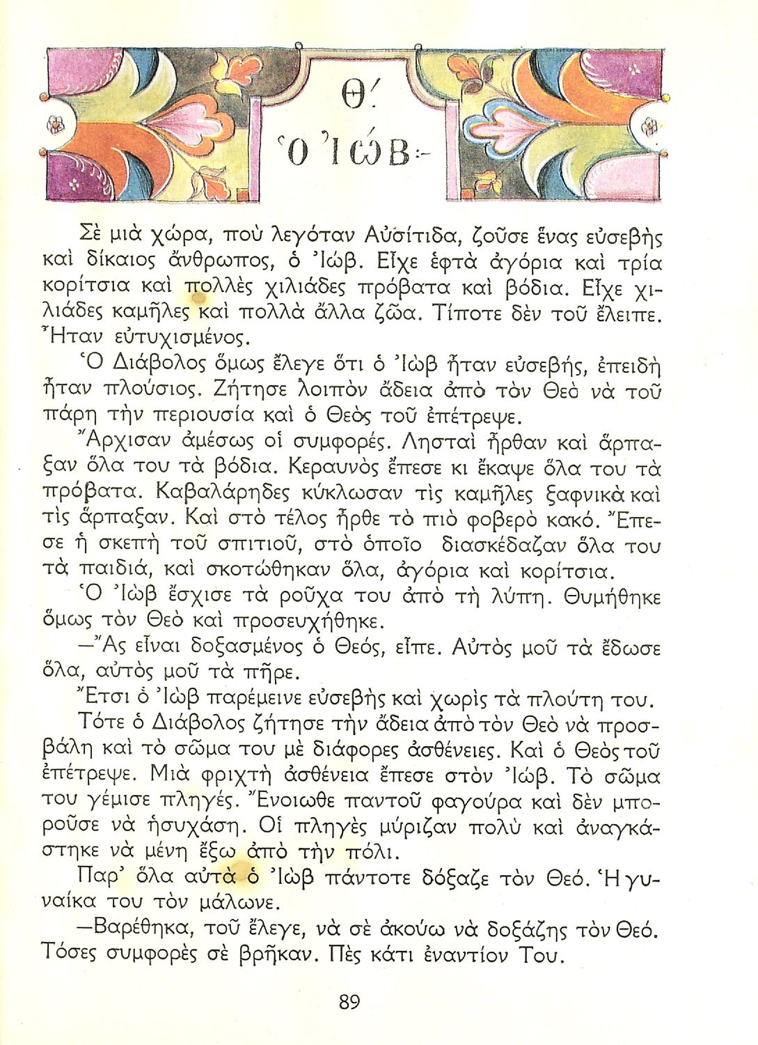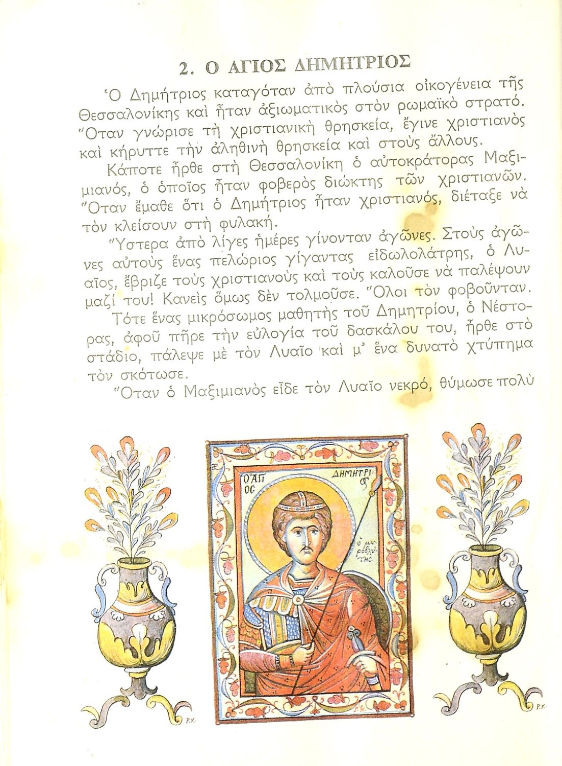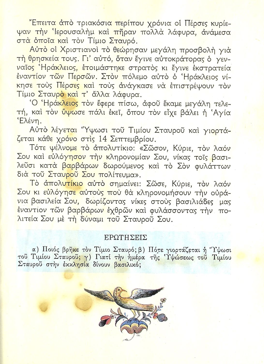 Σχολικό εγχειρίδιο Θρησκευτικών για τους μαθητές της Γ' Δημοτικού. Ενώ το βιβλίο αναφέρεται σε θέματα Παλαιάς Διαθήκης στο τέλος έχει γιορτές αγίων που έχουν σχέση με την ιστορία της Εκκλησίας.