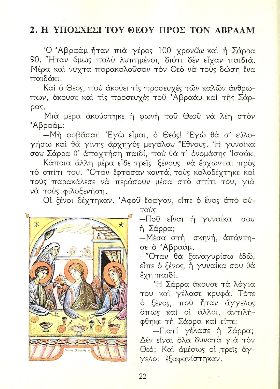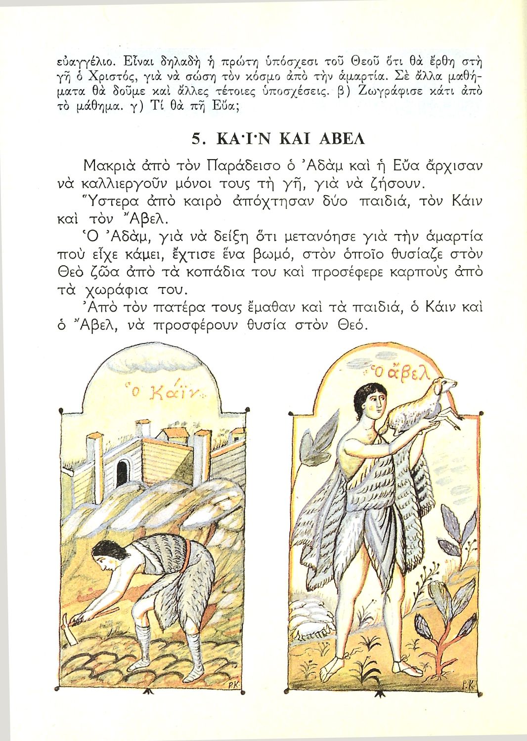 Σχολικό εγχειρίδιο Θρησκευτικών για τους μαθητές της Γ' Δημοτικού. Ενώ το βιβλίο αναφέρεται σε θέματα Παλαιάς Διαθήκης στο τέλος έχει γιορτές αγίων που έχουν σχέση με την ιστορία της Εκκλησίας.