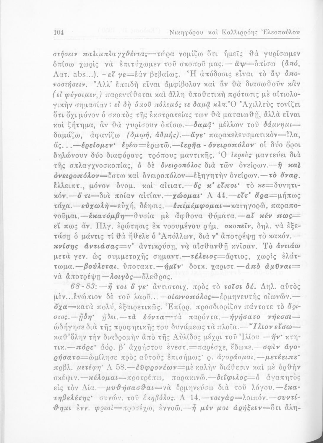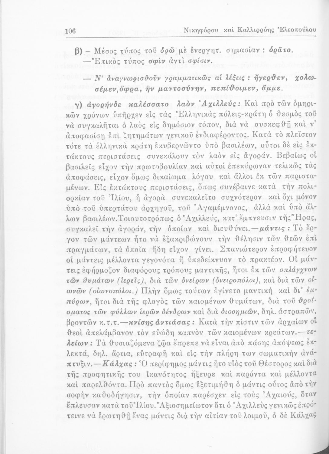 Όμηρος, Νικηφόρος Ξ. Ελεόπουλος, Καλλιρόη Ν. Ελεοπούλου (σχόλια)