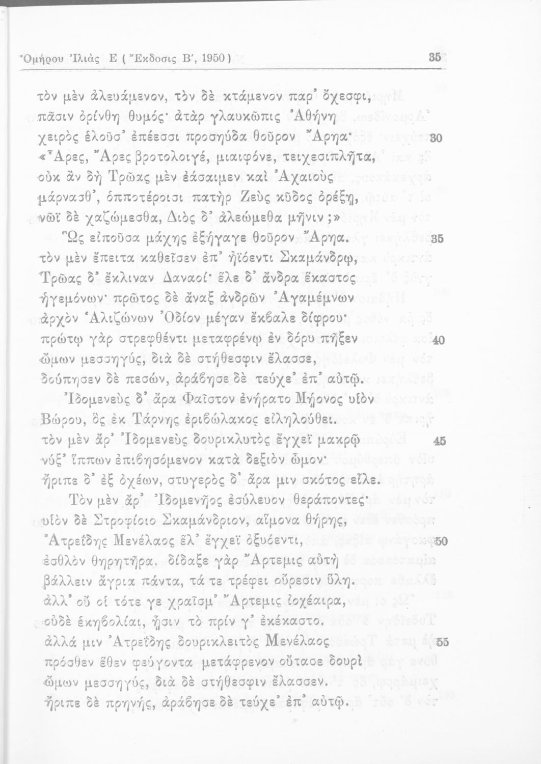 Σχολικό εγχειρίδιο Ε' Γυμνασίου για το μάθημα των Αρχαίων Ελληνικών. Περιλαμβάνει αποσπάσματα από ραψωδίες της Ιλιάδας, ερμηνευτικά και πραγματολογικά σχόλια και λεξιλογικές παρατηρήσεις.