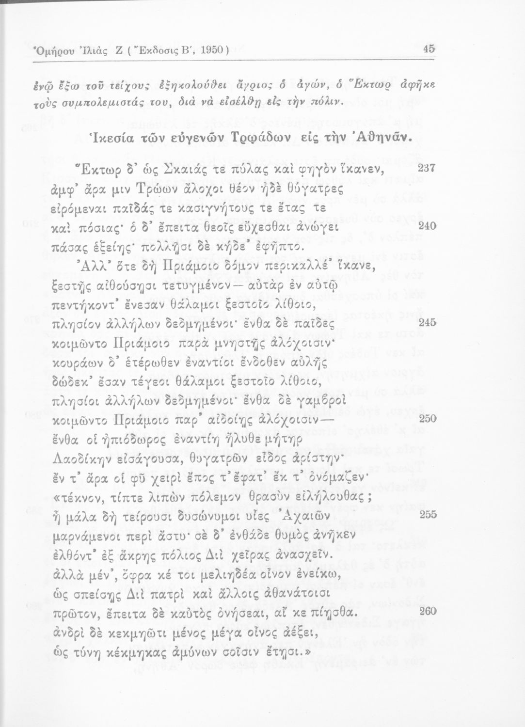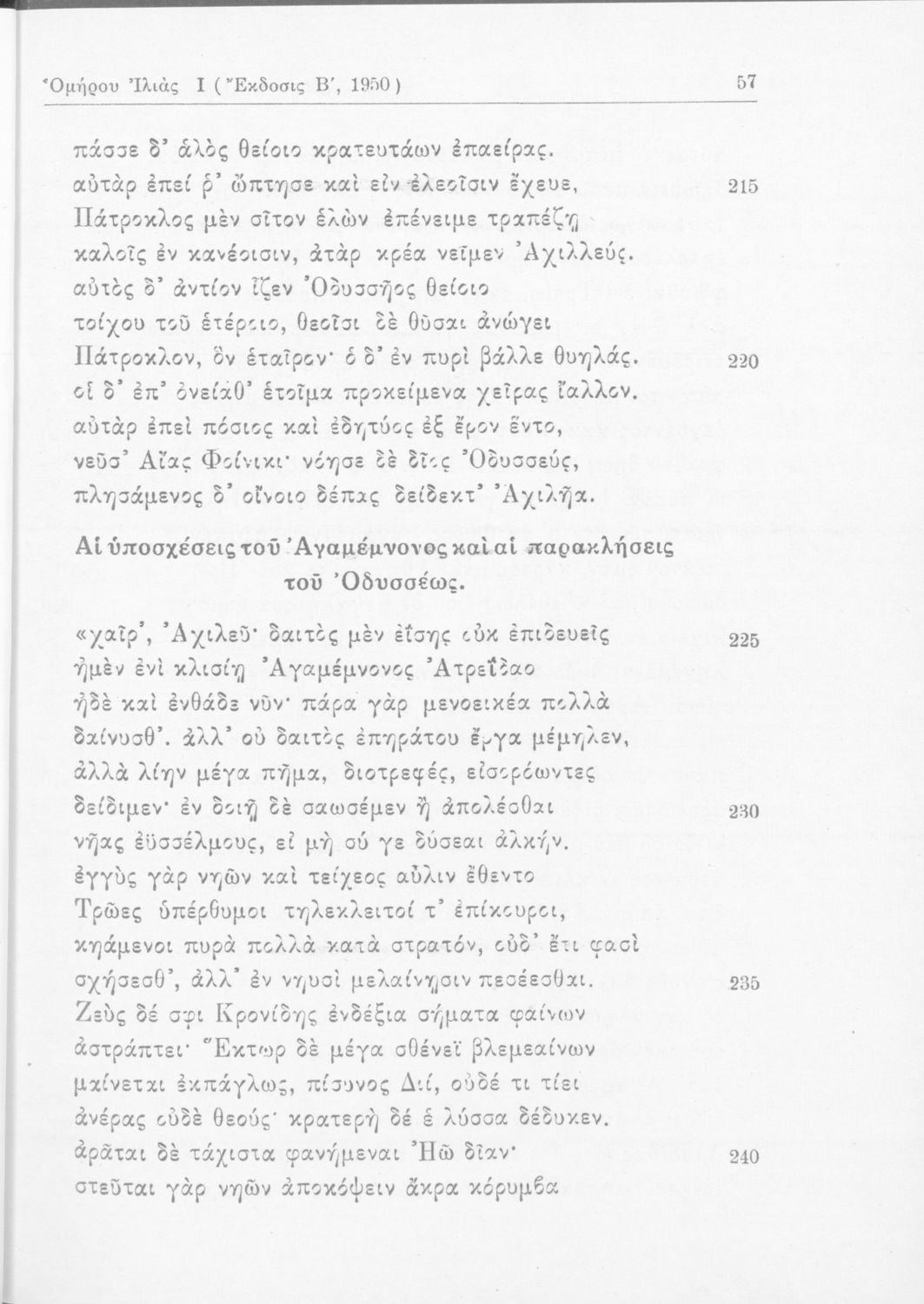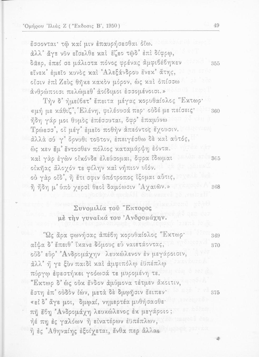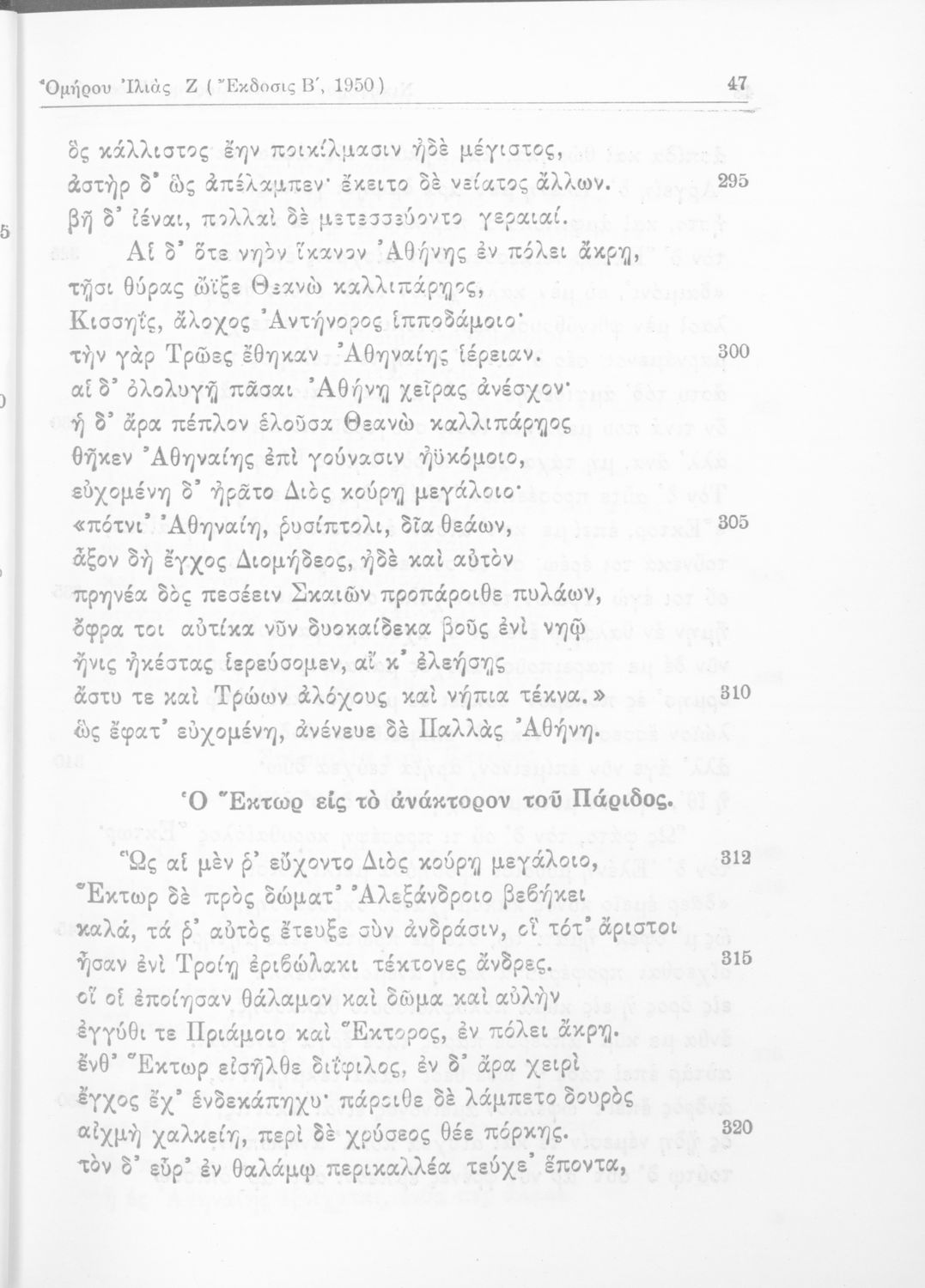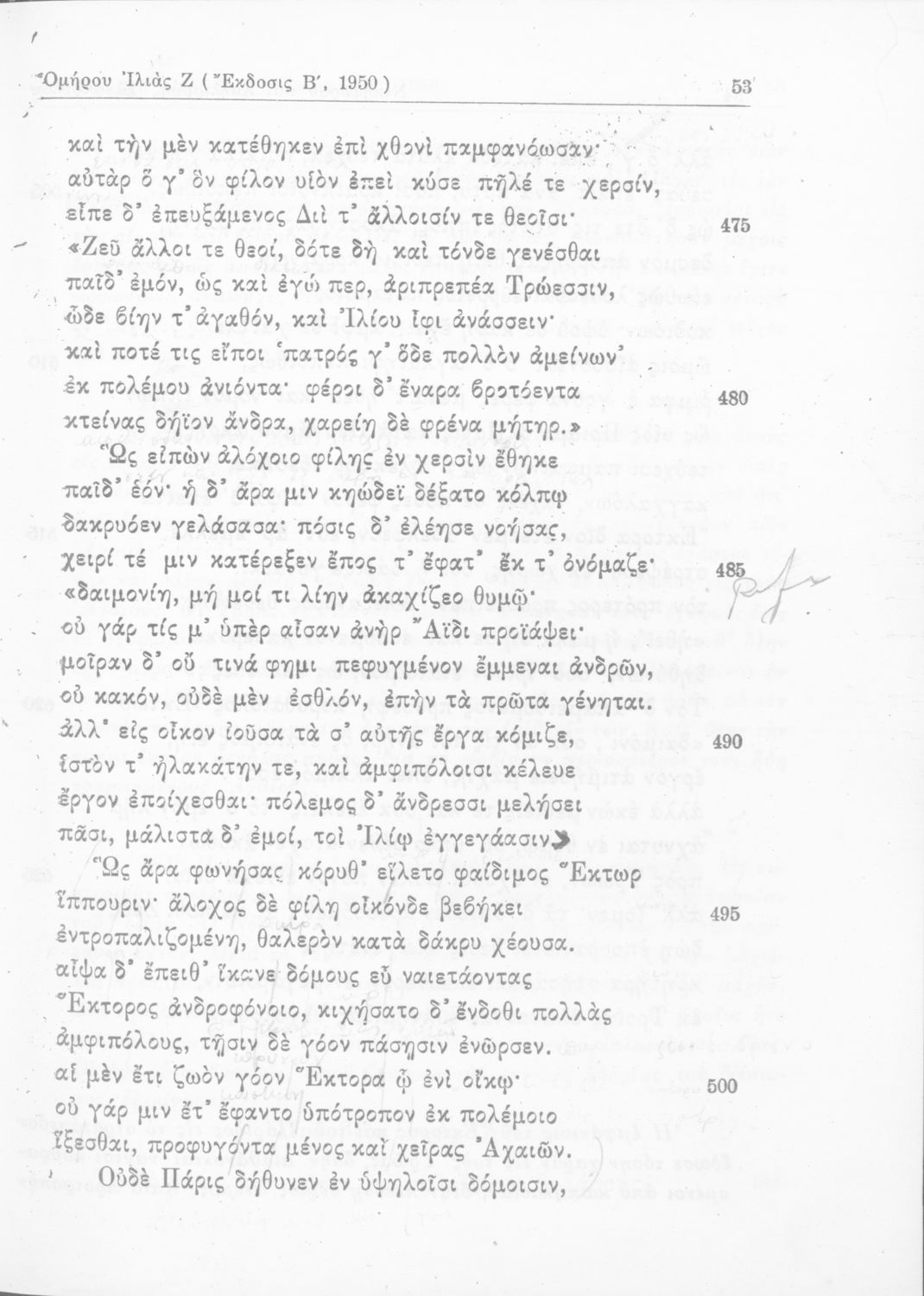 Σχολικό εγχειρίδιο της ΣΤ΄ Γυμνασίου για το μάθημα των Αρχαίων Ελληνικών. Περιέχει ραψωδίες της Ιλιάδας. Περιλαμβάνει το αρχαίο κείμενο, λεξιλογικές παρατηρήσεις, ερμηνευτικά, πραγματολογικά σχόλια και γραμματικές παρατηρήσεις του συγγραφέα. Ο συγγραφέας ήταν Καθηγητής στο Κολέγιο Αθηνών. Η συγγραφέας ήταν Καθηγήτρια Φιλόλογος.