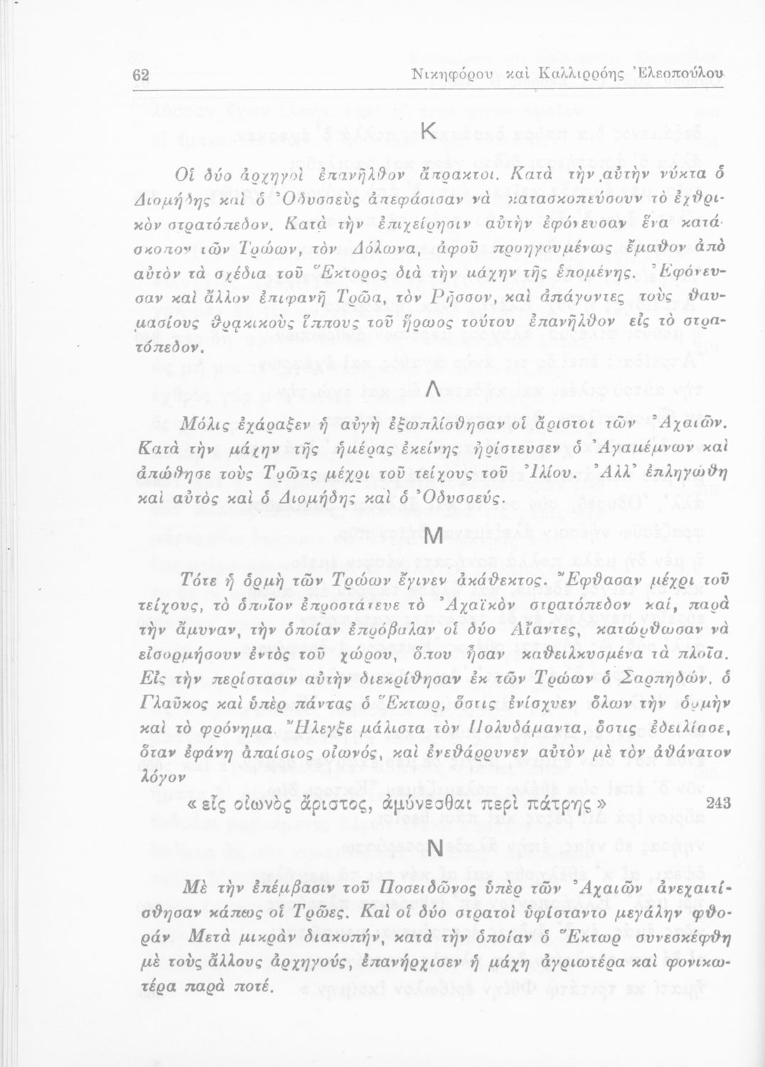 Όμηρος, Νικηφόρος, Καλλιρόη Ελεοπούλου