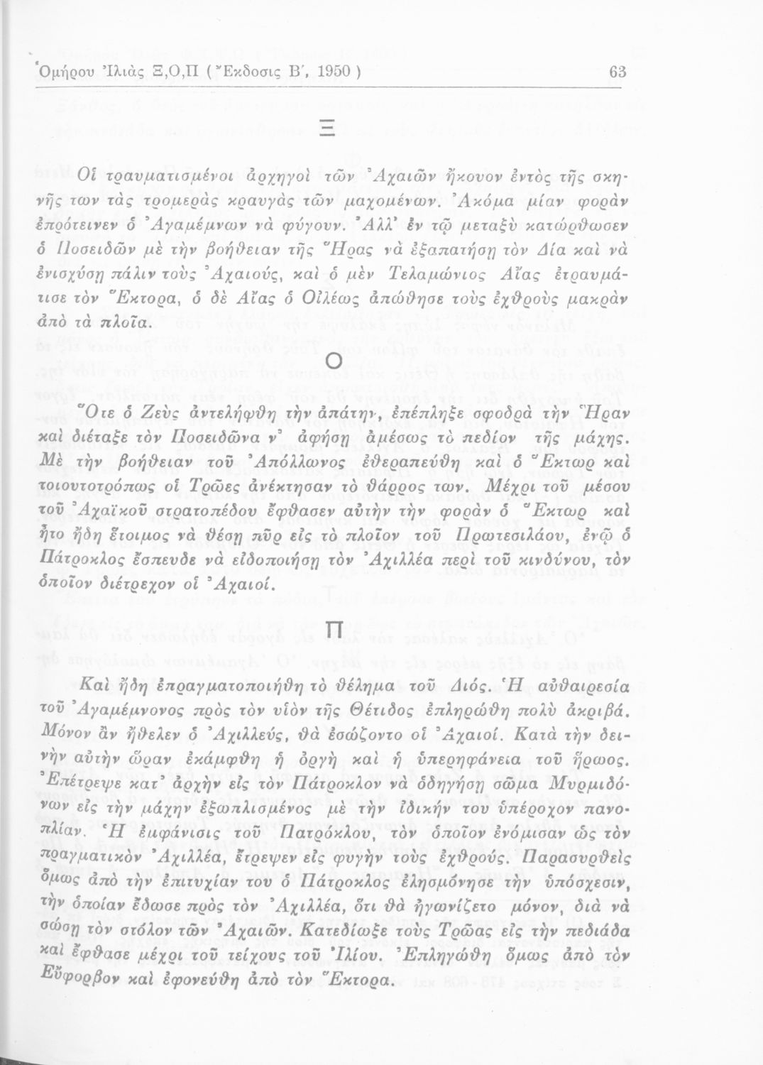 Σχολικό εγχειρίδιο της ΣΤ΄ Γυμνασίου για το μάθημα των Αρχαίων Ελληνικών. Περιέχει ραψωδίες της Ιλιάδας. Περιλαμβάνει το αρχαίο κείμενο, λεξιλογικές παρατηρήσεις, ερμηνευτικά, πραγματολογικά σχόλια και γραμματικές παρατηρήσεις του συγγραφέα. Ο συγγραφέας ήταν Καθηγητής στο Κολέγιο Αθηνών. Η συγγραφέας ήταν Καθηγήτρια Φιλόλογος.