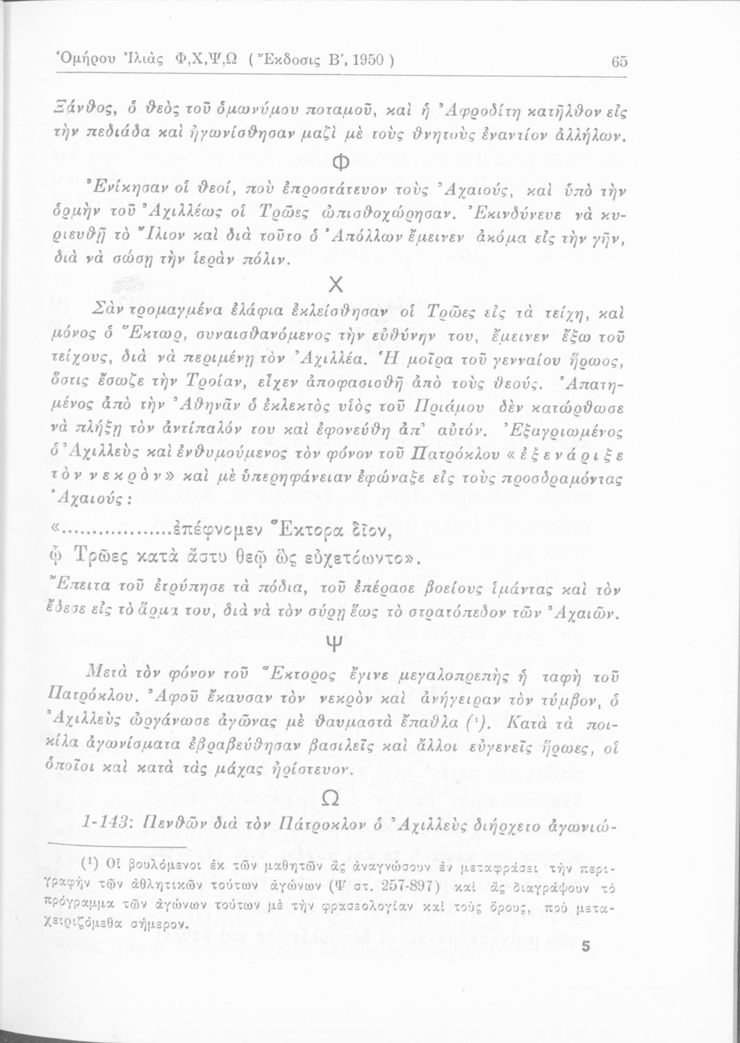 Σχολικό εγχειρίδιο Ε' Γυμνασίου για το μάθημα των Αρχαίων Ελληνικών. Περιλαμβάνει αποσπάσματα από ραψωδίες της Ιλιάδας, ερμηνευτικά και πραγματολογικά σχόλια και λεξιλογικές παρατηρήσεις.