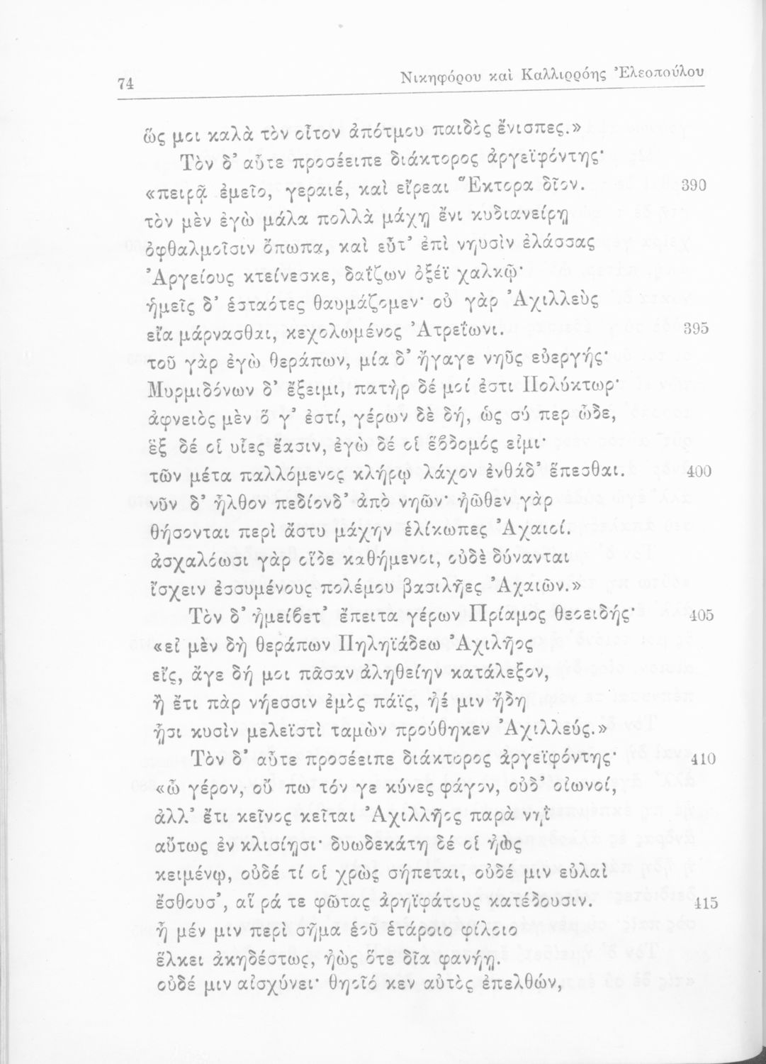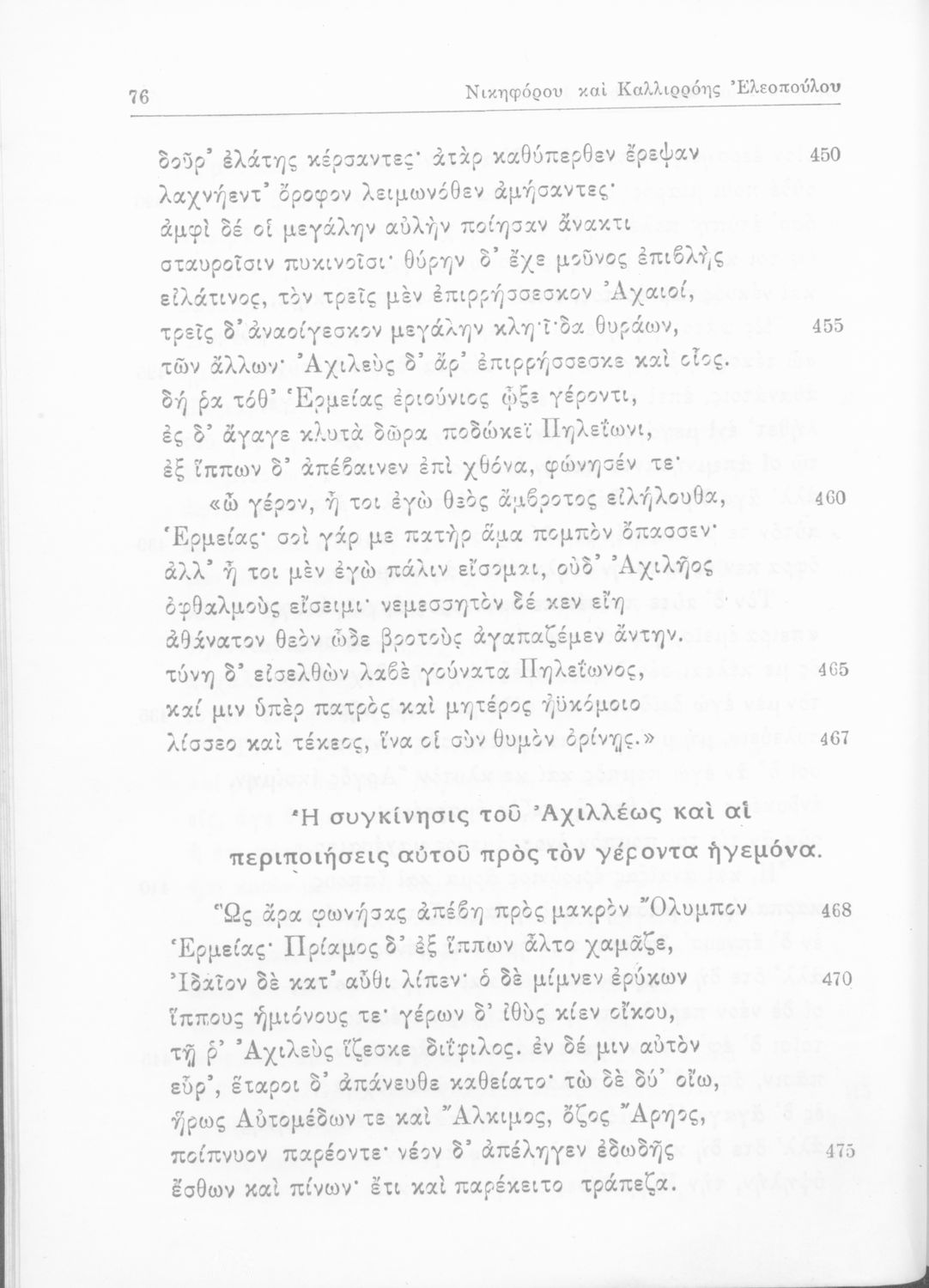 Όμηρος, Νικηφόρος Ξ. Ελεόπουλος, Καλλιρόη Ν. Ελεοπούλου (σχόλια)