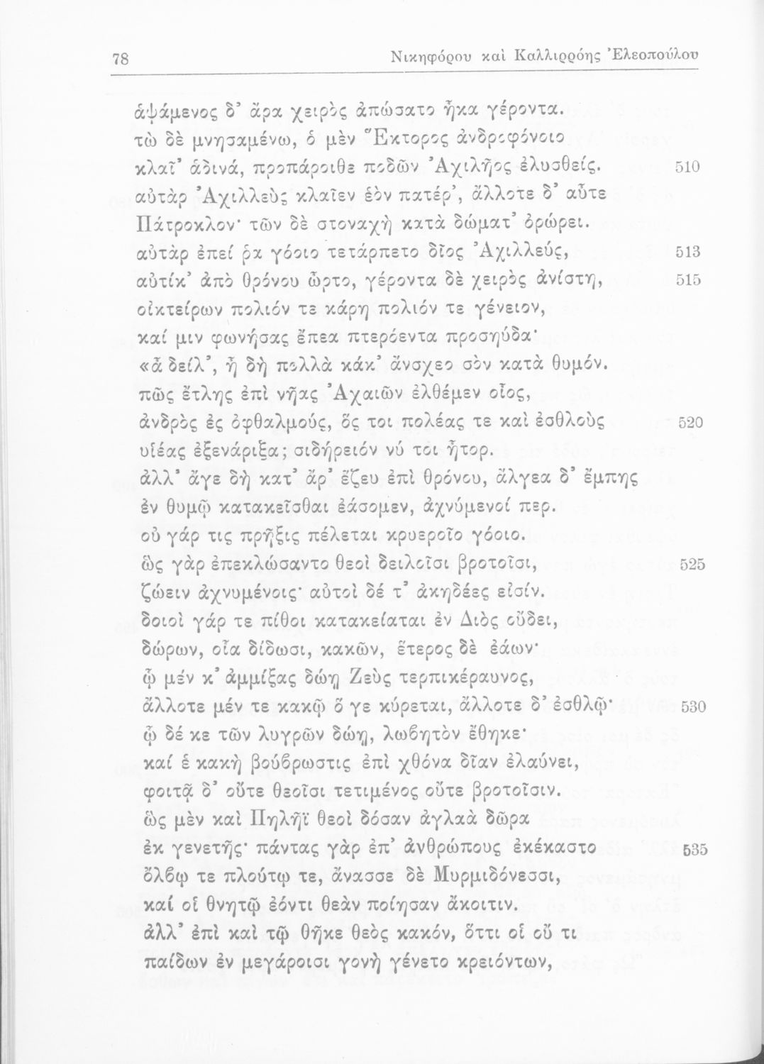 Όμηρος, Νικηφόρος Έλεόπουλος, Καλλιρόη Ελεοπούλου (σχόλια)