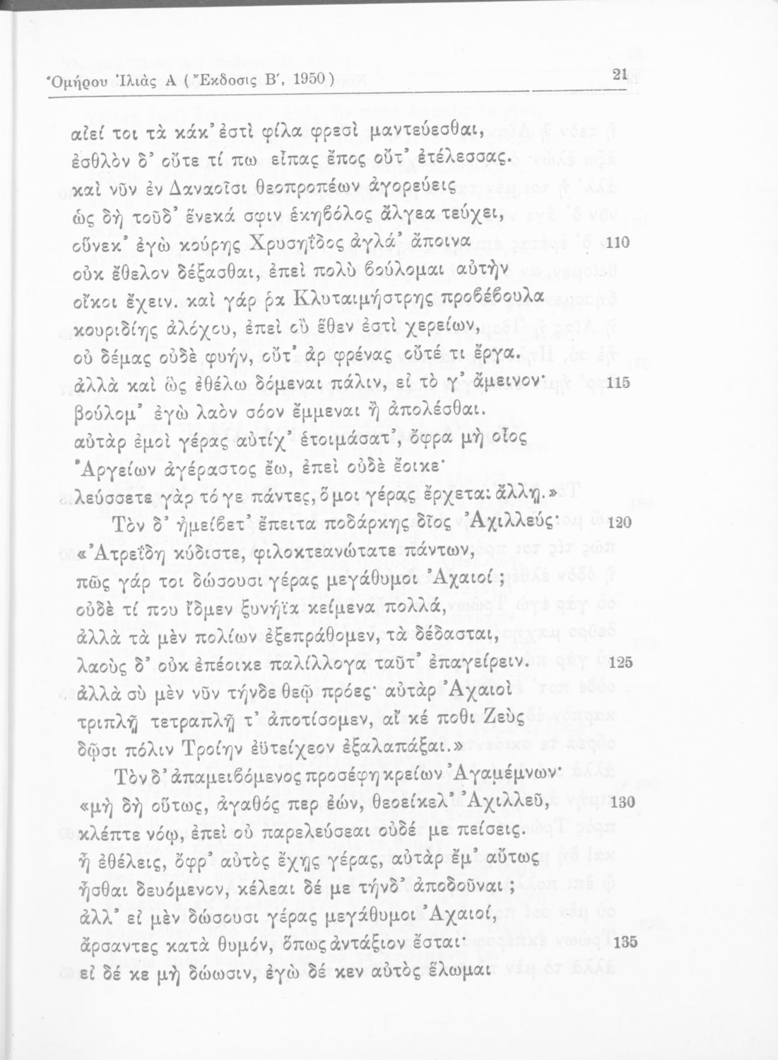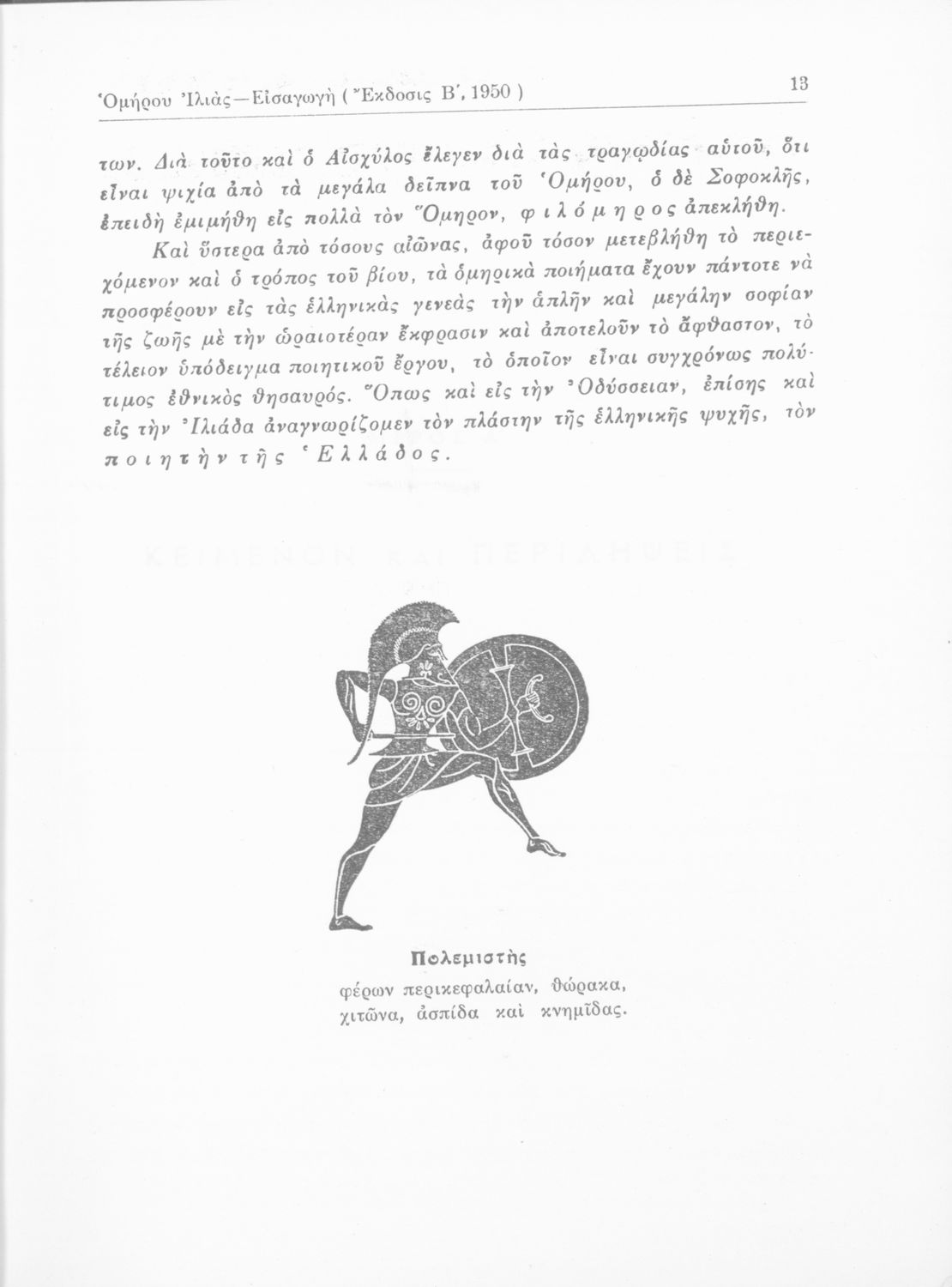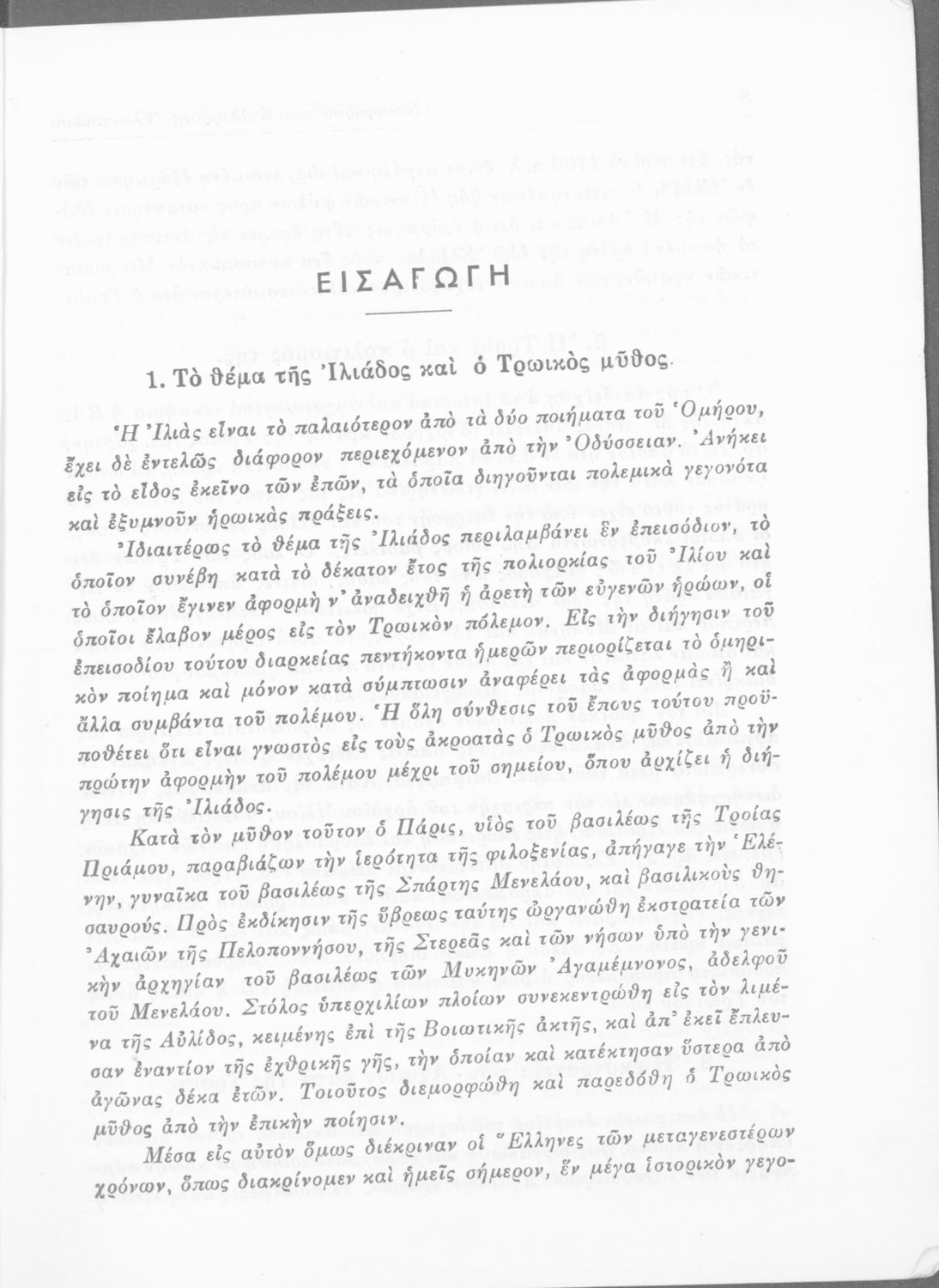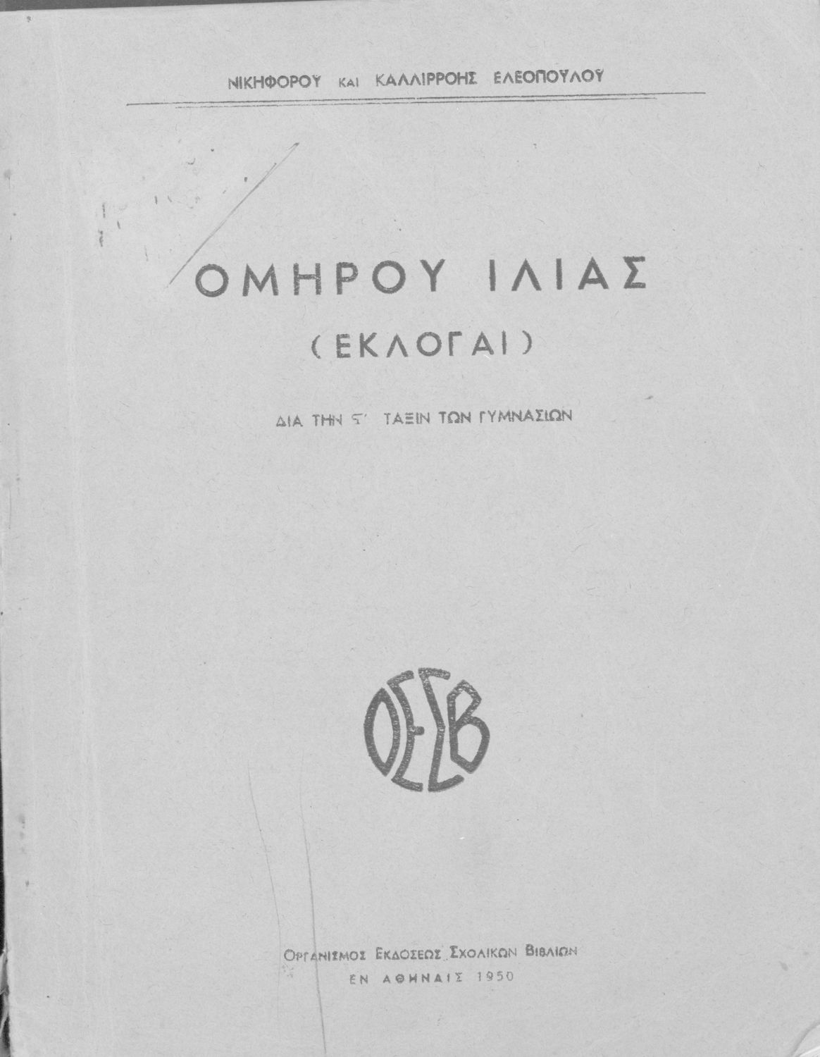 Σχολικό εγχειρίδιο της ΣΤ΄ Γυμνασίου για το μάθημα των Αρχαίων Ελληνικών. Περιέχει ραψωδίες της Ιλιάδας. Περιλαμβάνει το αρχαίο κείμενο, λεξιλογικές παρατηρήσεις, ερμηνευτικά, πραγματολογικά σχόλια και γραμματικές παρατηρήσεις του συγγραφέα. Ο συγγραφέας ήταν Καθηγητής στο Κολέγιο Αθηνών. Η συγγραφέας ήταν Καθηγήτρια Φιλόλογος.