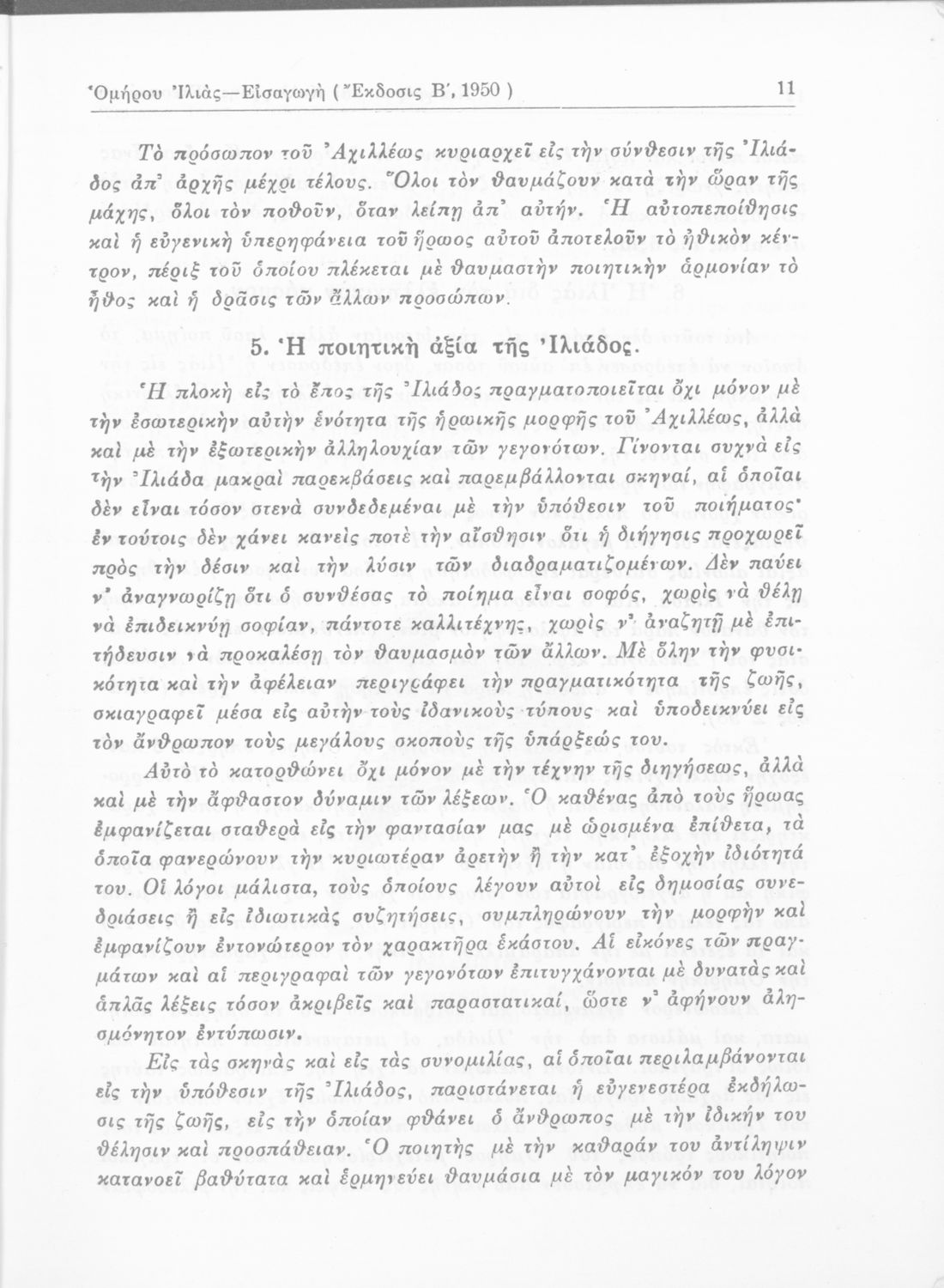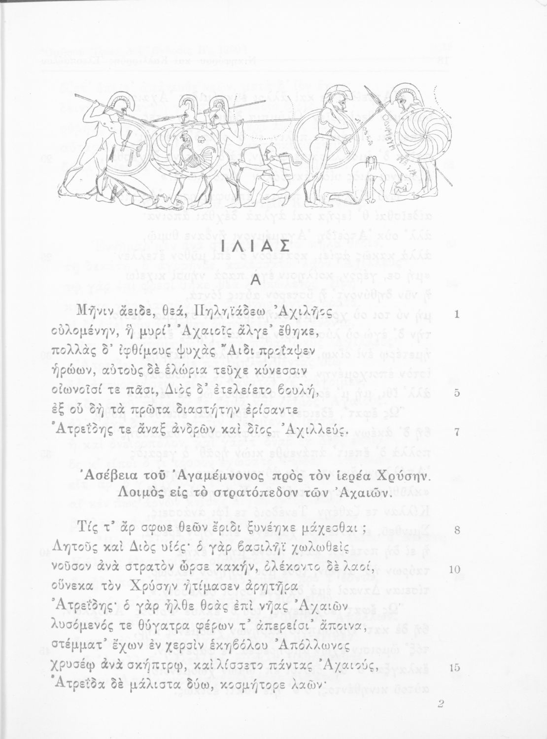 Σχολικό εγχειρίδιο Ε' Γυμνασίου για το μάθημα των Αρχαίων Ελληνικών. Περιλαμβάνει αποσπάσματα από ραψωδίες της Ιλιάδας, ερμηνευτικά και πραγματολογικά σχόλια και λεξιλογικές παρατηρήσεις.