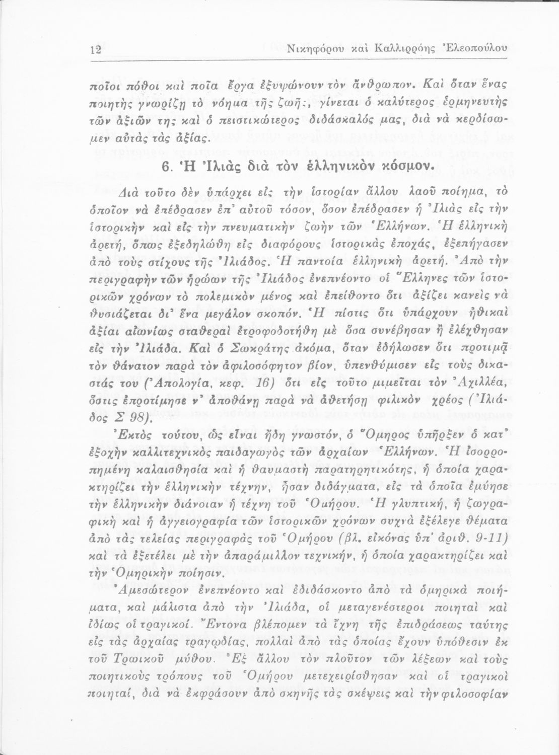 Όμηρος, Νικηφόρος Έλεόπουλος, Καλλιρόη Ελεοπούλου (σχόλια)