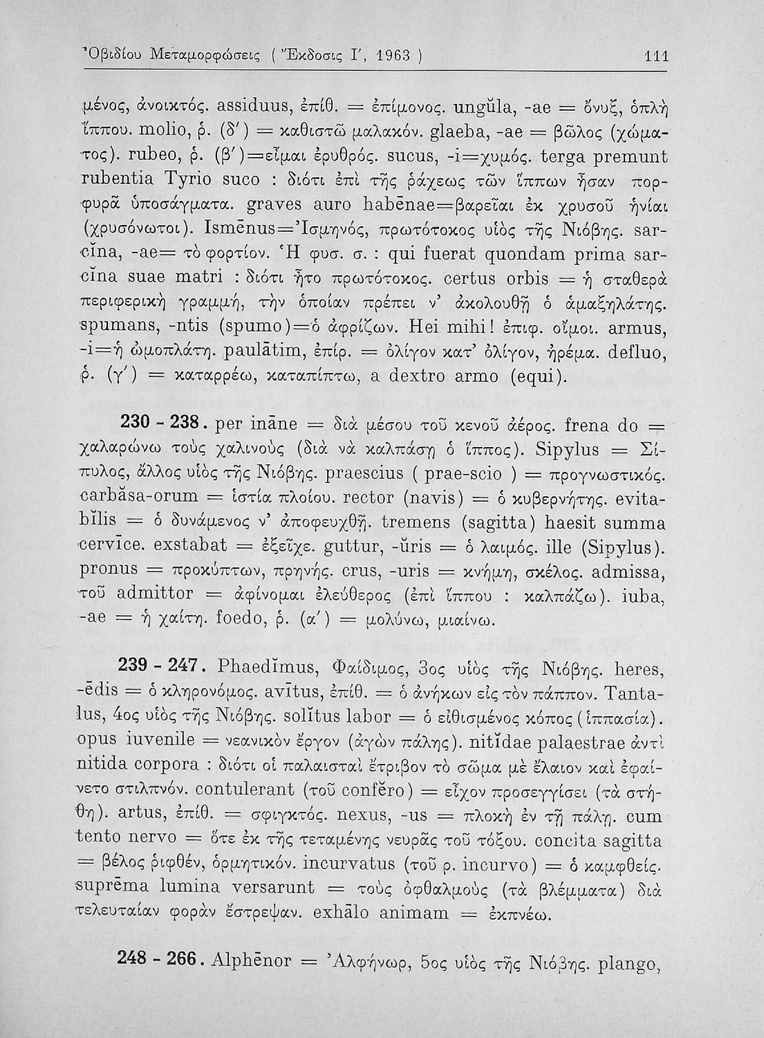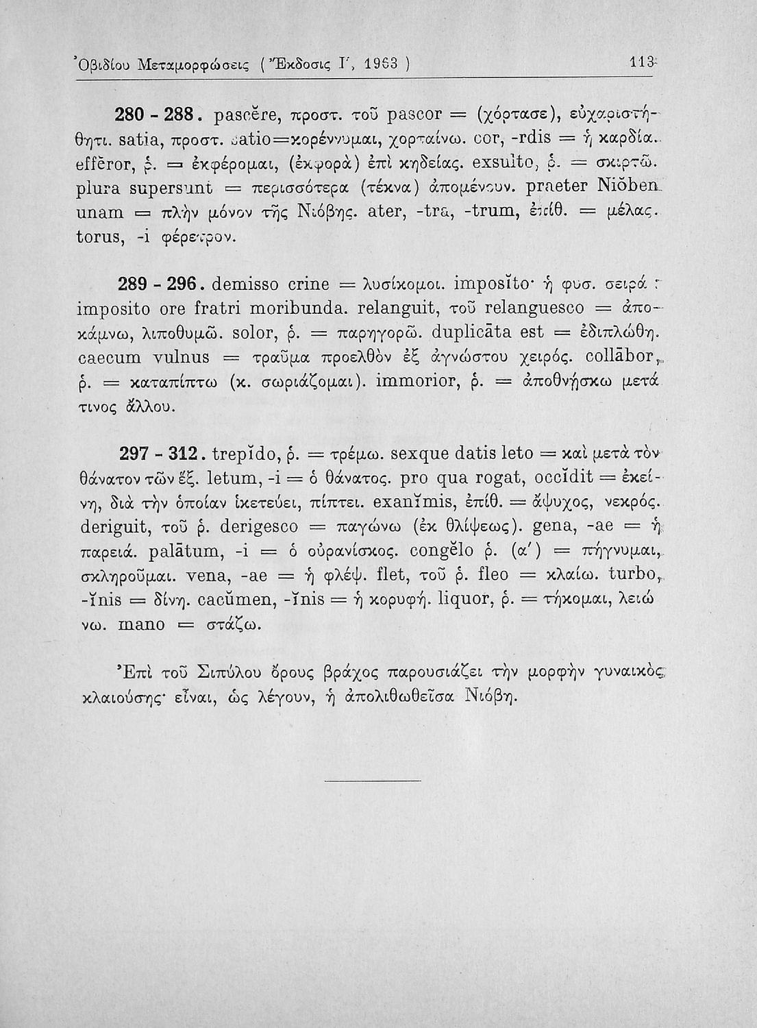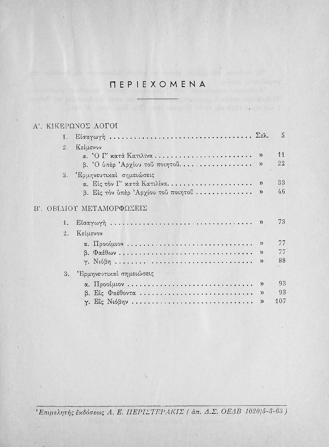 Σχολικό εγχειρίδιο Λατινικών για την Ε΄ Γυμνασίου παλαιού τύπου και την ΣΤ΄ Γυμνασίου νέου τύπου ου περιέχει βιογραφικό σημείωμα των Κικέρωνα και Οβίδιου, εισαγωγικά σχόλια, κείμενο και ερμηνευτικές σημειώσεις.