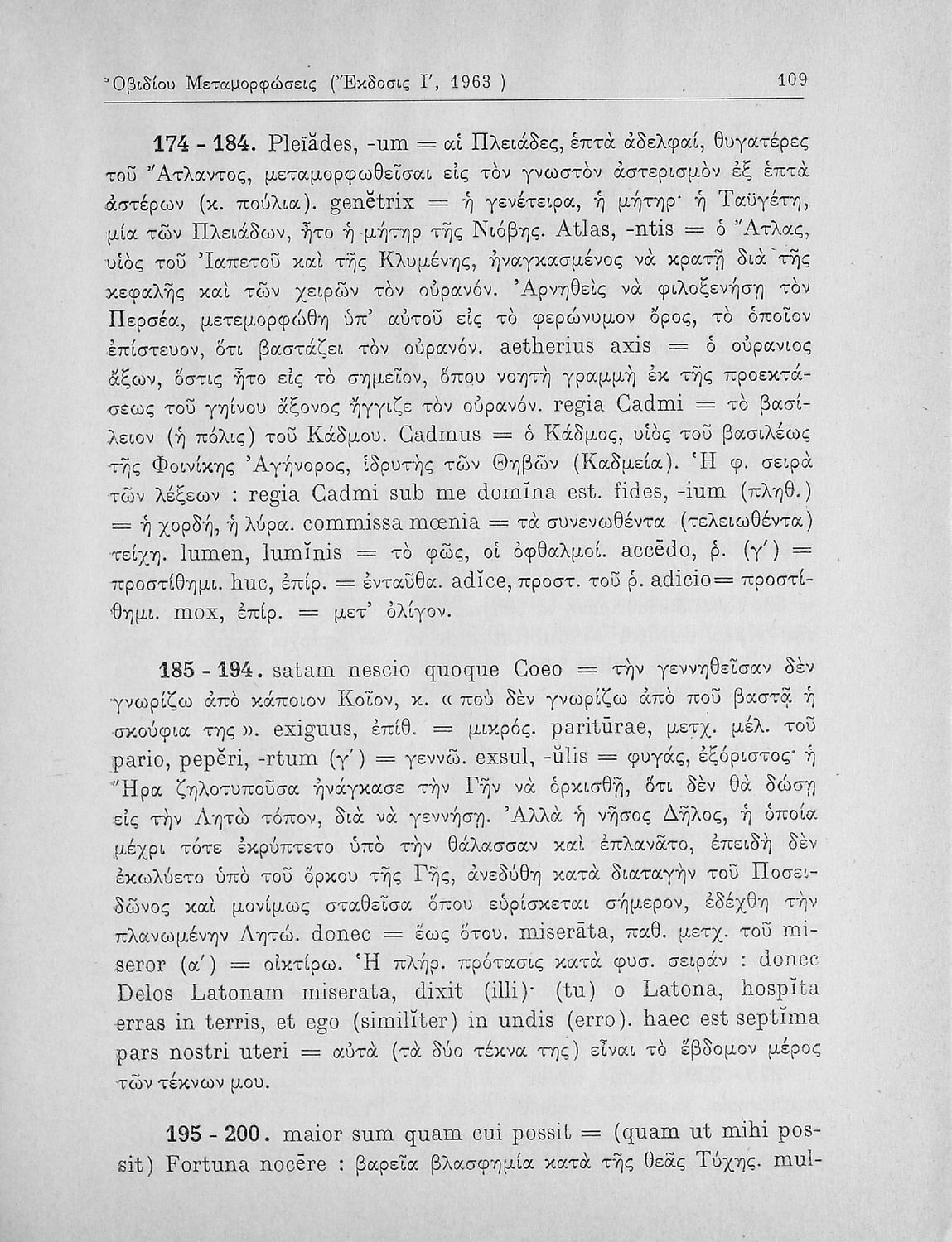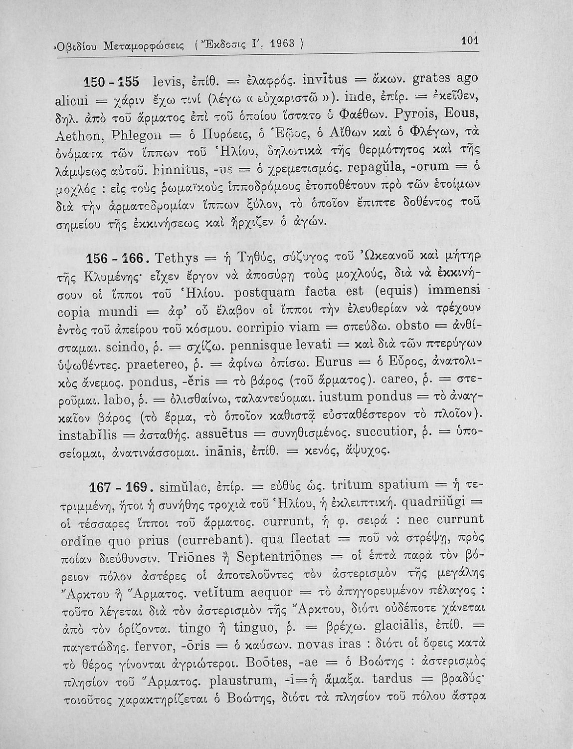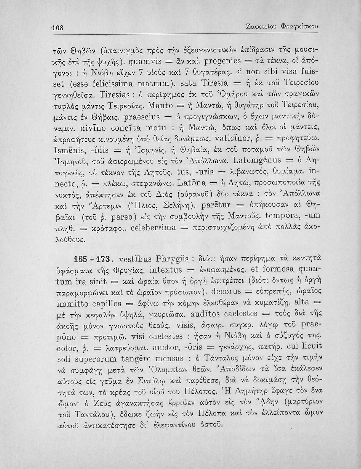 Σχολικό εγχειρίδιο Λατινικών για την Ε΄ Γυμνασίου παλαιού τύπου και την ΣΤ΄ Γυμνασίου νέου τύπου ου περιέχει βιογραφικό σημείωμα των Κικέρωνα και Οβίδιου, εισαγωγικά σχόλια, κείμενο και ερμηνευτικές σημειώσεις.
