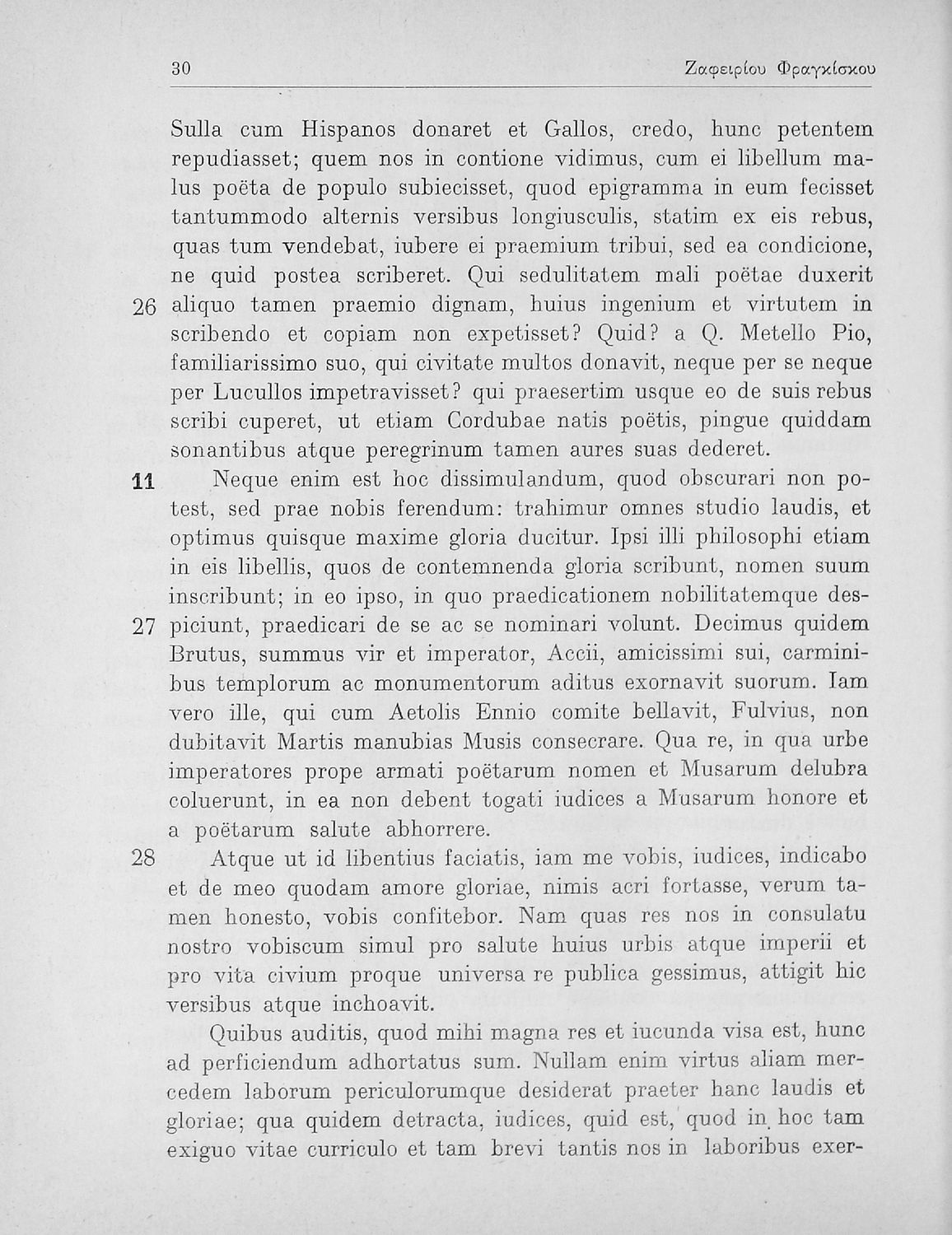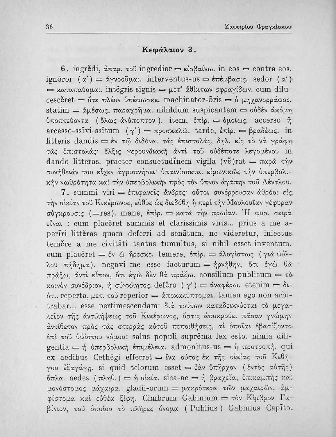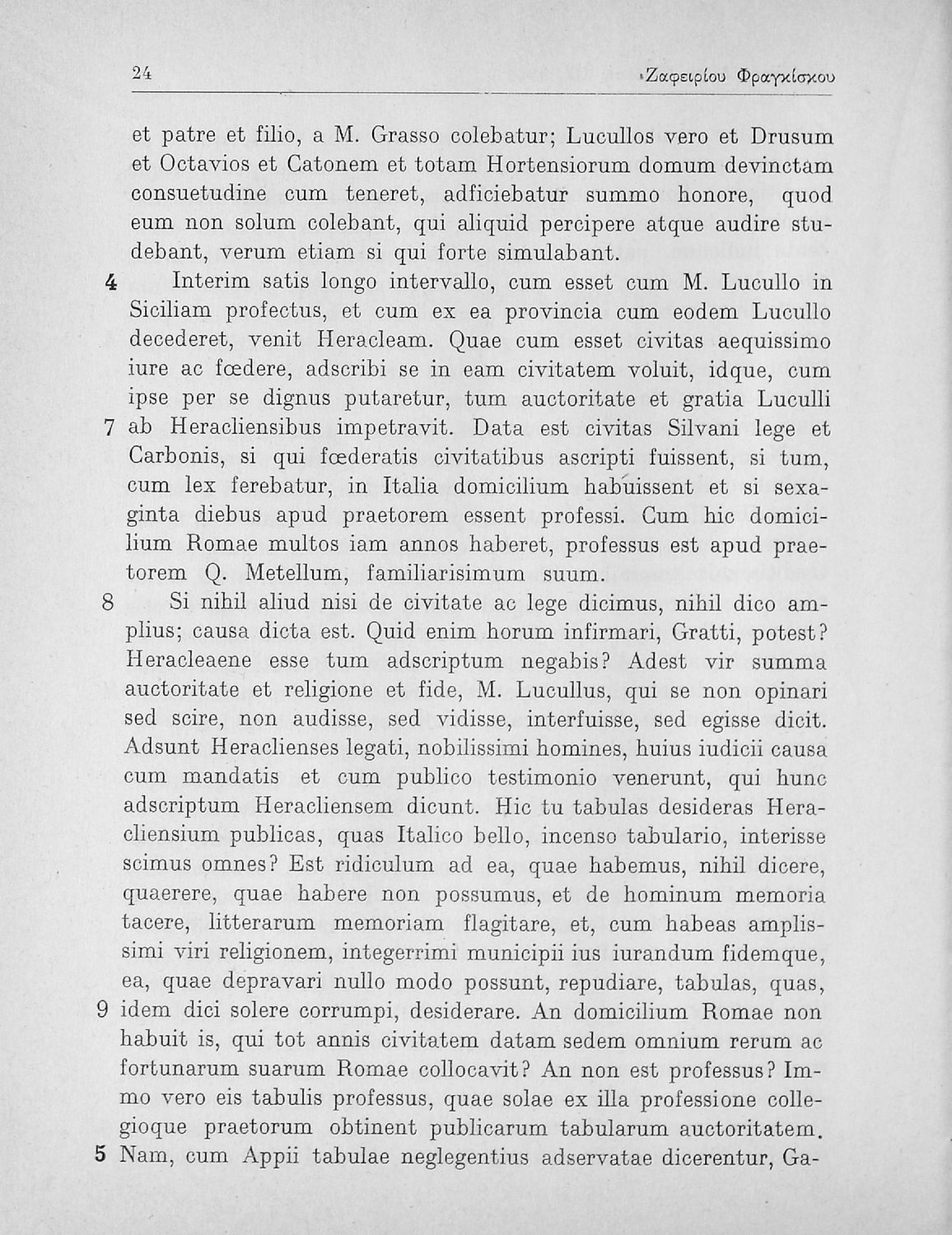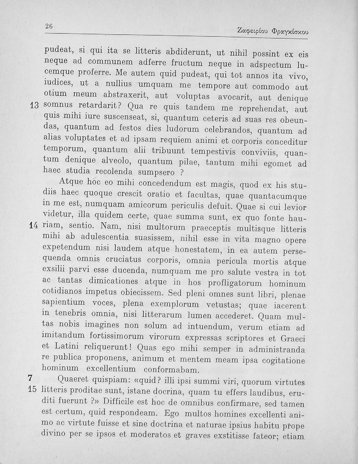 Μ. Τύλλιος Κικέρωνας (Marcus Tullius Cicero), Ζαφείριος Ν. Φραγκίσκος (σχόλια)