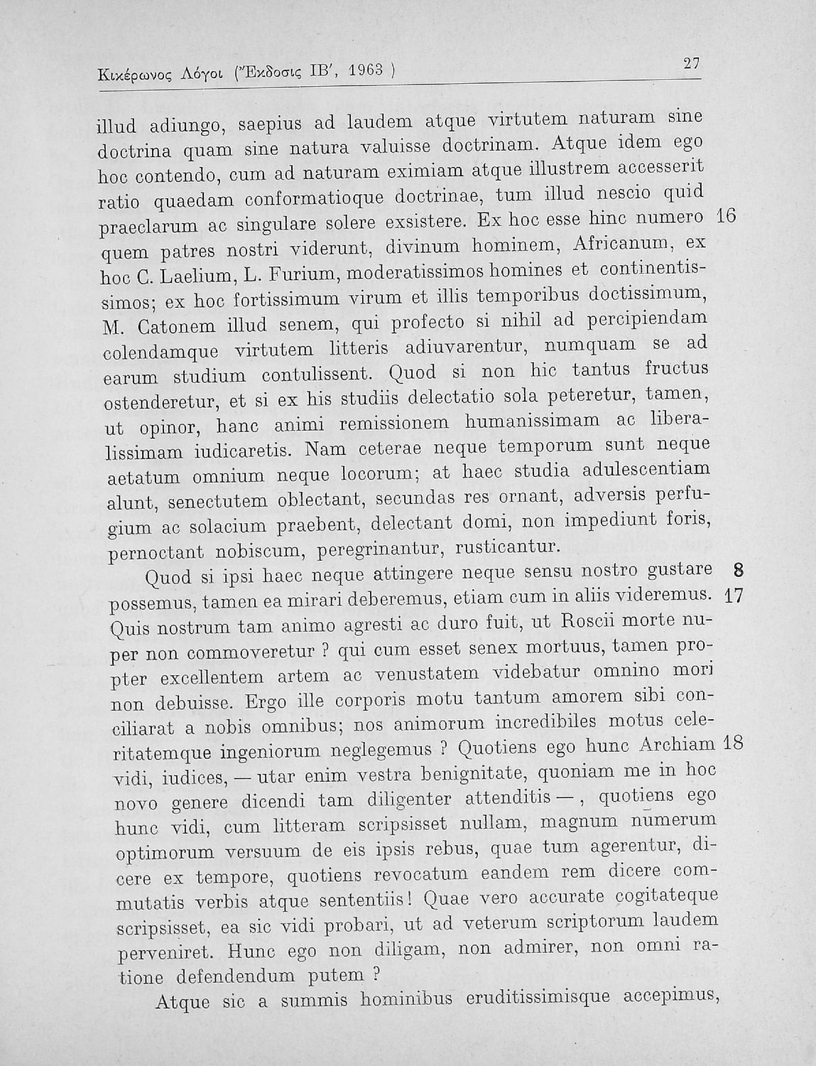 Μάρκος Τύλλιος Κικέρωνας (M. Tullius Cicero), Θεοφάνης Α. Κακριδής (σχόλια, σημειώσεις)