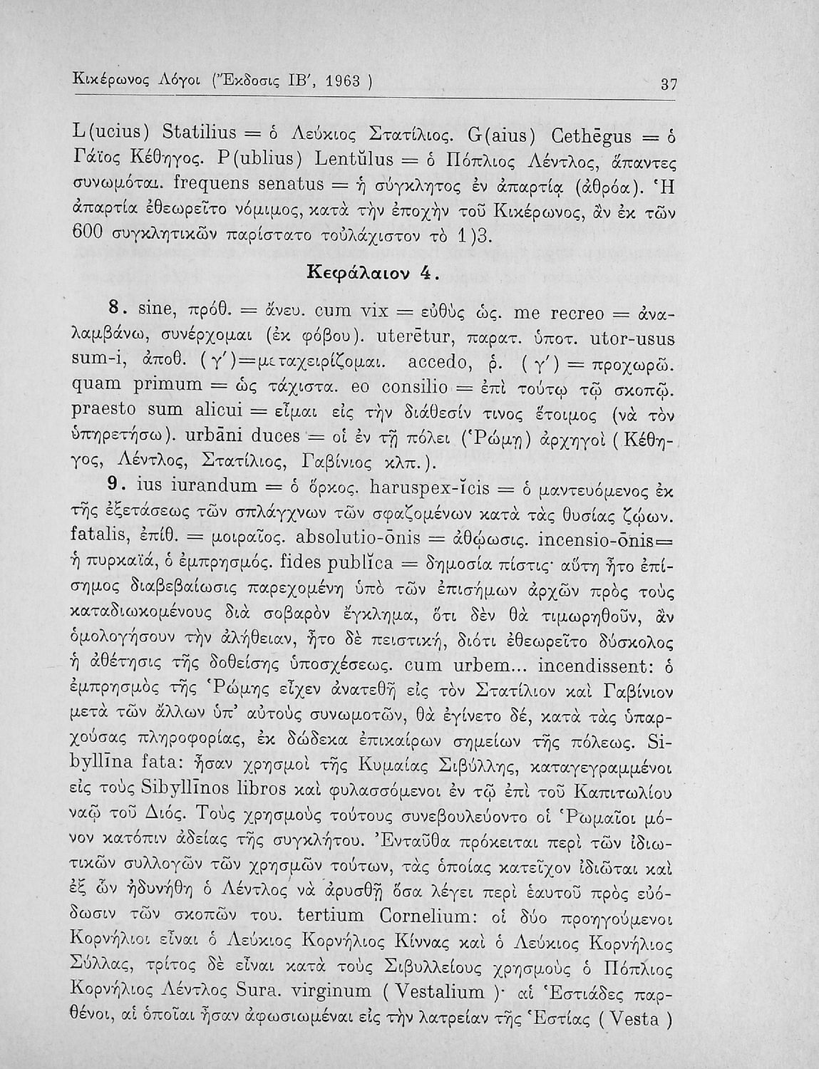 Σχολικό εγχειρίδιο Λατινικών για την Ε΄ Γυμνασίου παλαιού τύπου και την ΣΤ΄ Γυμνασίου νέου τύπου ου περιέχει βιογραφικό σημείωμα των Κικέρωνα και Οβίδιου, εισαγωγικά σχόλια, κείμενο και ερμηνευτικές σημειώσεις.