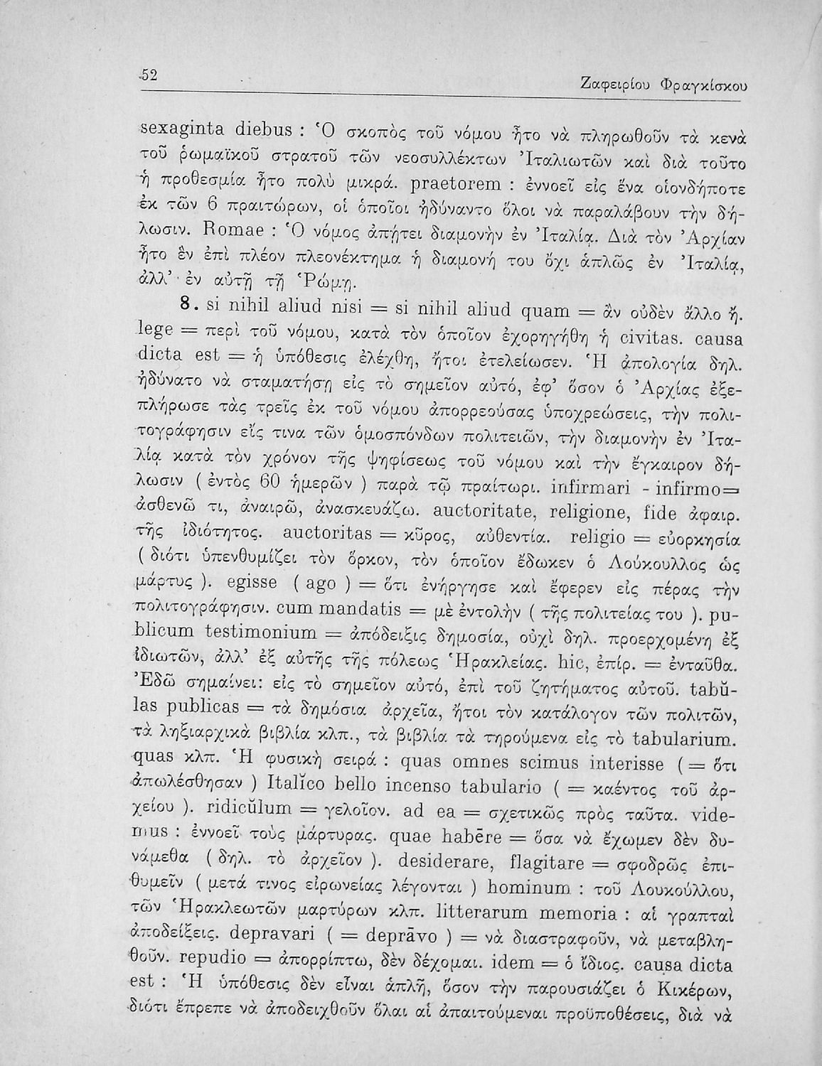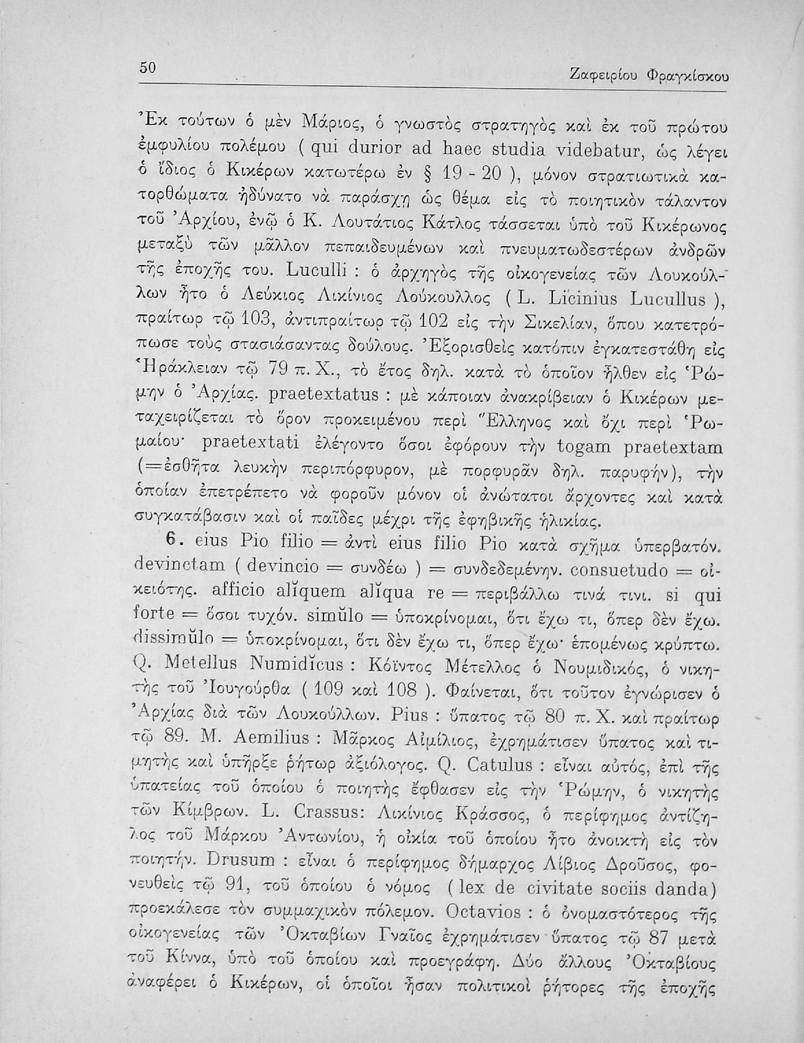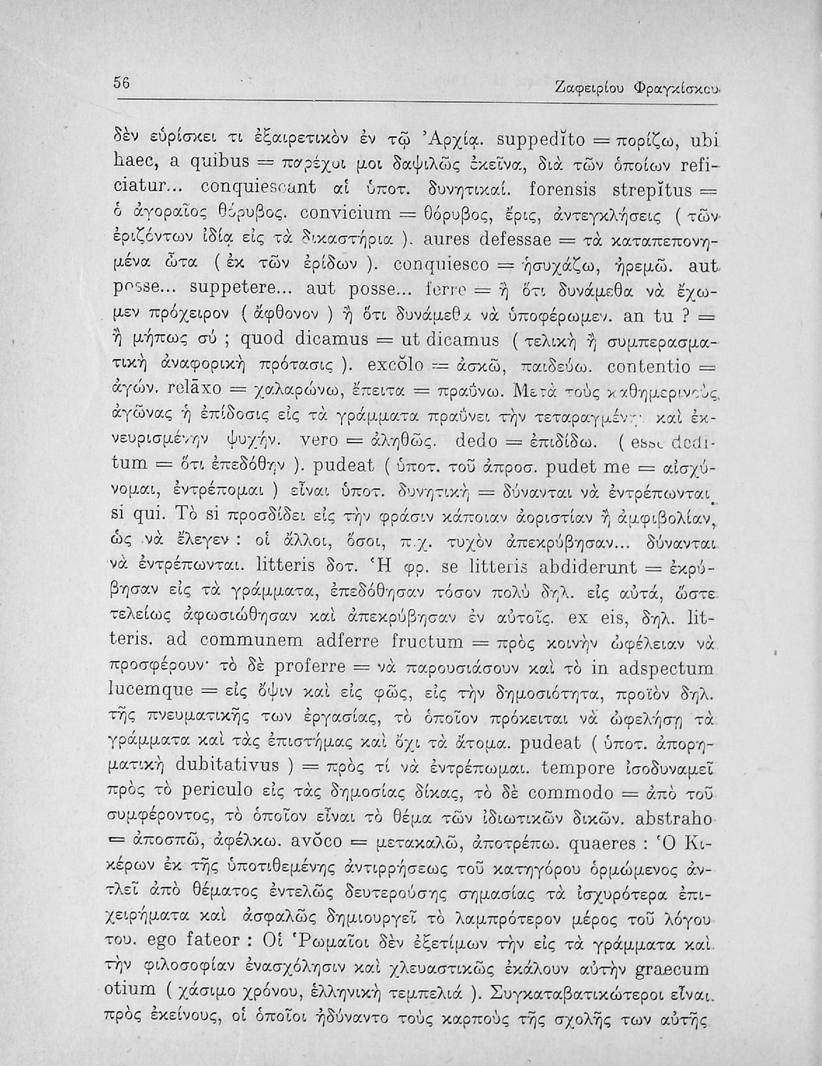 Μ. Τύλλιος Κικέρωνας (Marcus Tullius Cicero), Ζαφείριος Ν. Φραγκίσκος (σχόλια)
