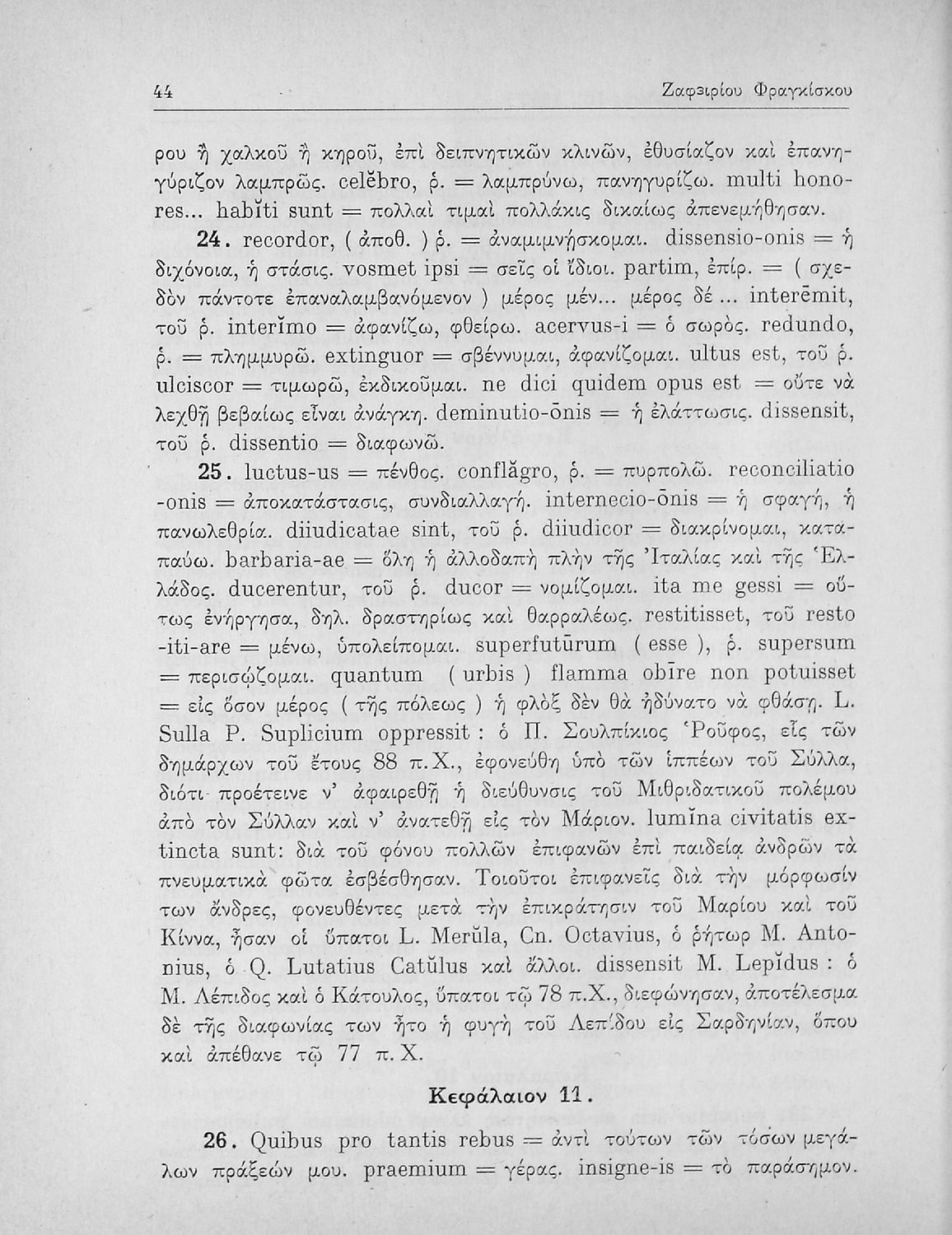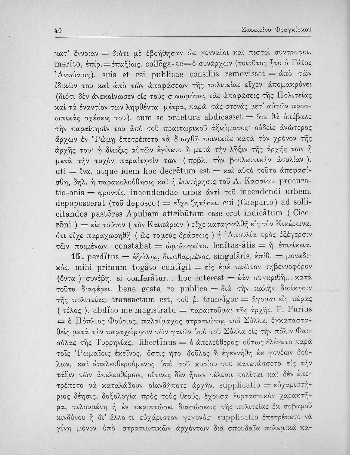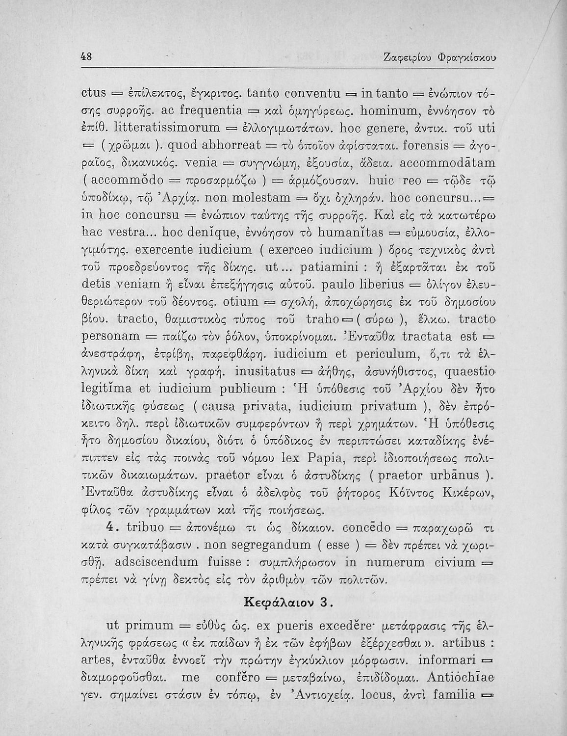 Μ. Τύλλιος Κικέρωνας (Marcus Tullius Cicero), Ζαφείριος Ν. Φραγκίσκος (σχόλια)