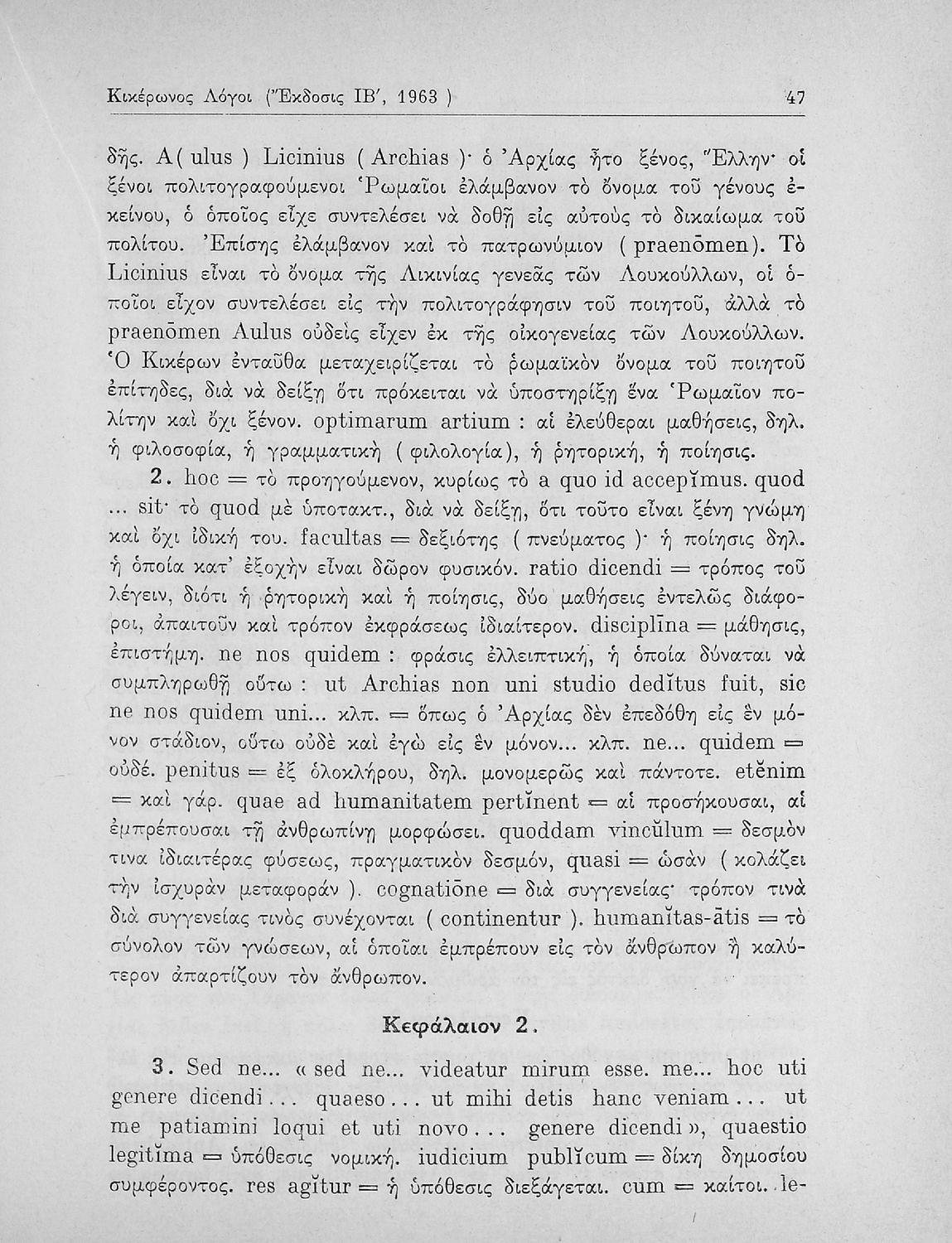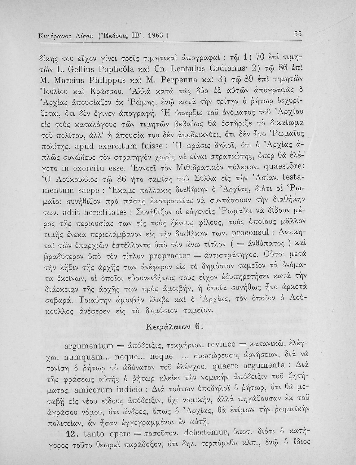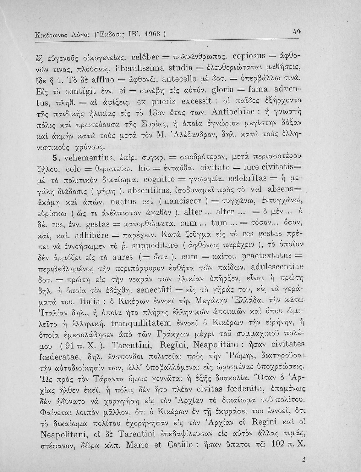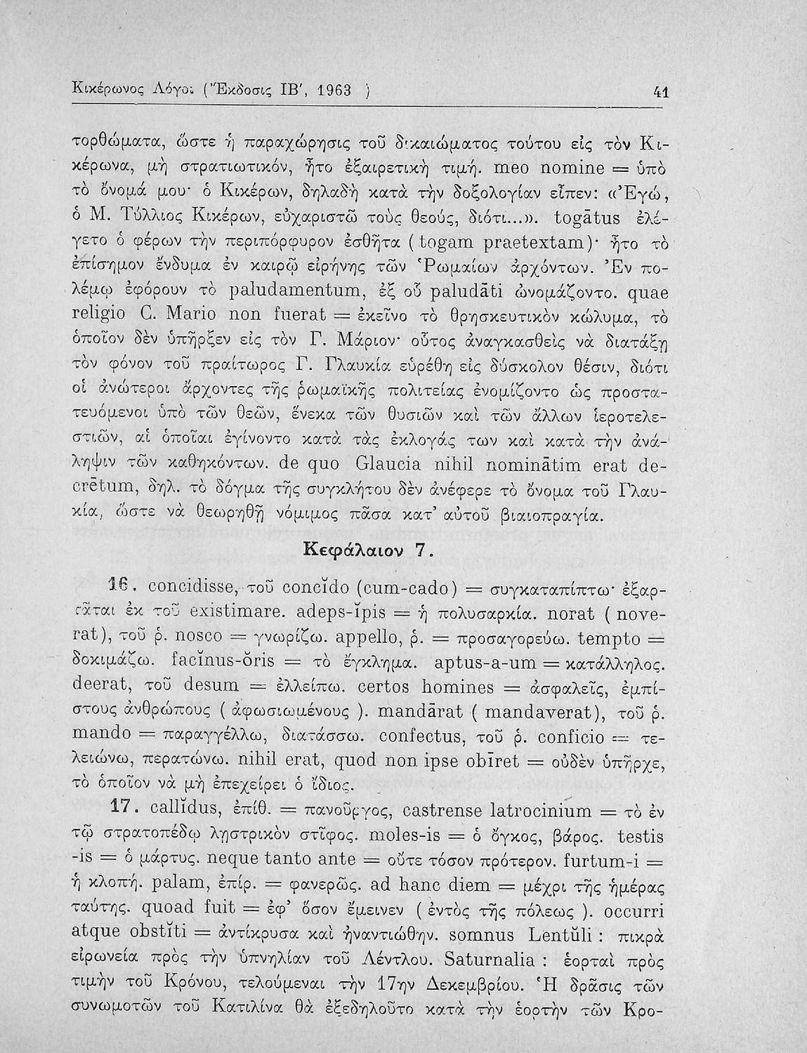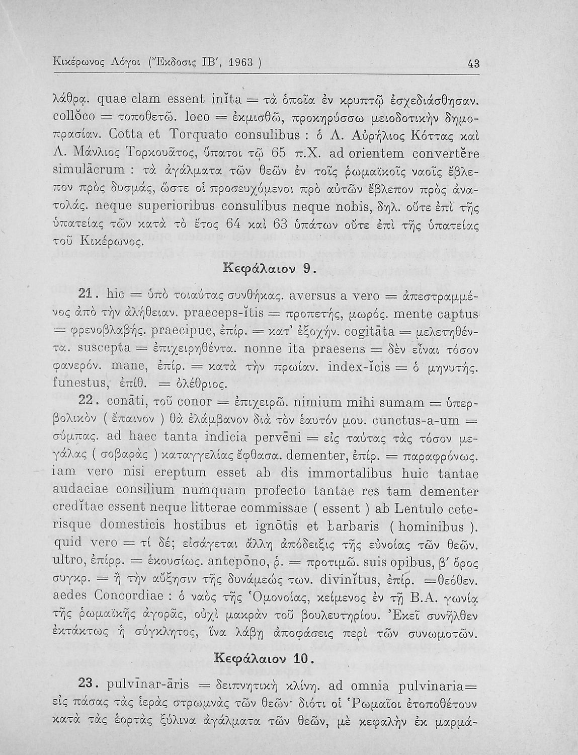 Μάρκος Τύλλιος Κικέρωνας (M. Tullius Cicero), Θεοφάνης Α. Κακριδής (σχόλια, σημειώσεις)