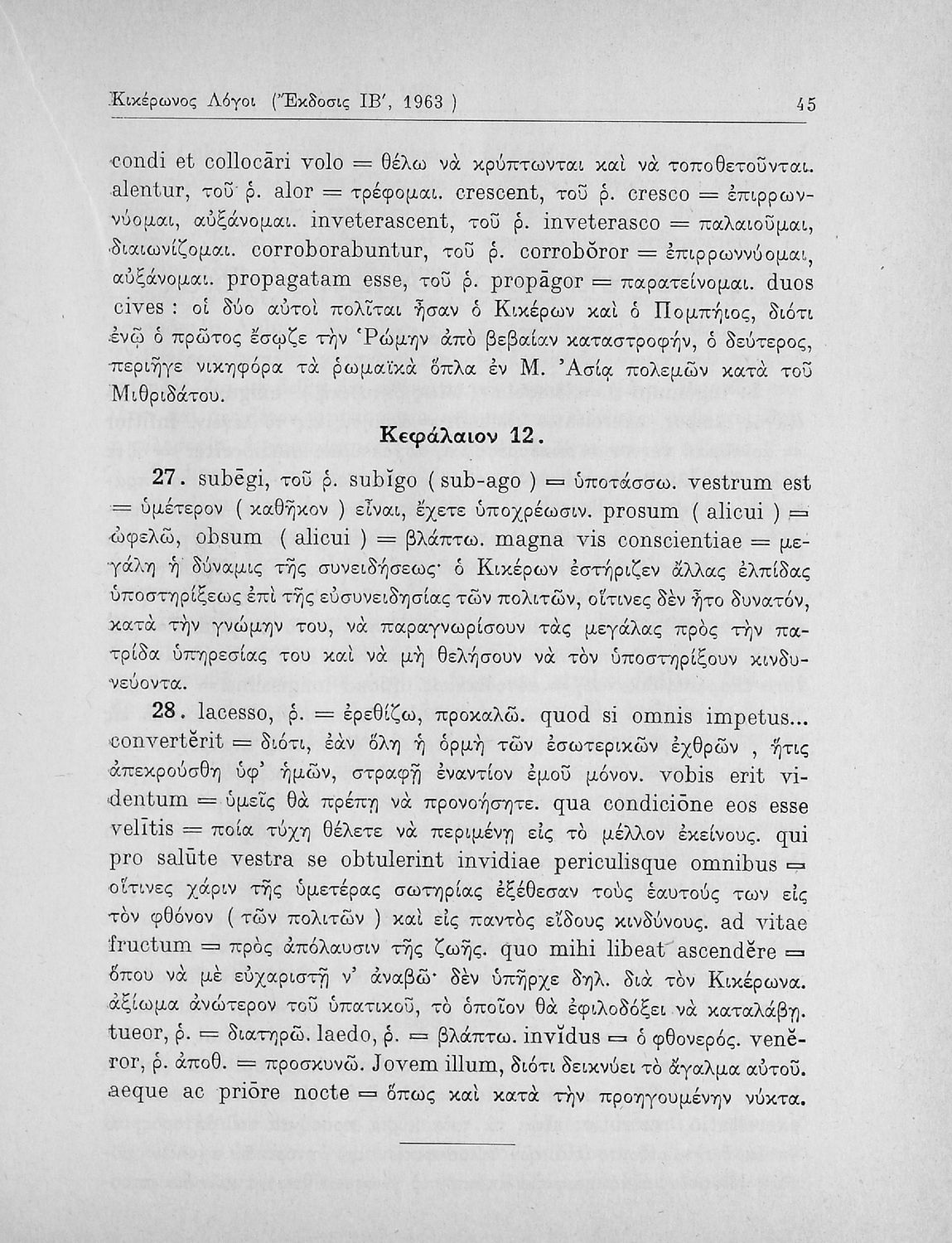 Κικέρωνος λόγοι ο Γ΄ κατά Κατιλίνα και ο υπέρ Αρχίου του ποιητού, Οβίδιου Μεταμορφώσεις (Εκλογαί)