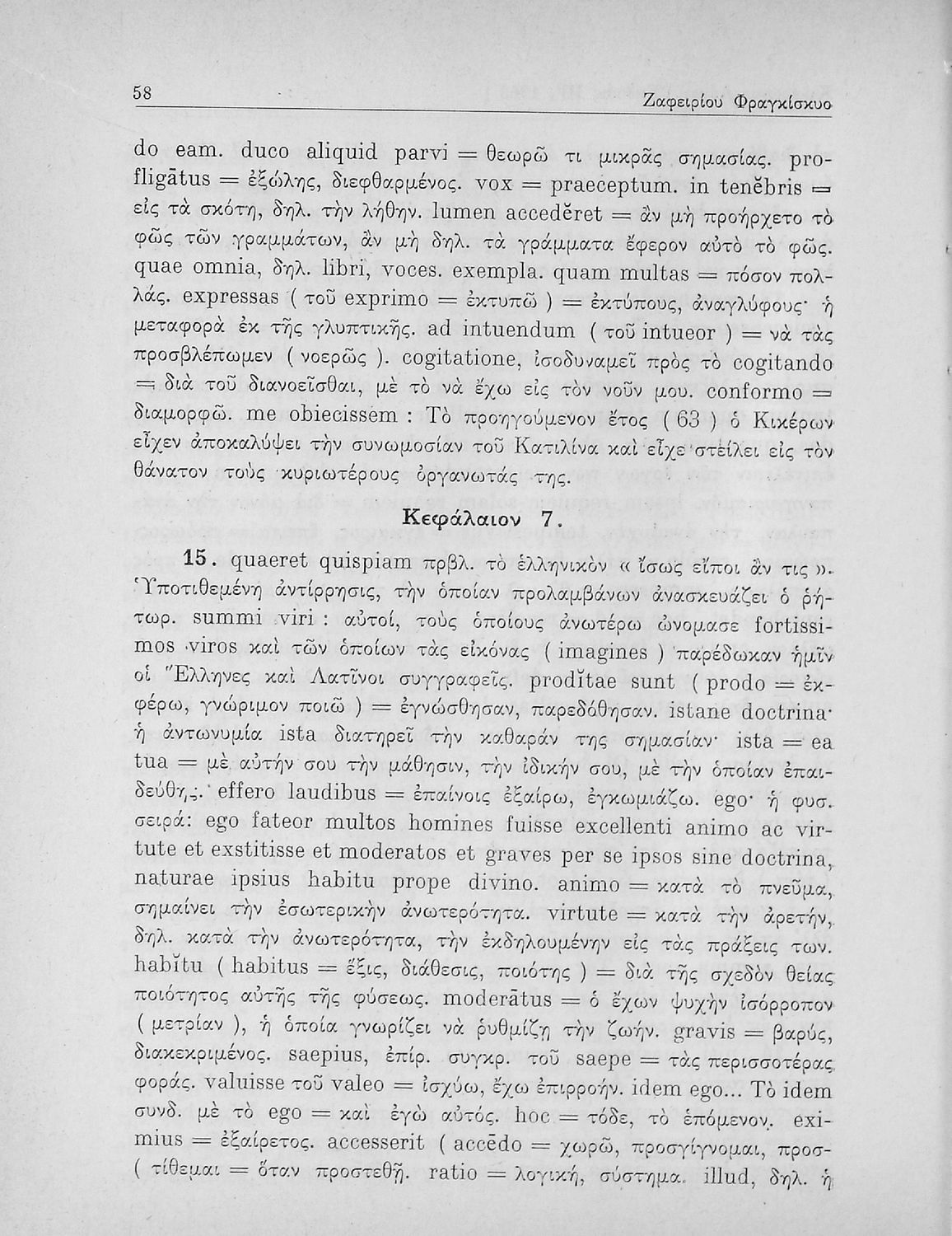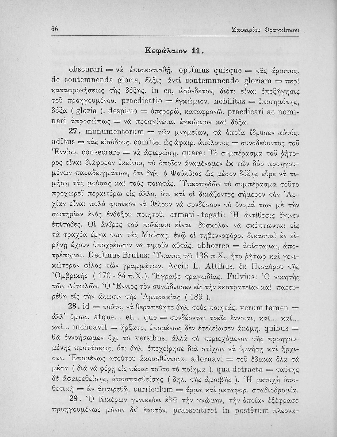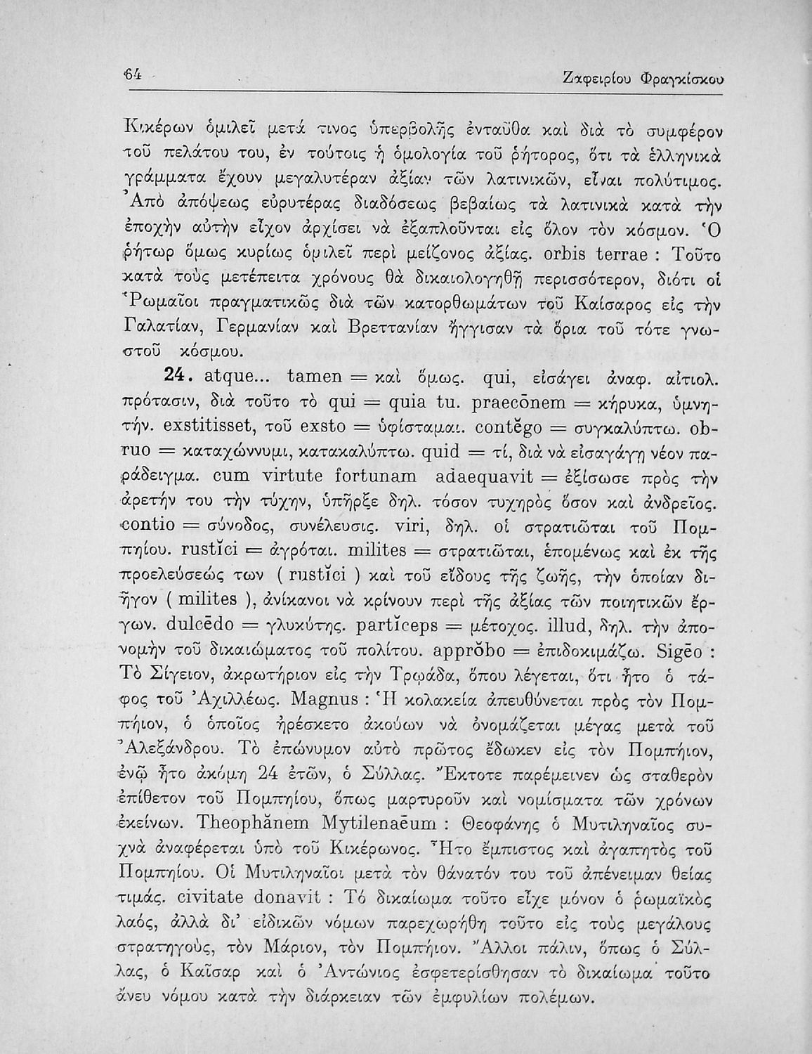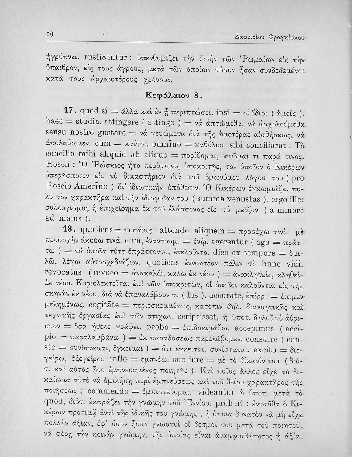 Μ. Τύλλιος Κικέρωνας (Marcus Tullius Cicero), Ζαφείριος Ν. Φραγκίσκος (σχόλια)