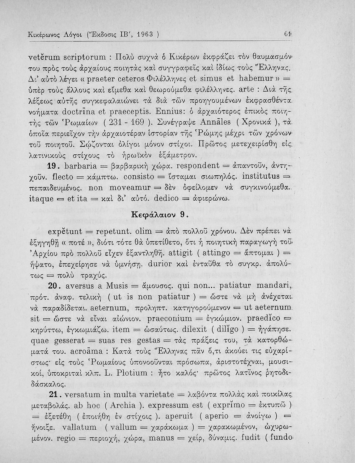 Κικέρωνος λόγοι ο Γ΄ κατά Κατιλίνα και ο υπέρ Αρχίου του ποιητού, Οβίδιου Μεταμορφώσεις (Εκλογαί)